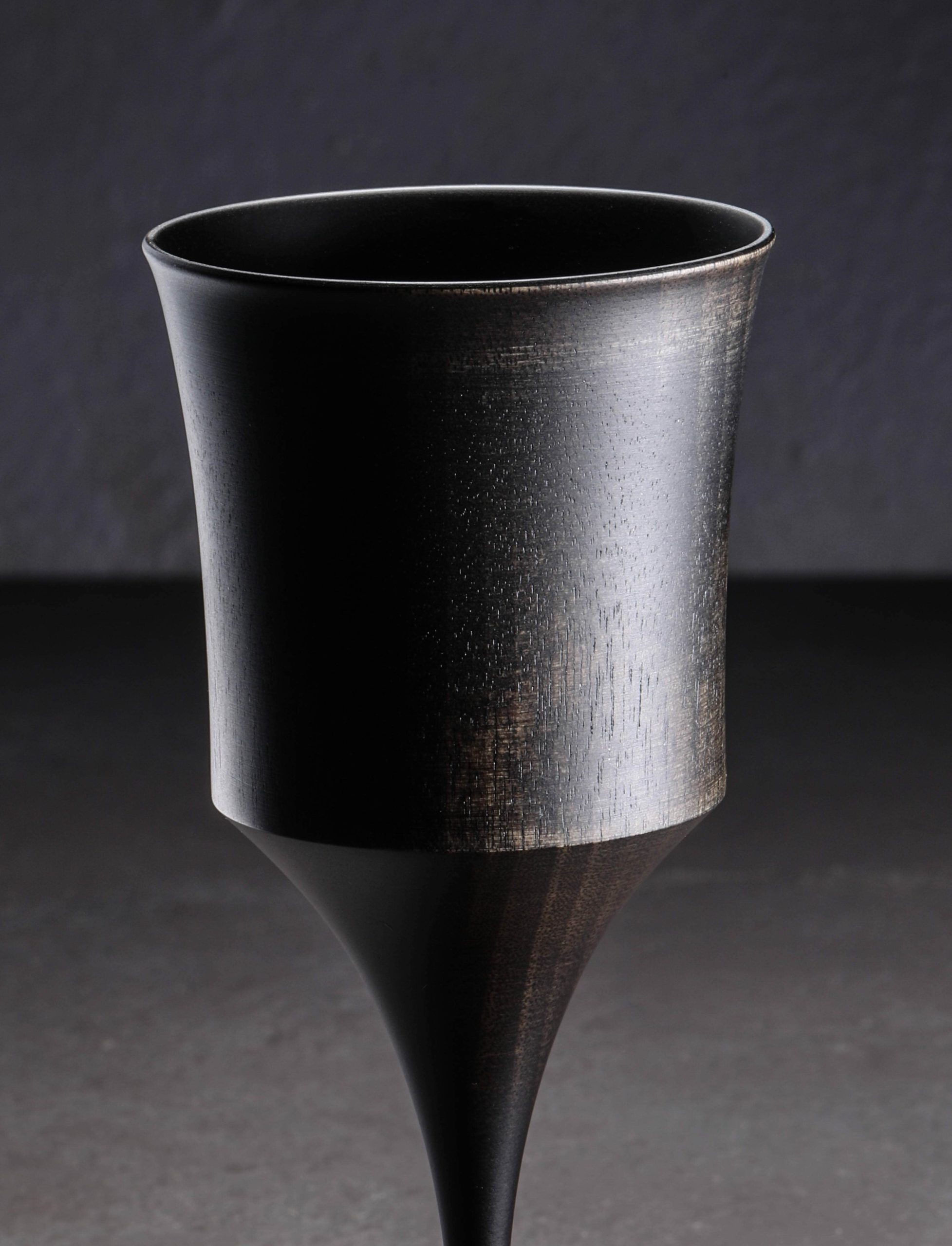 Sculpted by the most skilled craftspeople of the Ishikawa Prefecture, known for its extraordinary lacquerware for hundreds of years, using Yamanaka techniques for turning and finishing the Japanese betula grossa wood, these sake glasses are like no other. The tatekidori technique of preparing the raw material by using pieces cut across the longitudinal grain allows the artisan to produce the most slender stems, precisely formed feet, and an elegant, slim bowl with glass-thin lip. The approach also allows the natural grain to shine beautifully while resulting in a long-lasting, functional work that will resist distortion over time. In natural and black finishes, each cup is sealed using the traditional fukiurushi lacquer technique which involves multiple steps of rubbing and wiping lacquer from the surface of the object. Designed by Masaharu Asano, the Tohka Sake Cup will be a treasured work of functional art in any home.