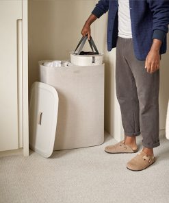 This sleek bamboo laundry basket in black includes three 30L bags for effortless sorting and carrying of light, dark, and coloured items. Designed to complement any interiors, it brings style and practicality to washday.