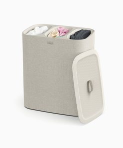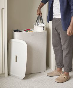 This sleek bamboo laundry basket in ecru includes three 30L bags for effortless sorting and carrying of light, dark, and coloured items. Designed to complement any interiors, it brings style and practicality to washday.