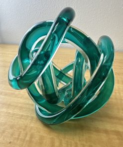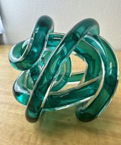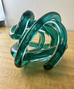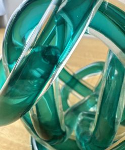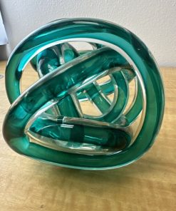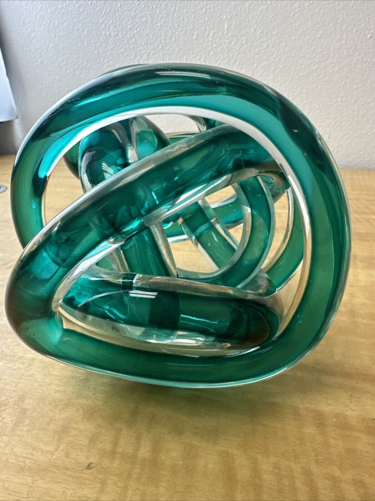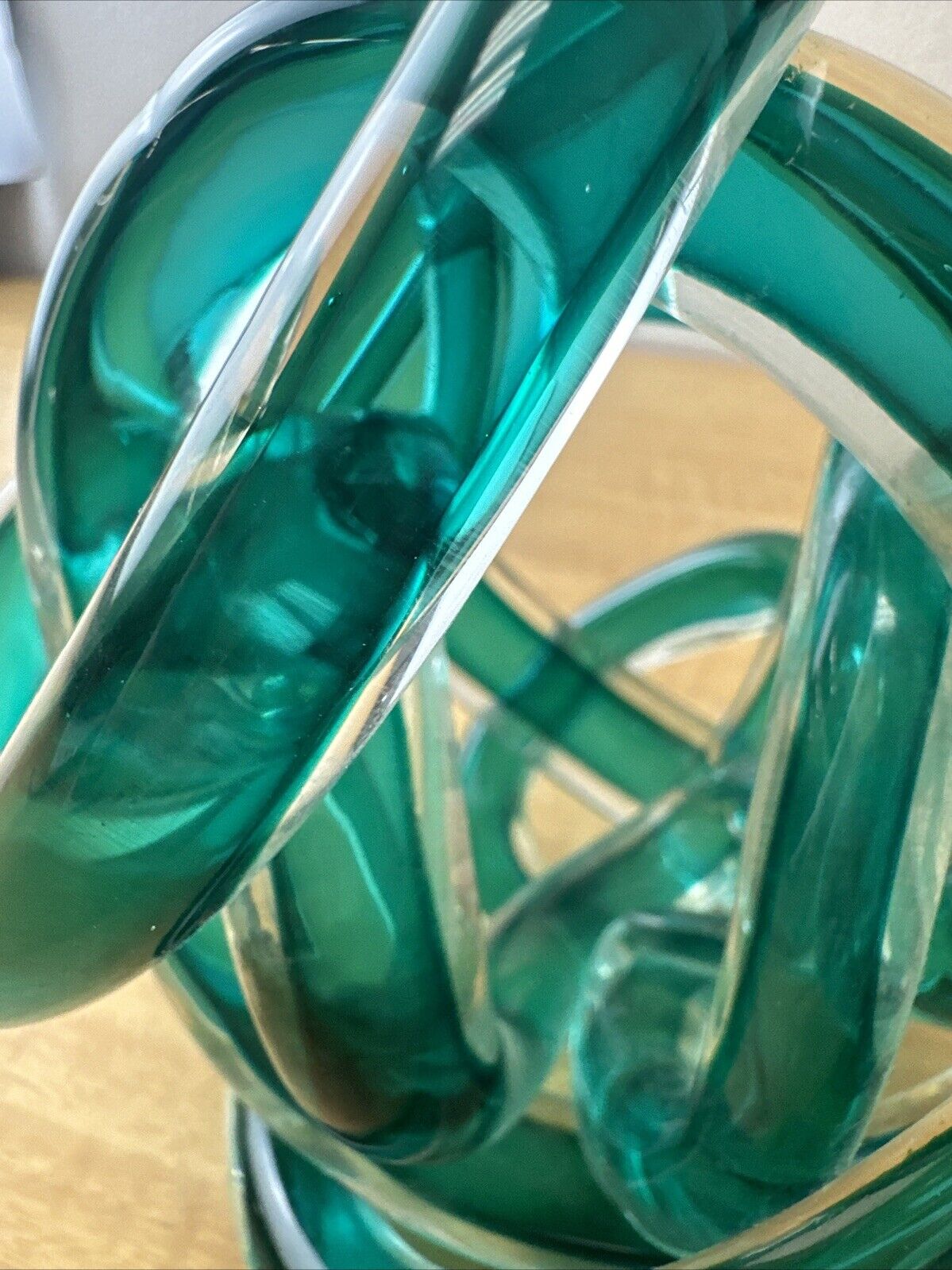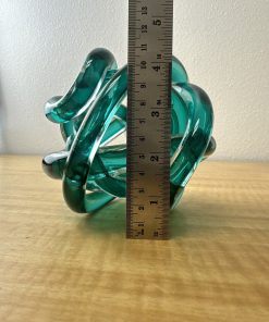 Turquoise Teal Blue Glass Art Twisted Knot 6″ Paperweight