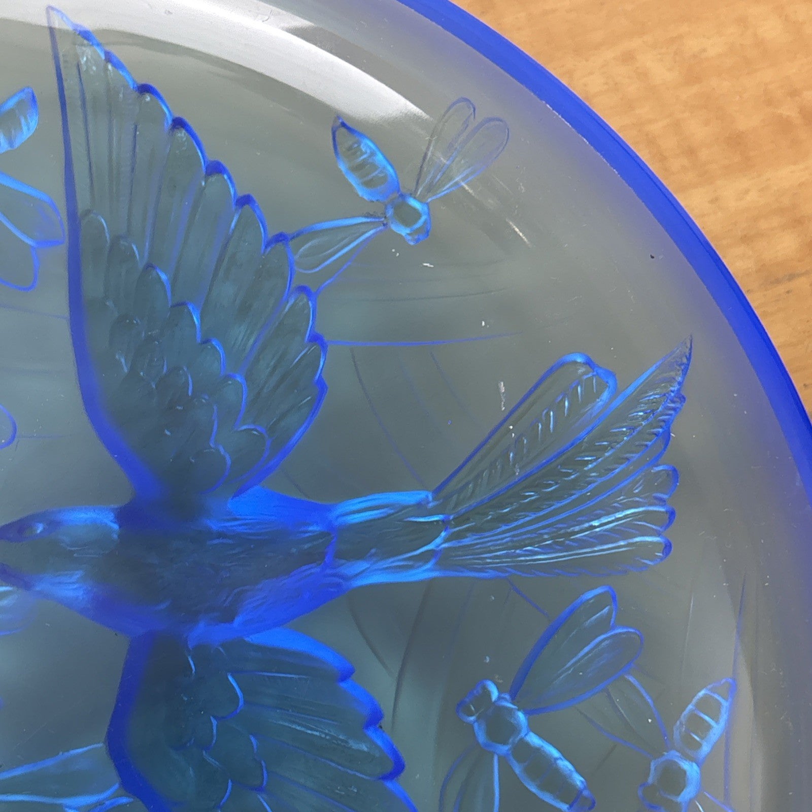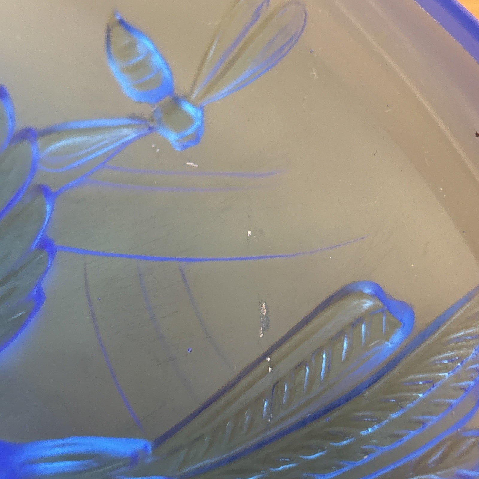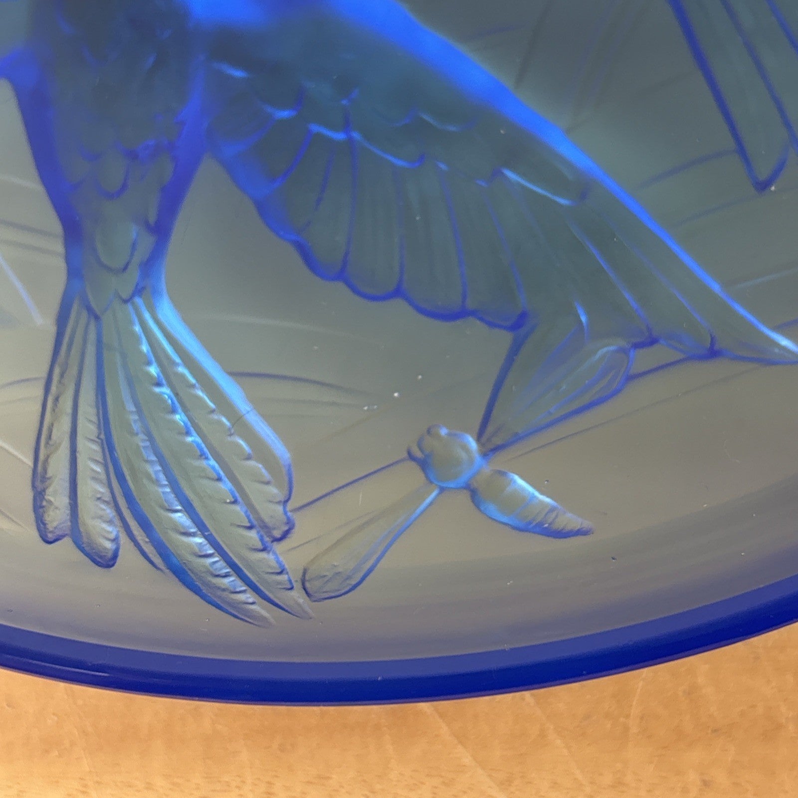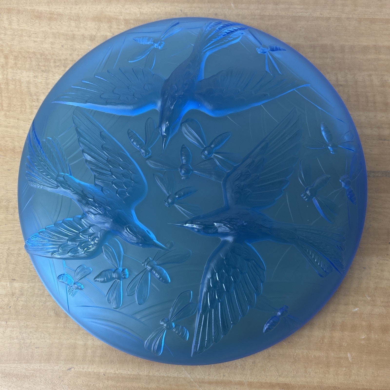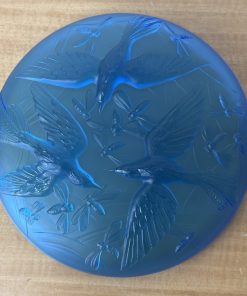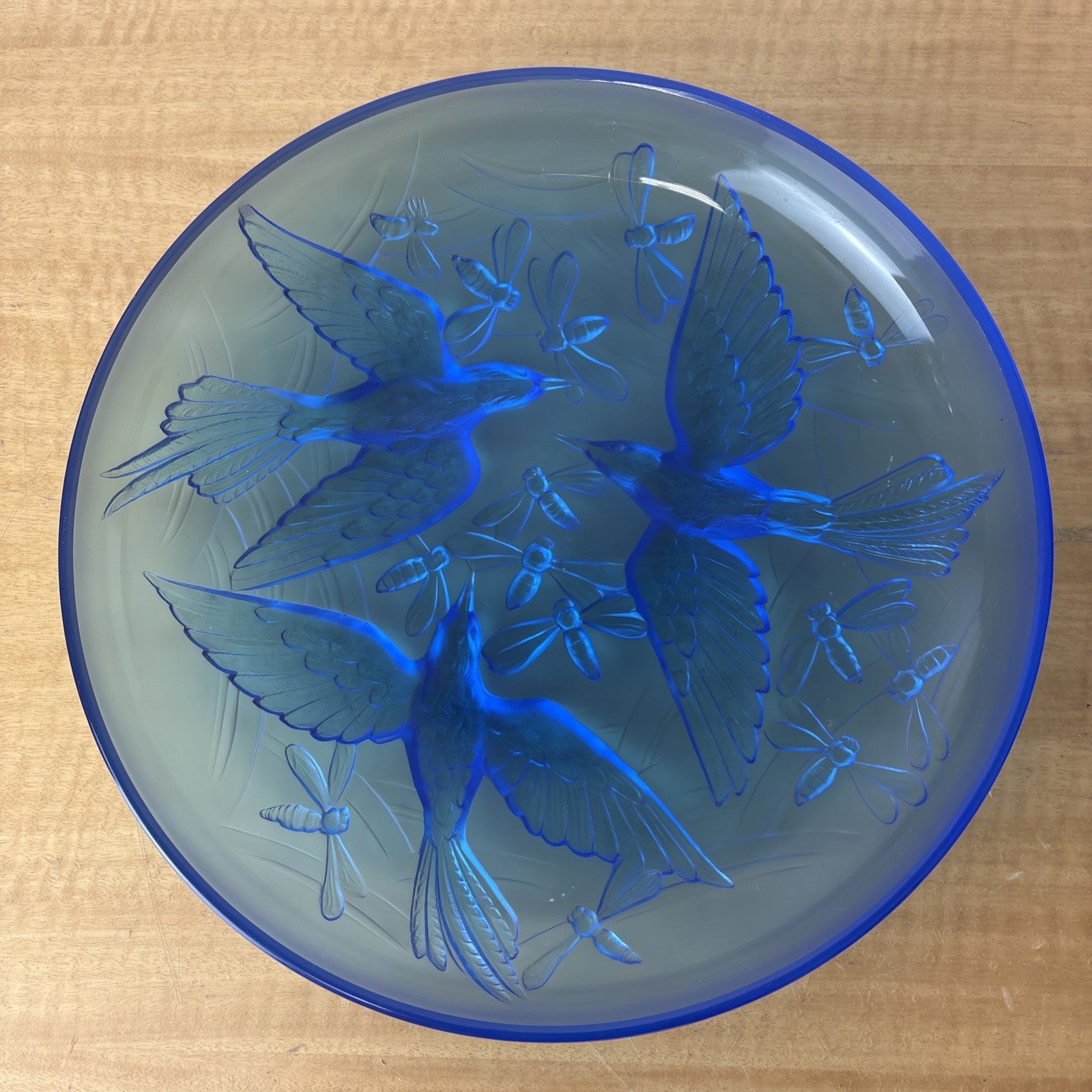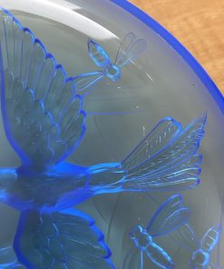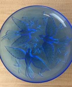 VERLYS FRANCE SABINO French Art Deco Glass Bowl Signed Blue Frosted