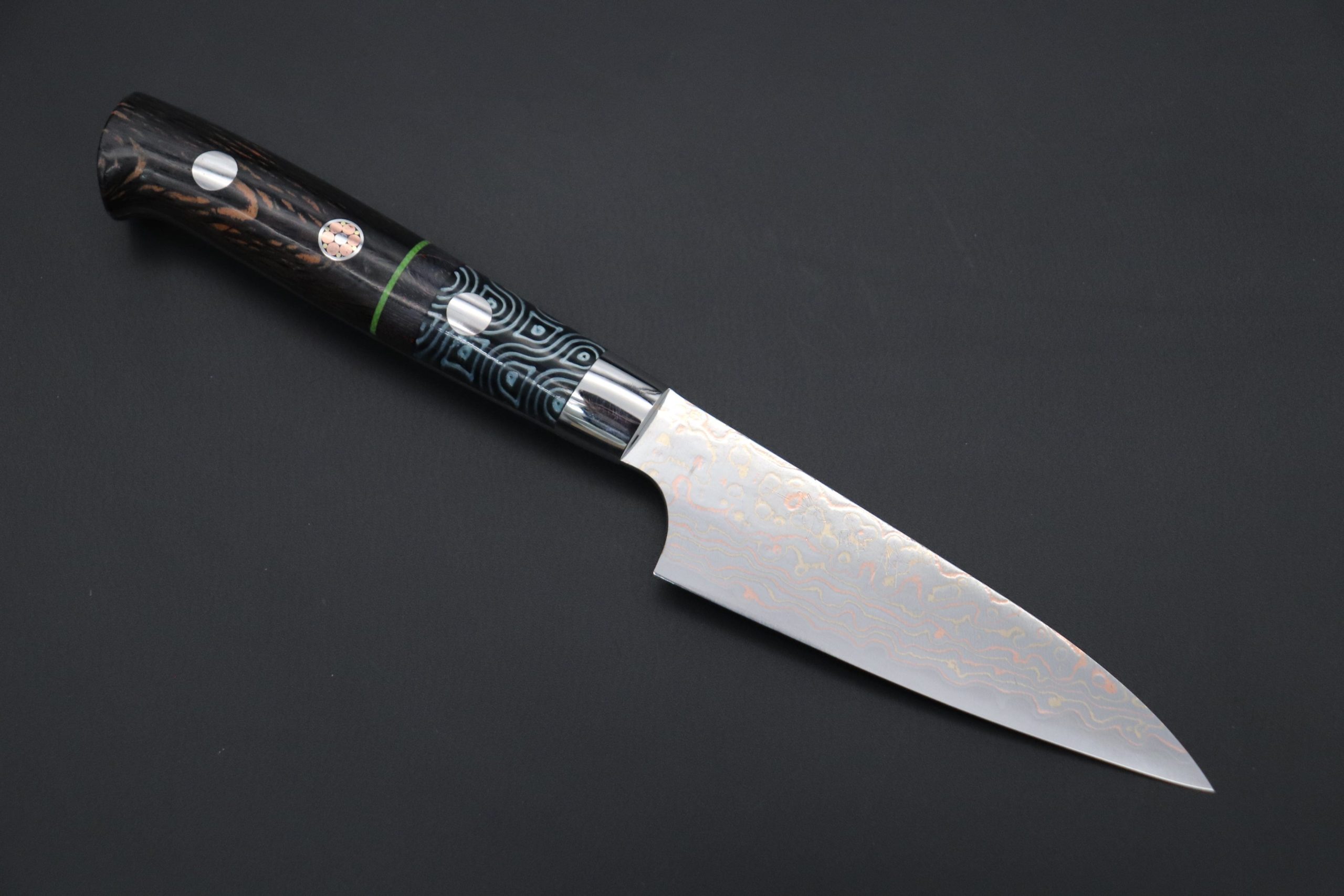 VG-10W磨 Takeshi Saji SUMMIT ― Limited Edition Custom Series SMT-895 VG-10W Multi-Colored Rainbow Damascus Paring 95mm (3.7 Inch)