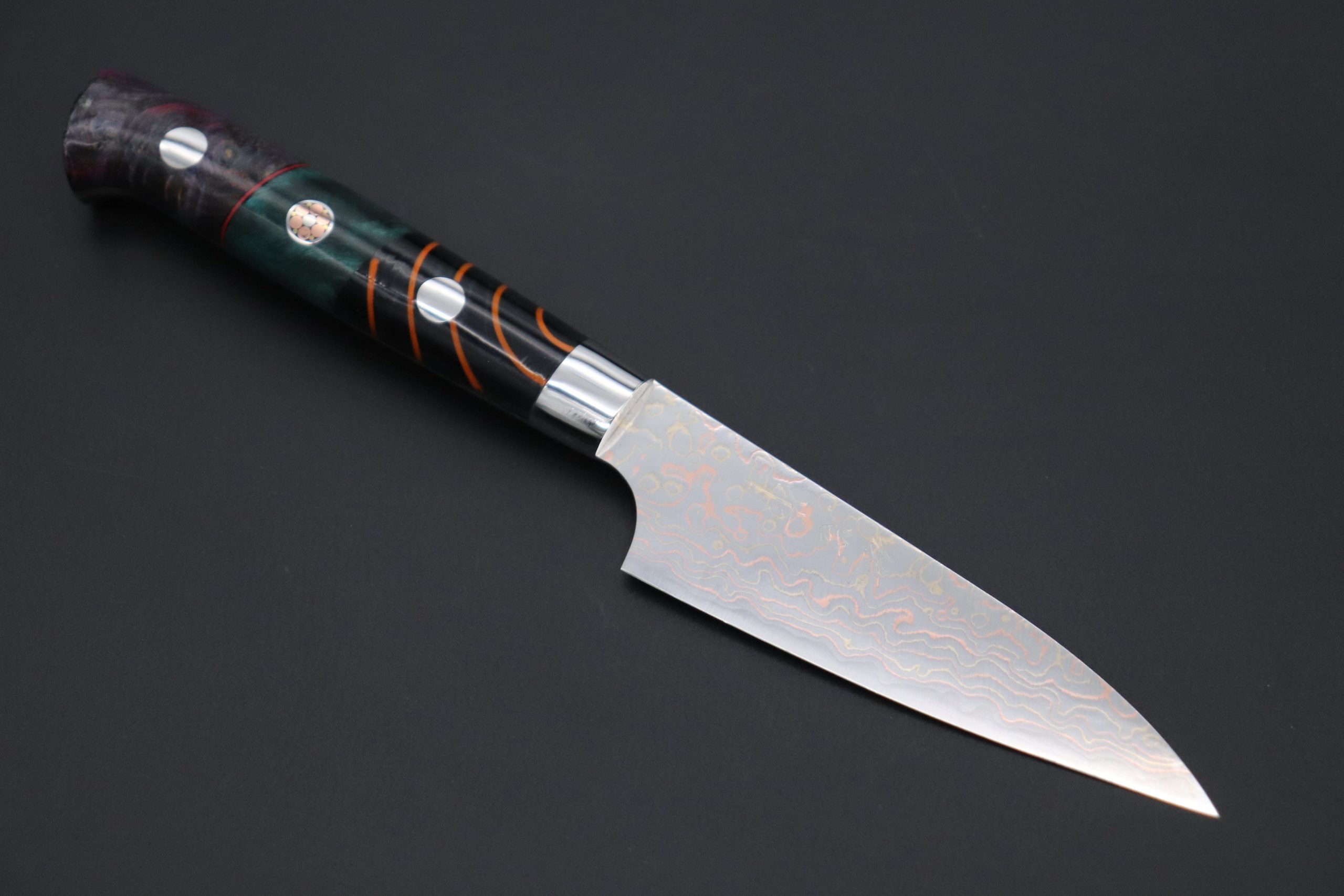VG-10W磨 Takeshi Saji SUMMIT ― Limited Edition Custom Series SMT-896 VG-10W Multi-Colored Rainbow Damascus Paring 95mm (3.7 Inch)