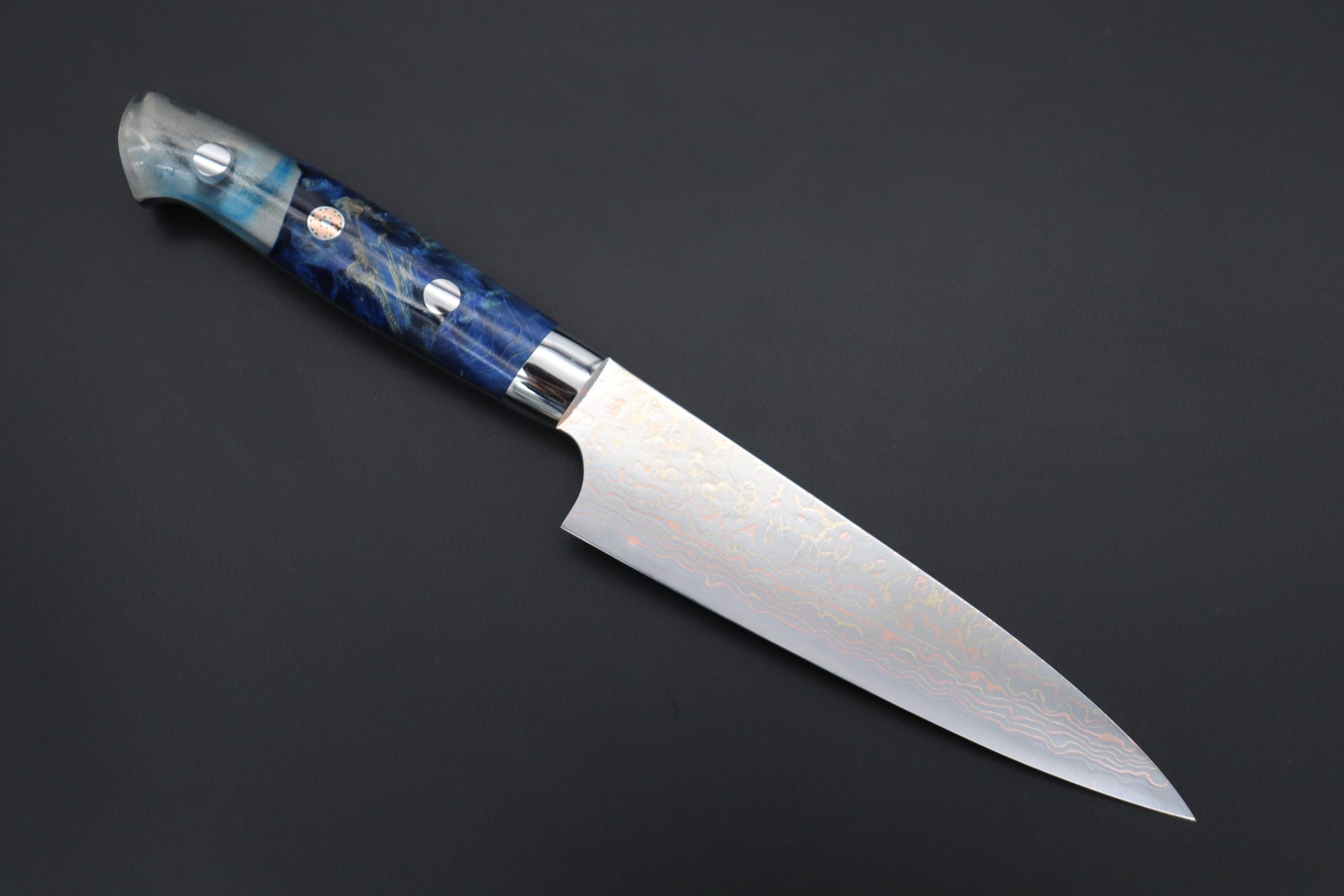 Knife Model: Takeshi Saji SUMMIT ― Limited Edition Custom Series SMT-897 VG-10W Multi-Colored Rainbow Damascus Petty 135mm