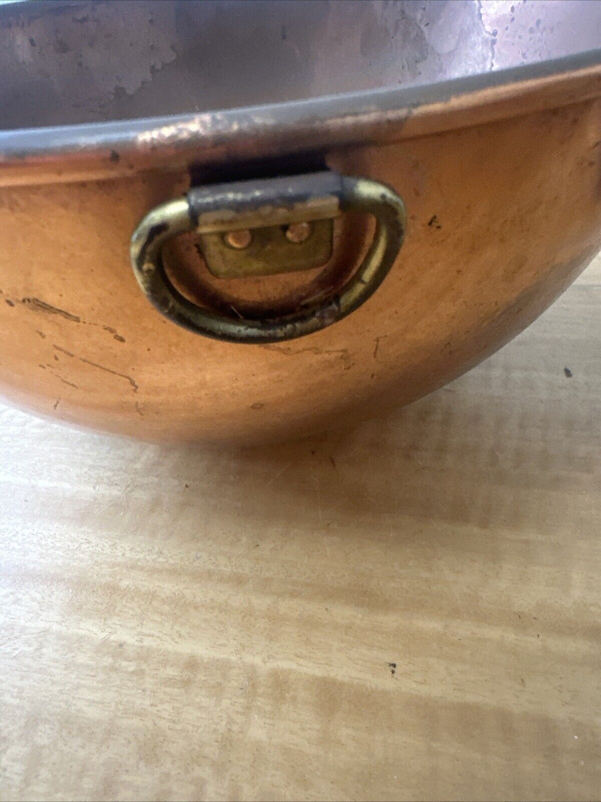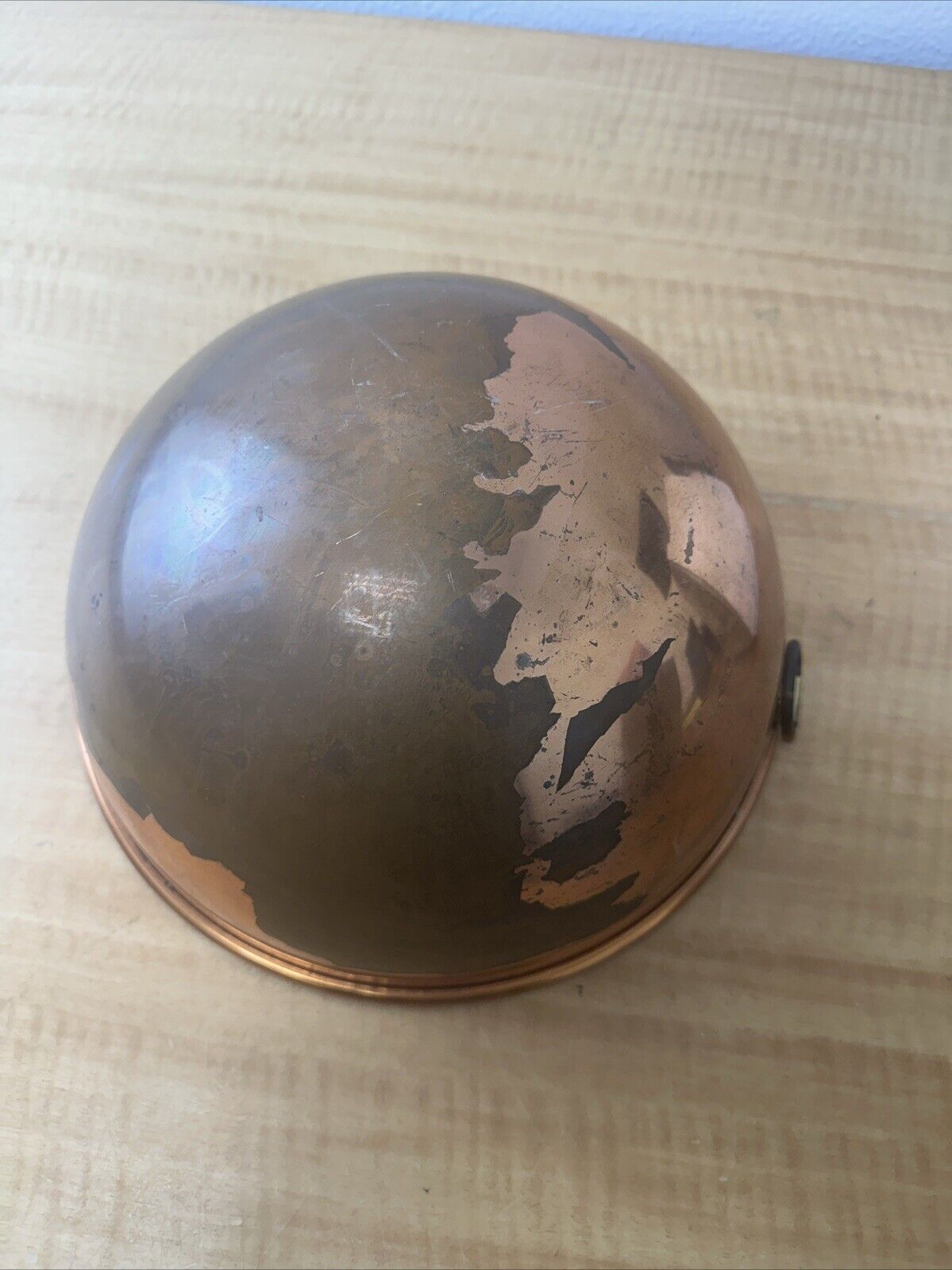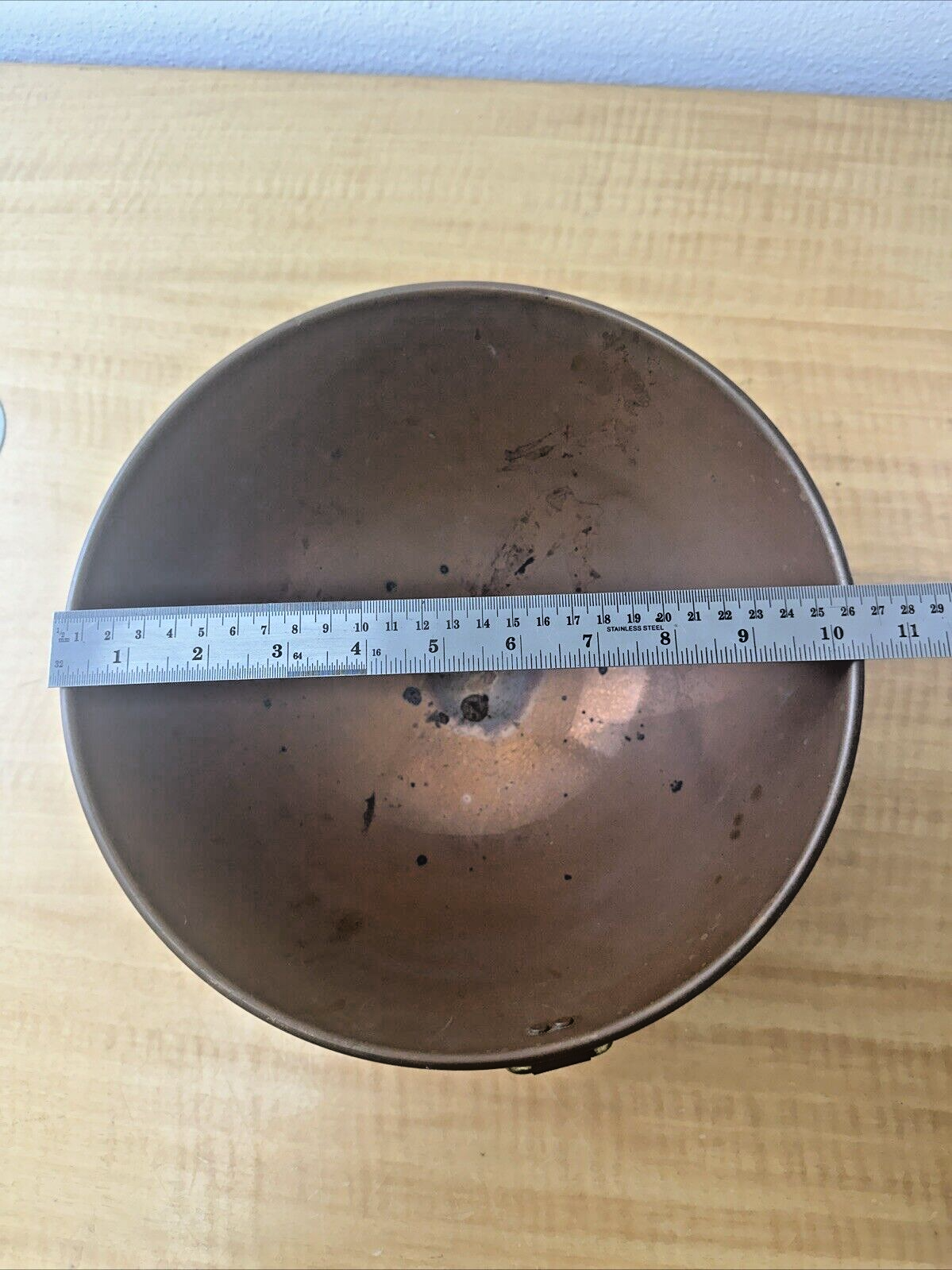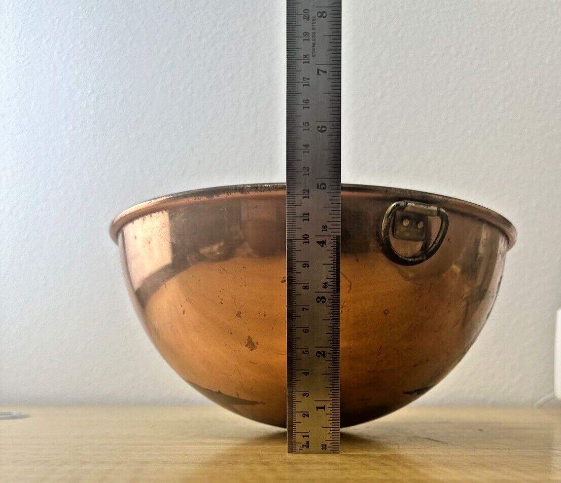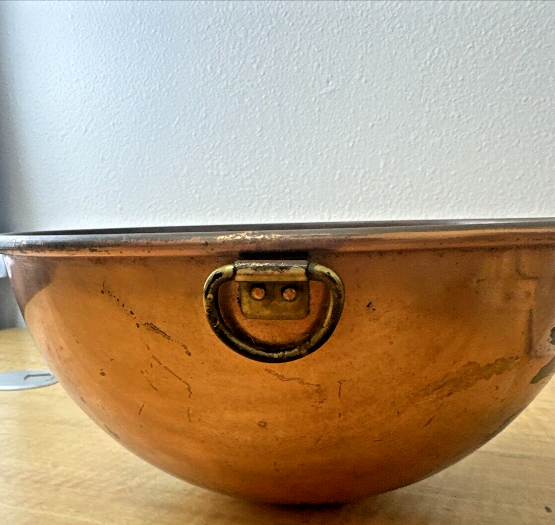 Vintage 10” Copper Mixing Bowl Round Bottom Large Deep Rolled Edge