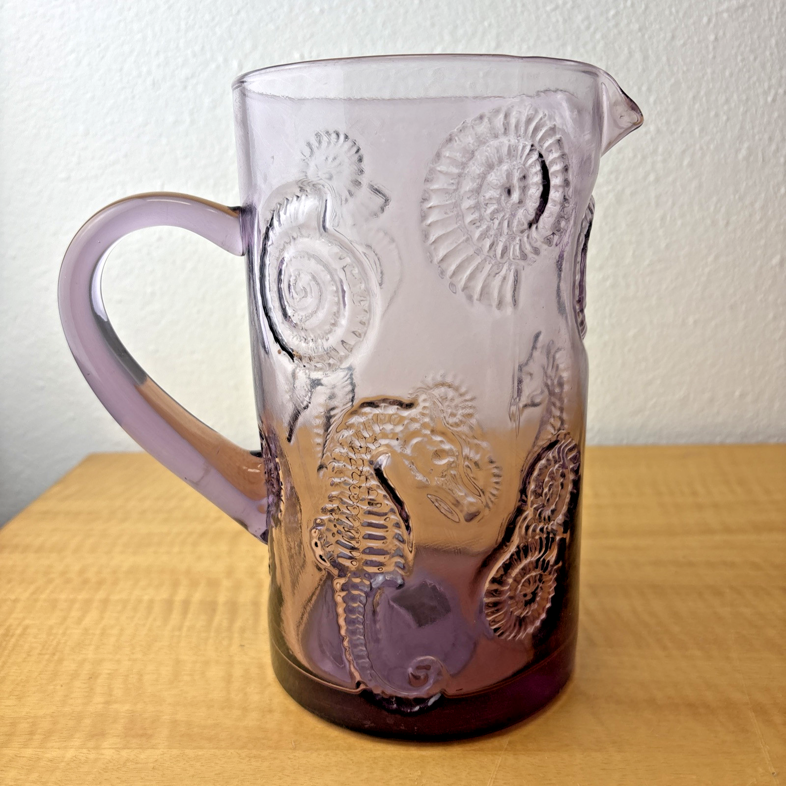 Vintage 1989 the cellar Italy Purple Glass textured Seahorse Large Pitcher