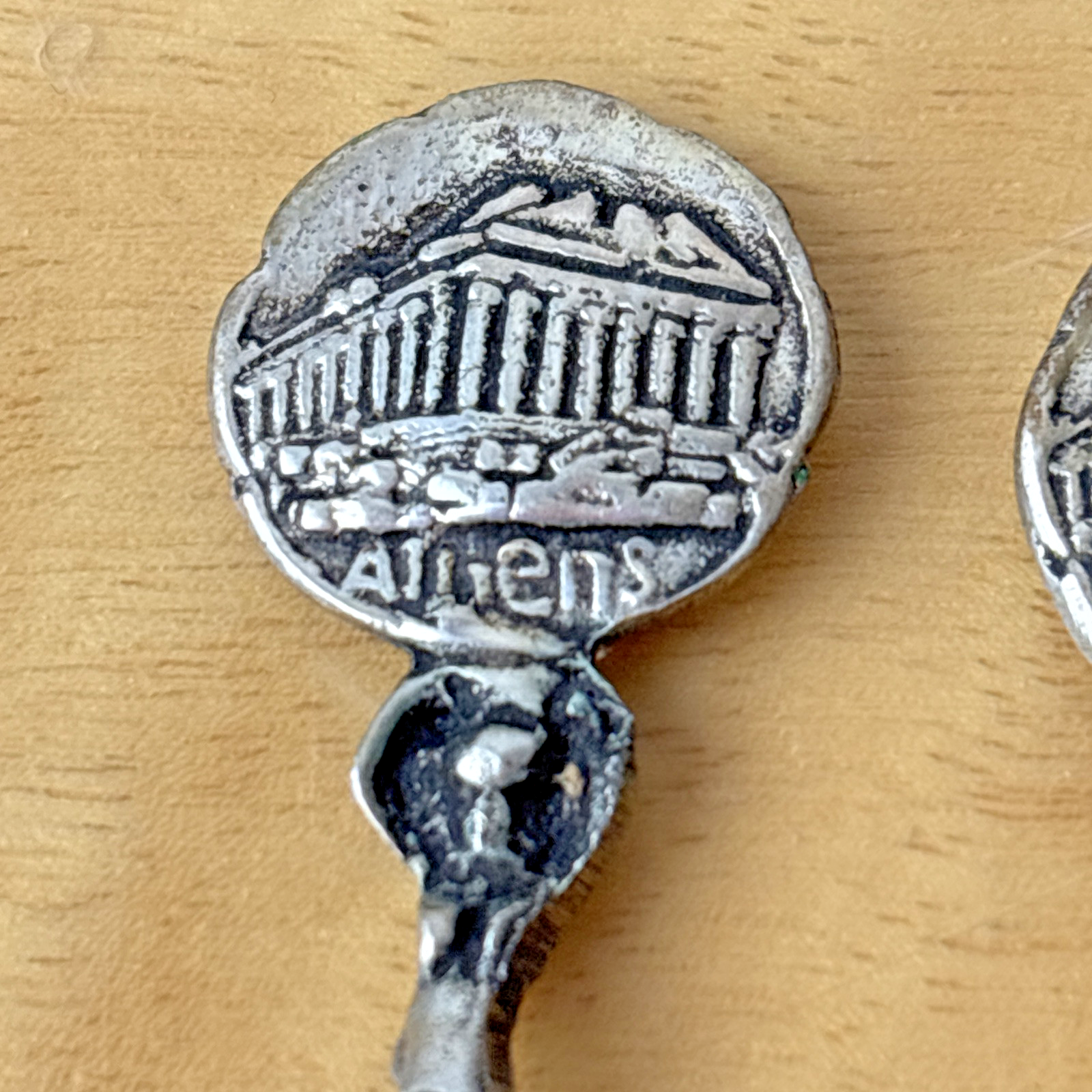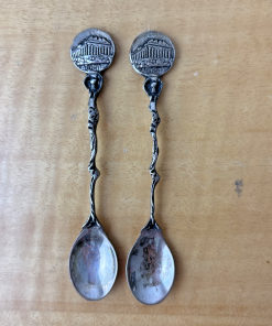 Vintage 800 Silver Small Decorative Spoon Athens Set of 2