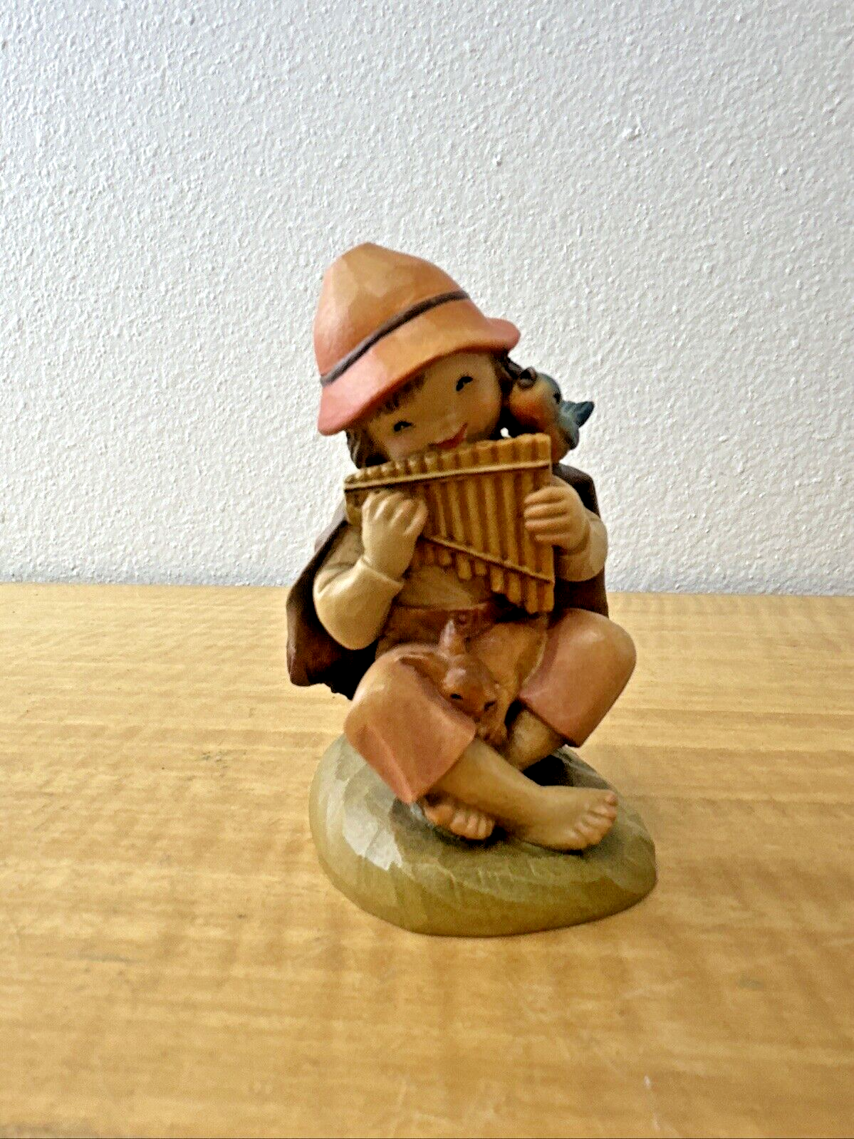 Vintage ANRI Juan FERRANDIZ Wood Carved Figure HARMONY Music Boy Bird Rabbit