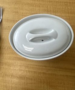 Vintage Apilco White Porcelain Oval Casserole Dish w/ Lid – 9″