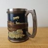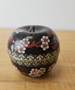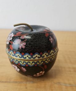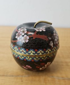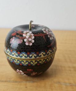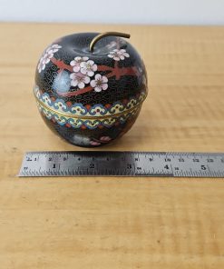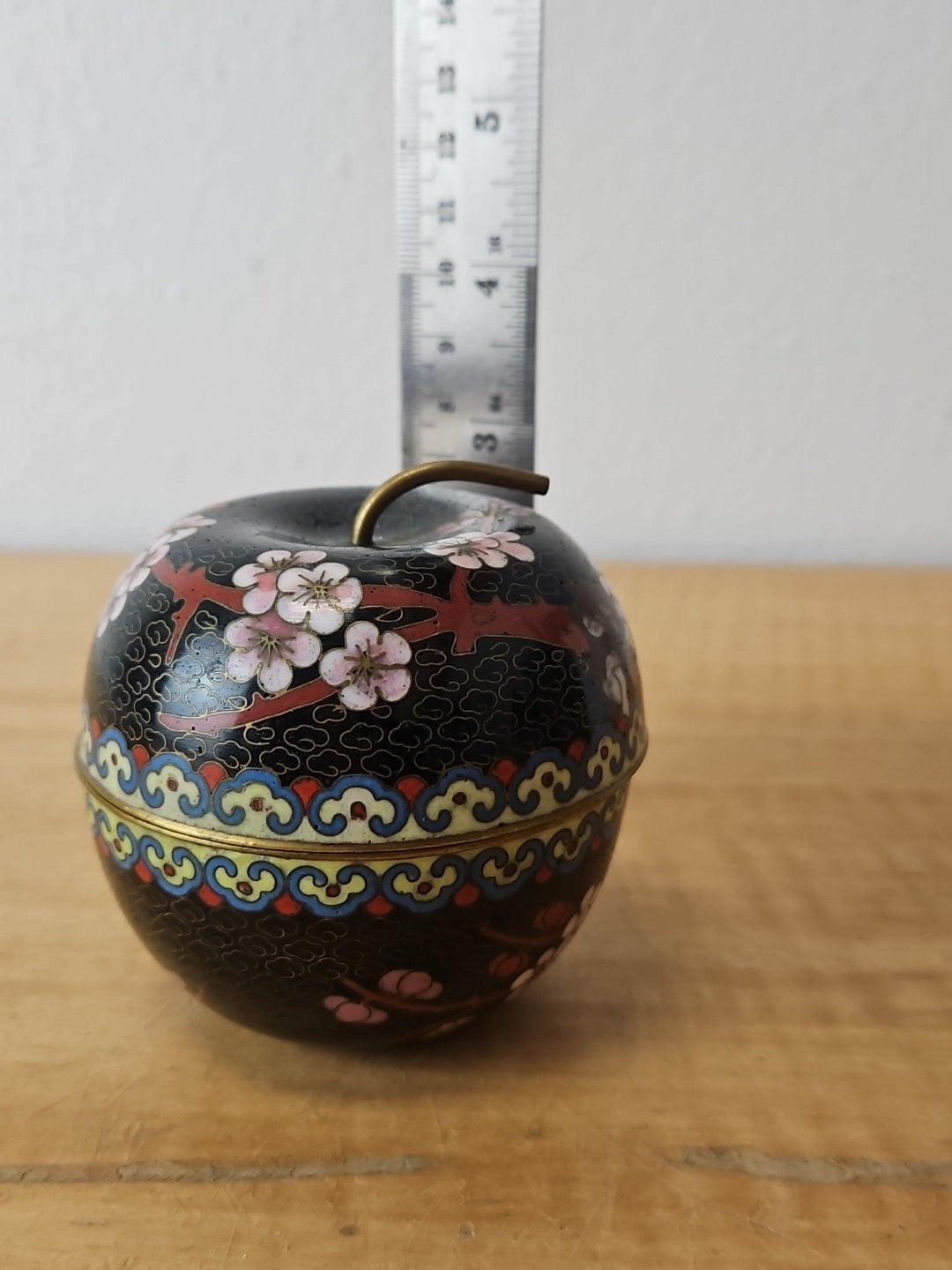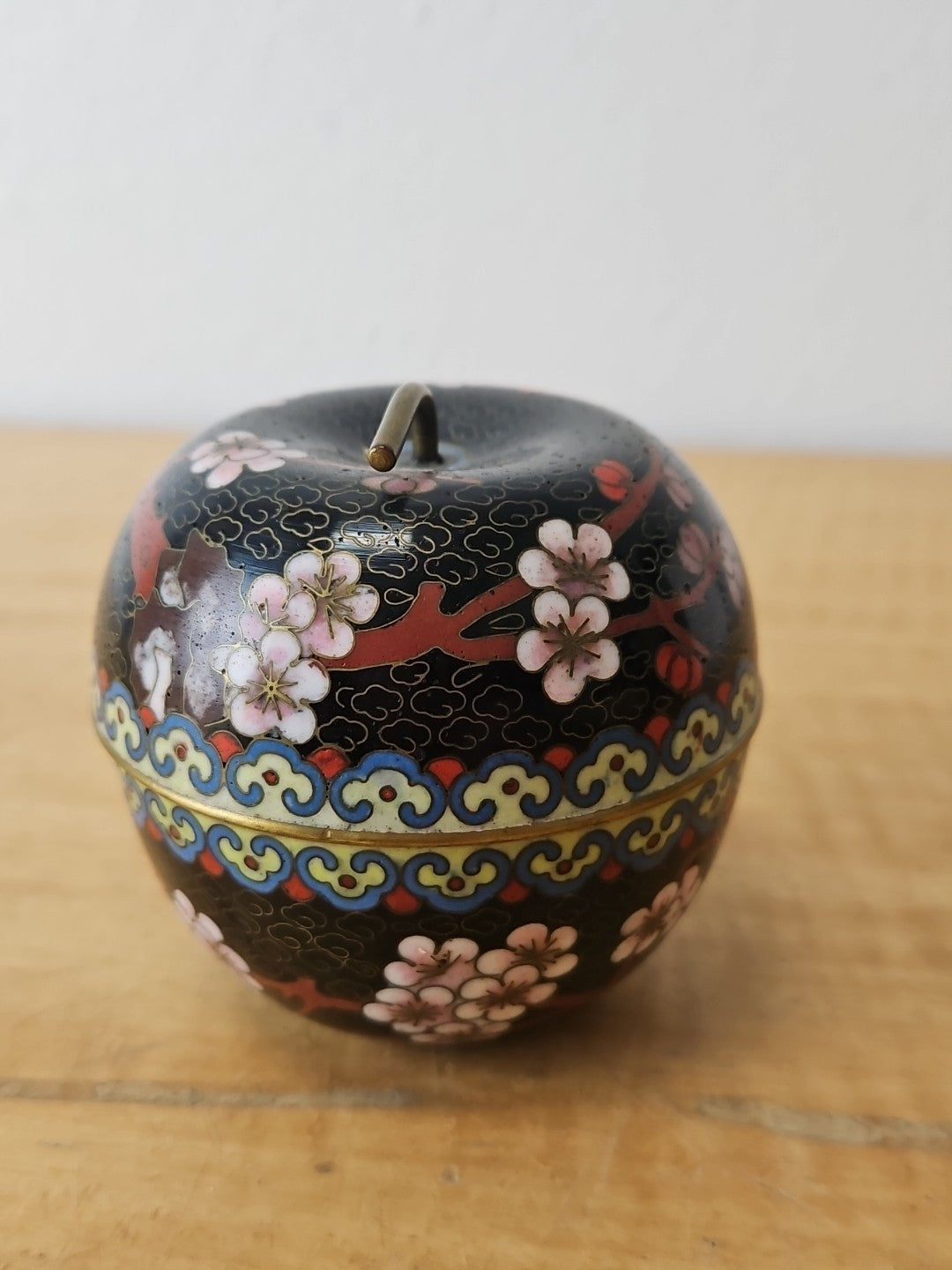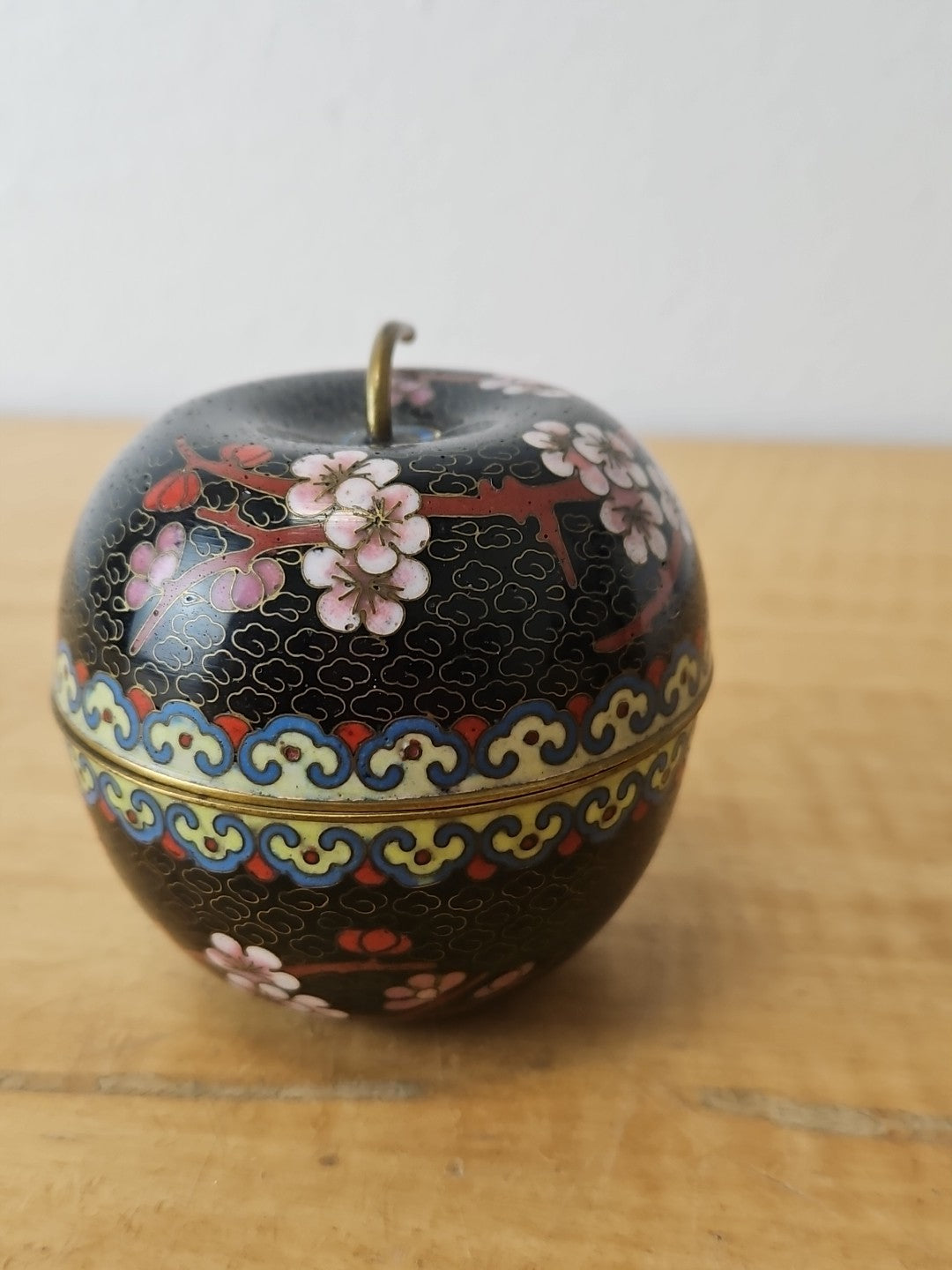 Vintage Apple Trinket box Chinese Cloisonne Flowers MCM blue interior