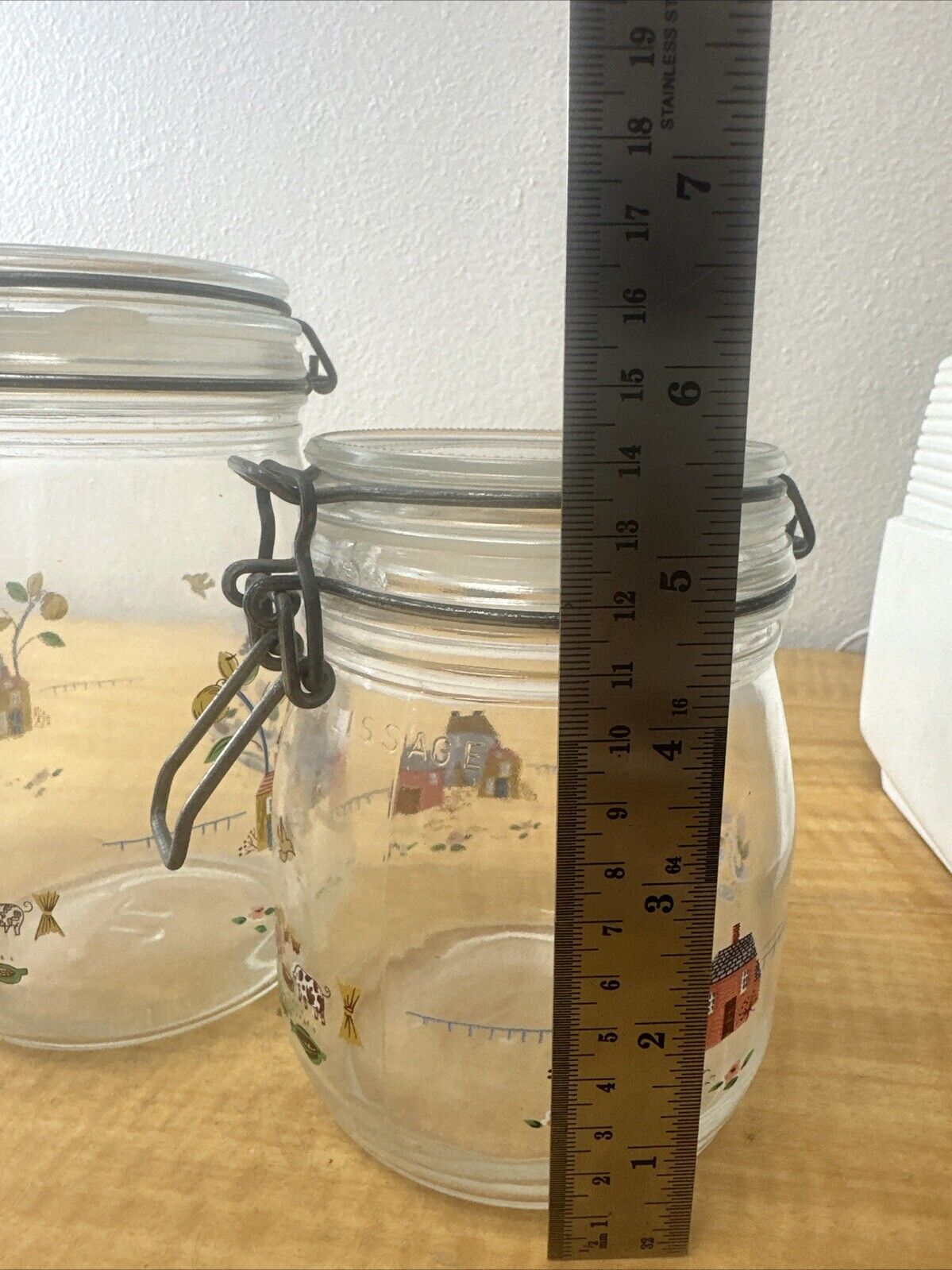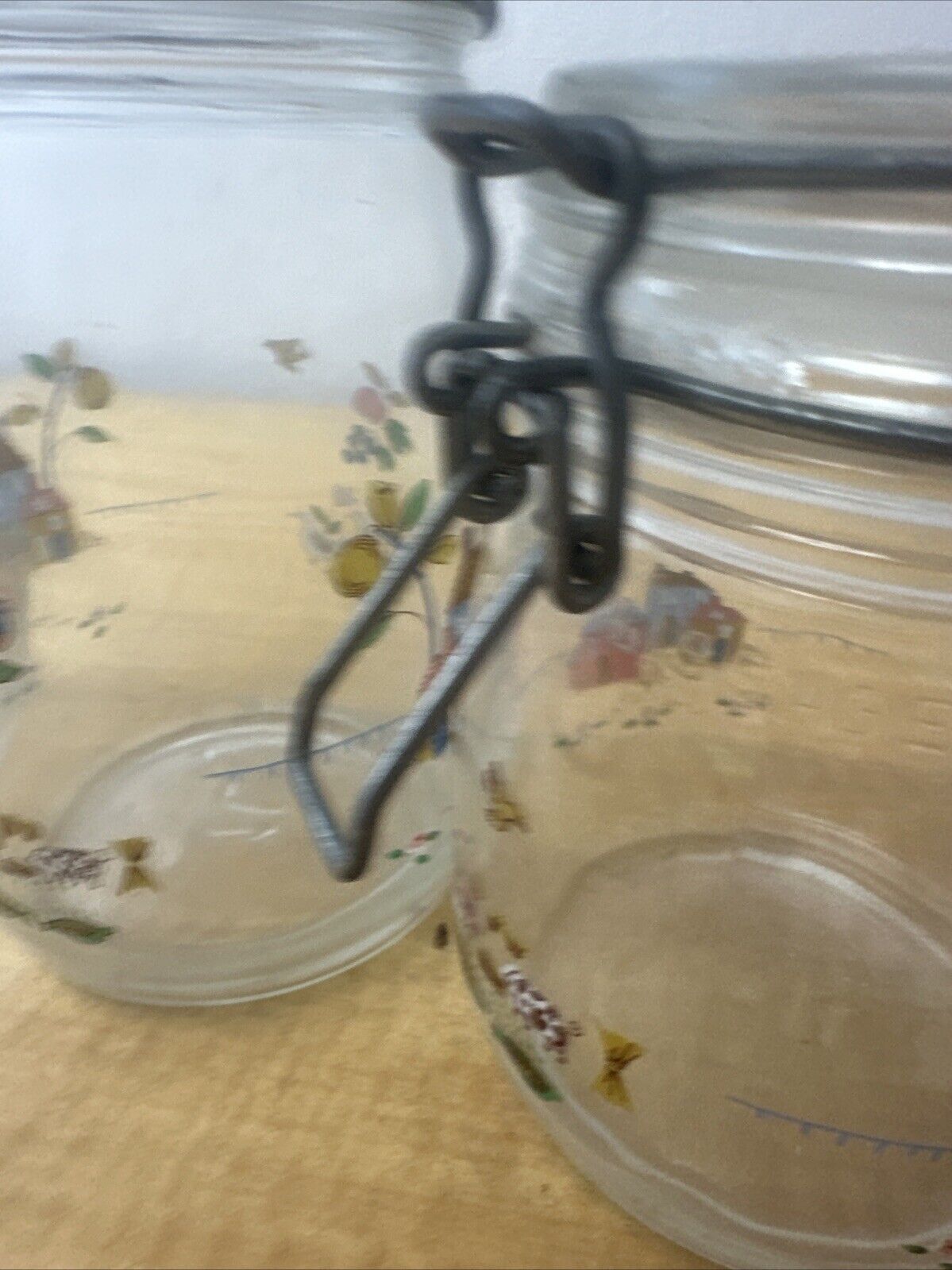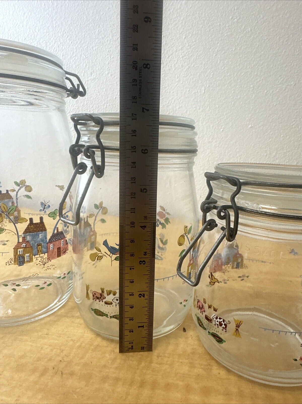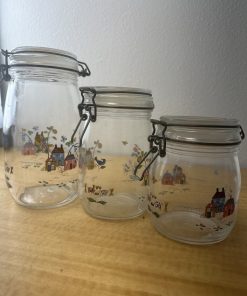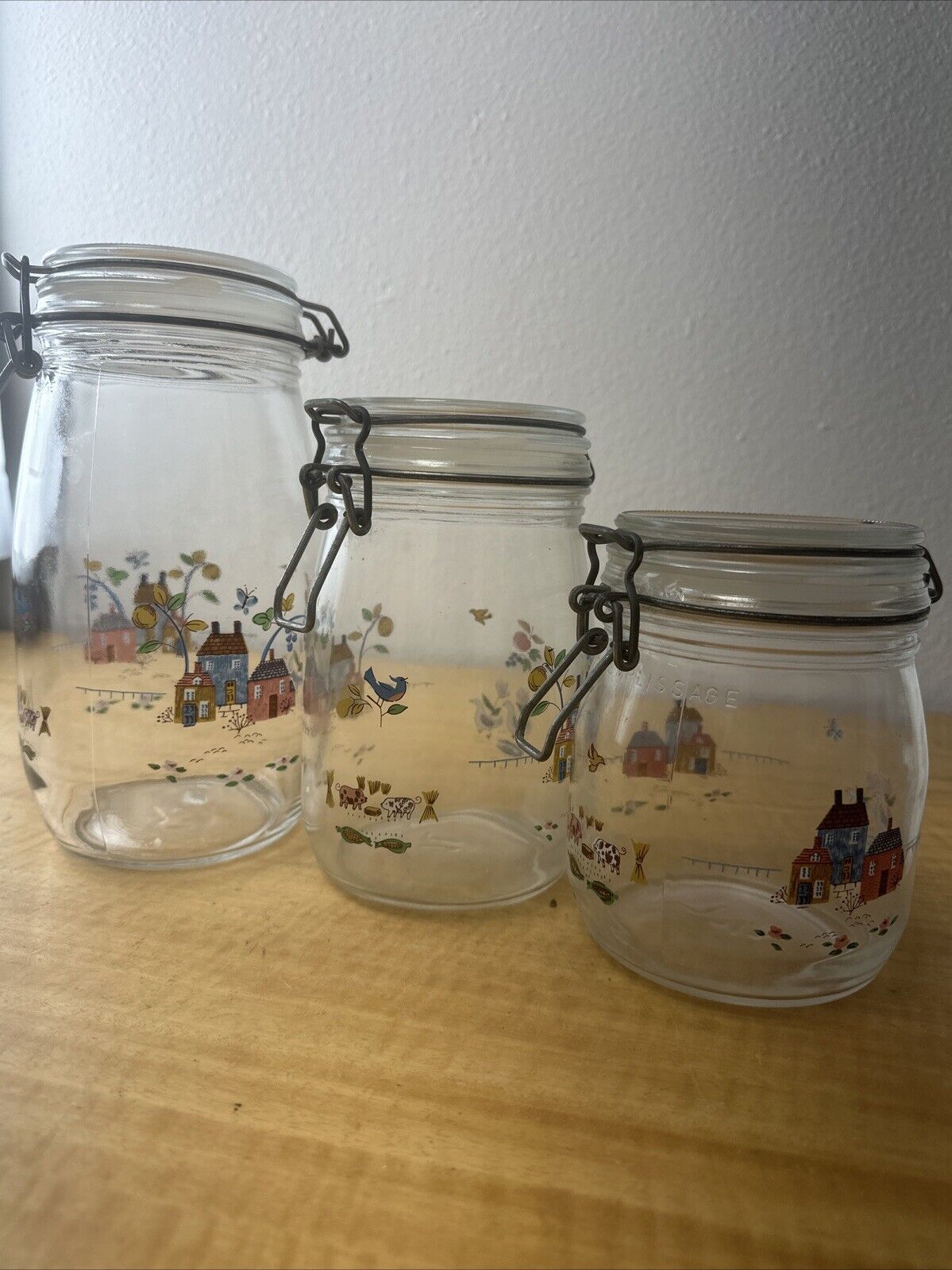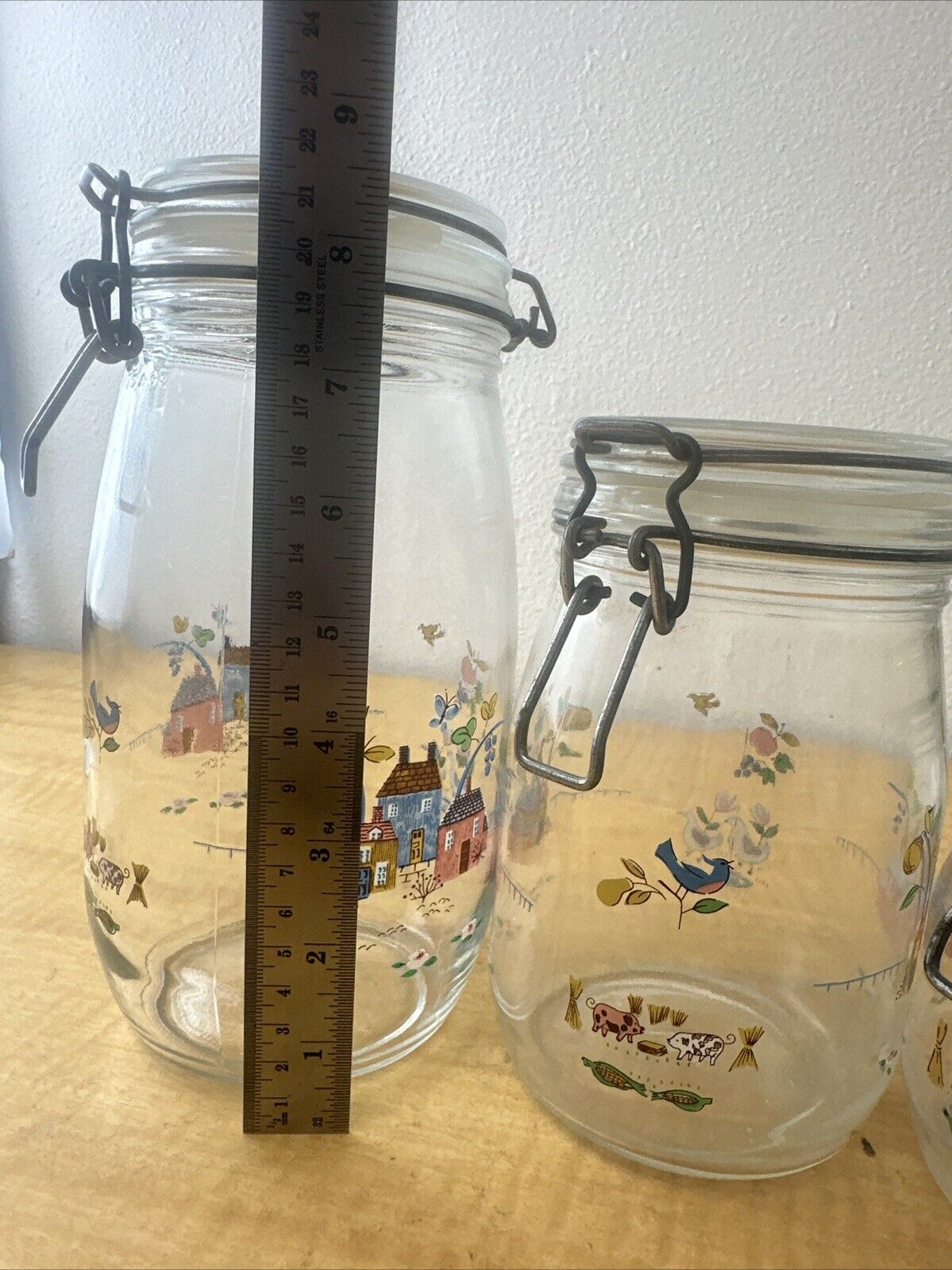 Vintage Arc France Glass Canister Storage Set of 3 Hinged Lids VGC