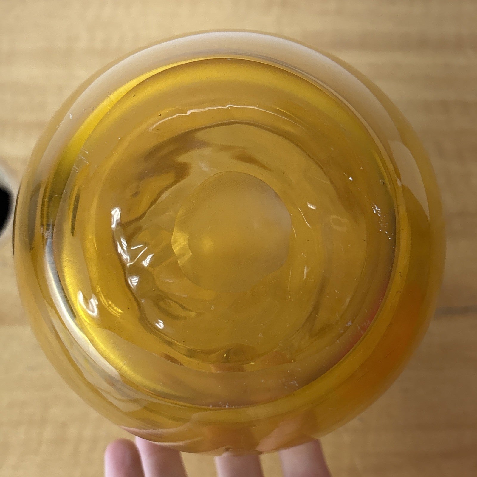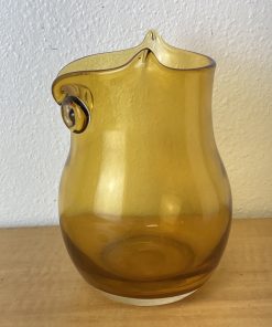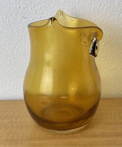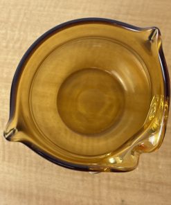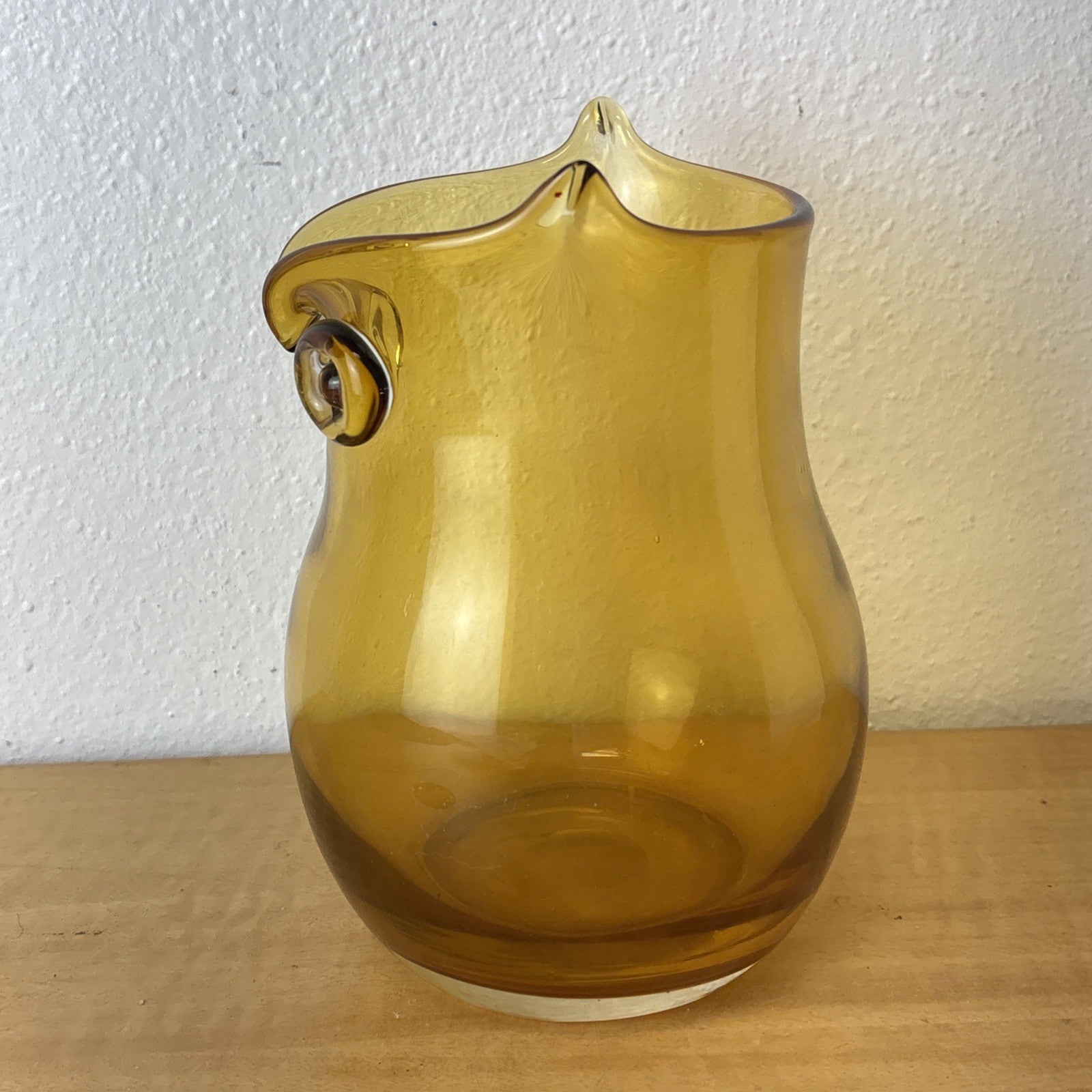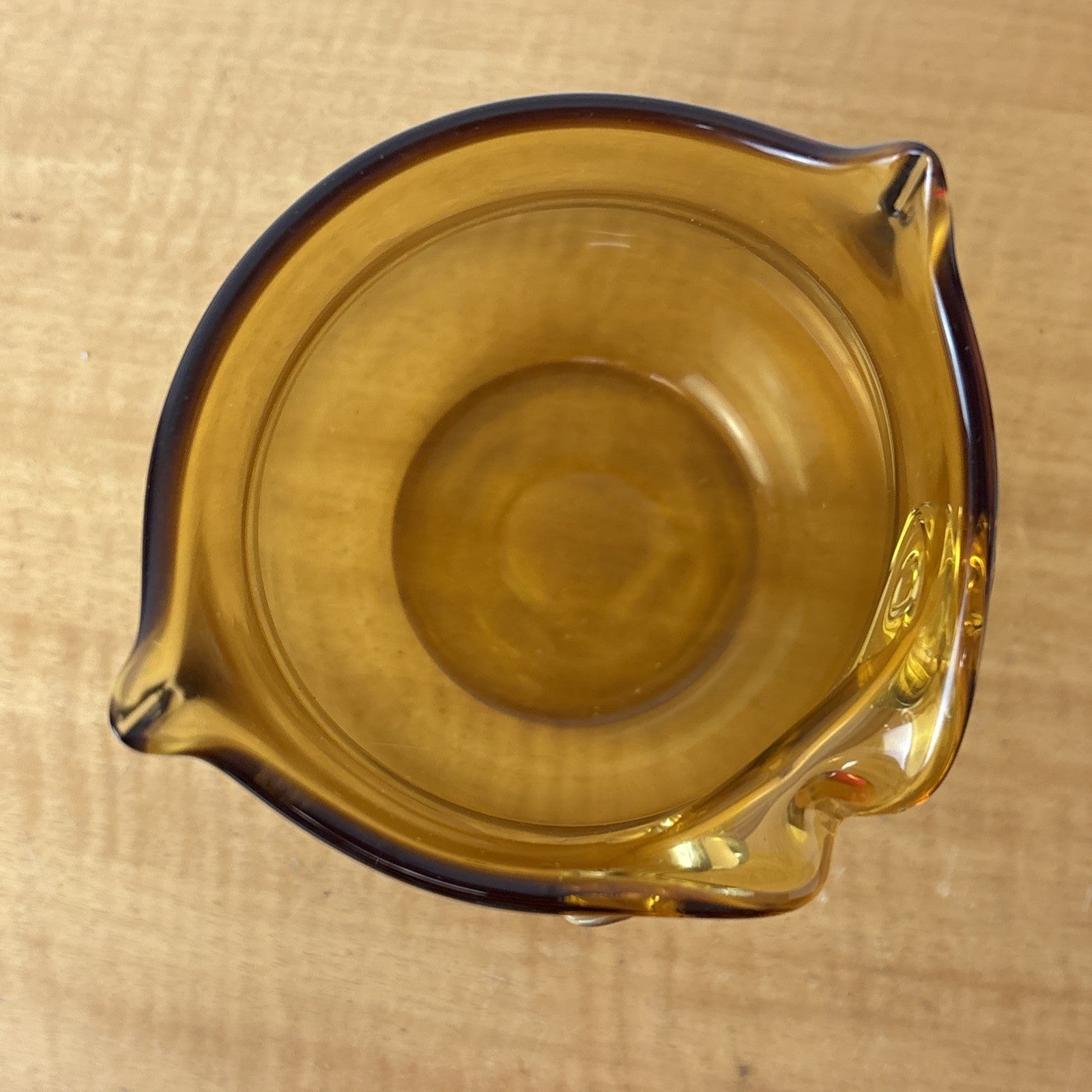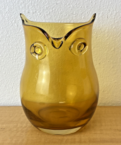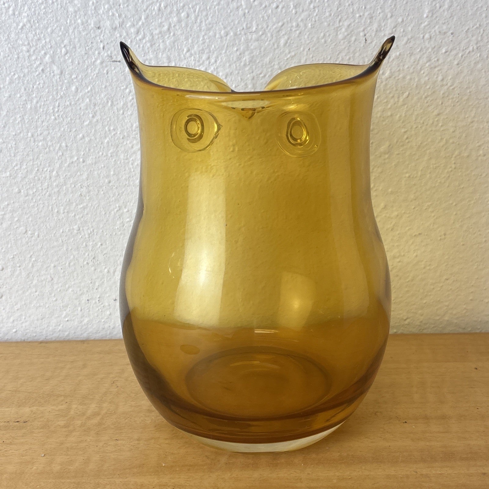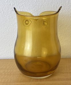 Vintage Art Glass Owl Vase Amber Applied Eyes Hand Blown