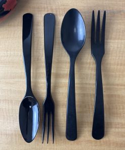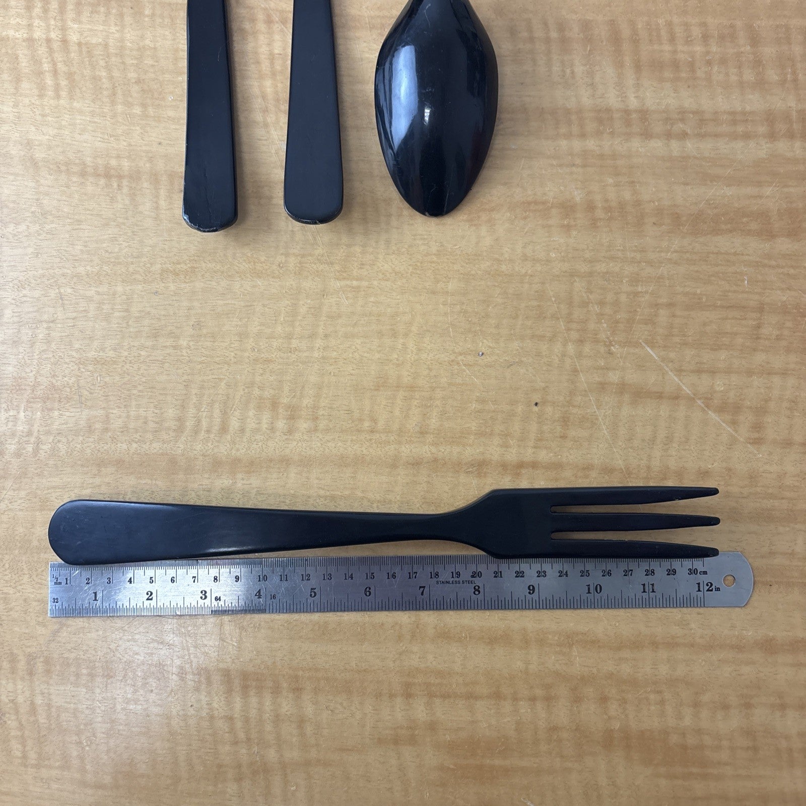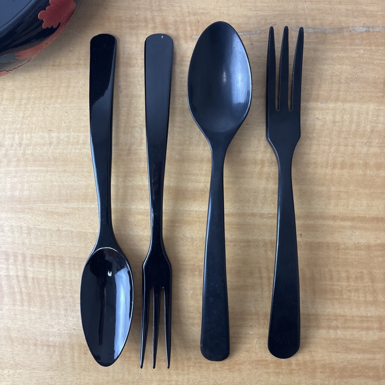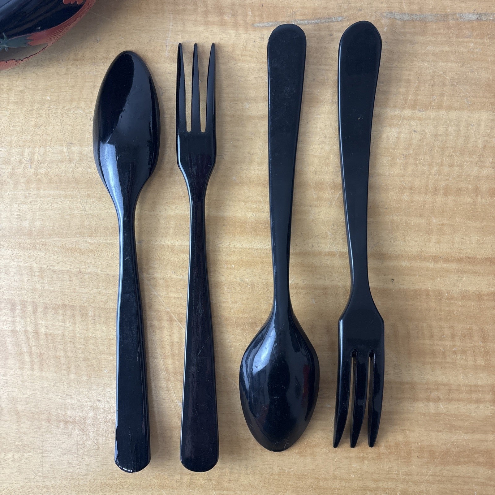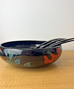 Vintage Bembo Okinawa Lacquerware Hibiscus Serving Bowl and Serving Fork & Spoon