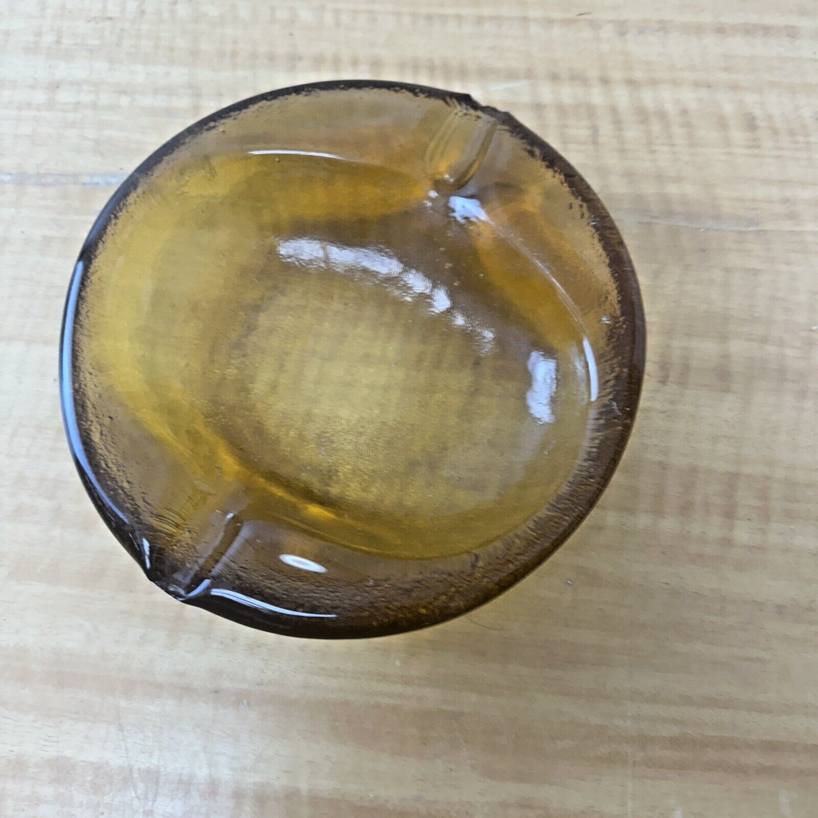 Vintage Blenko (?) Large Amber Round Heavy Textured Ashtray