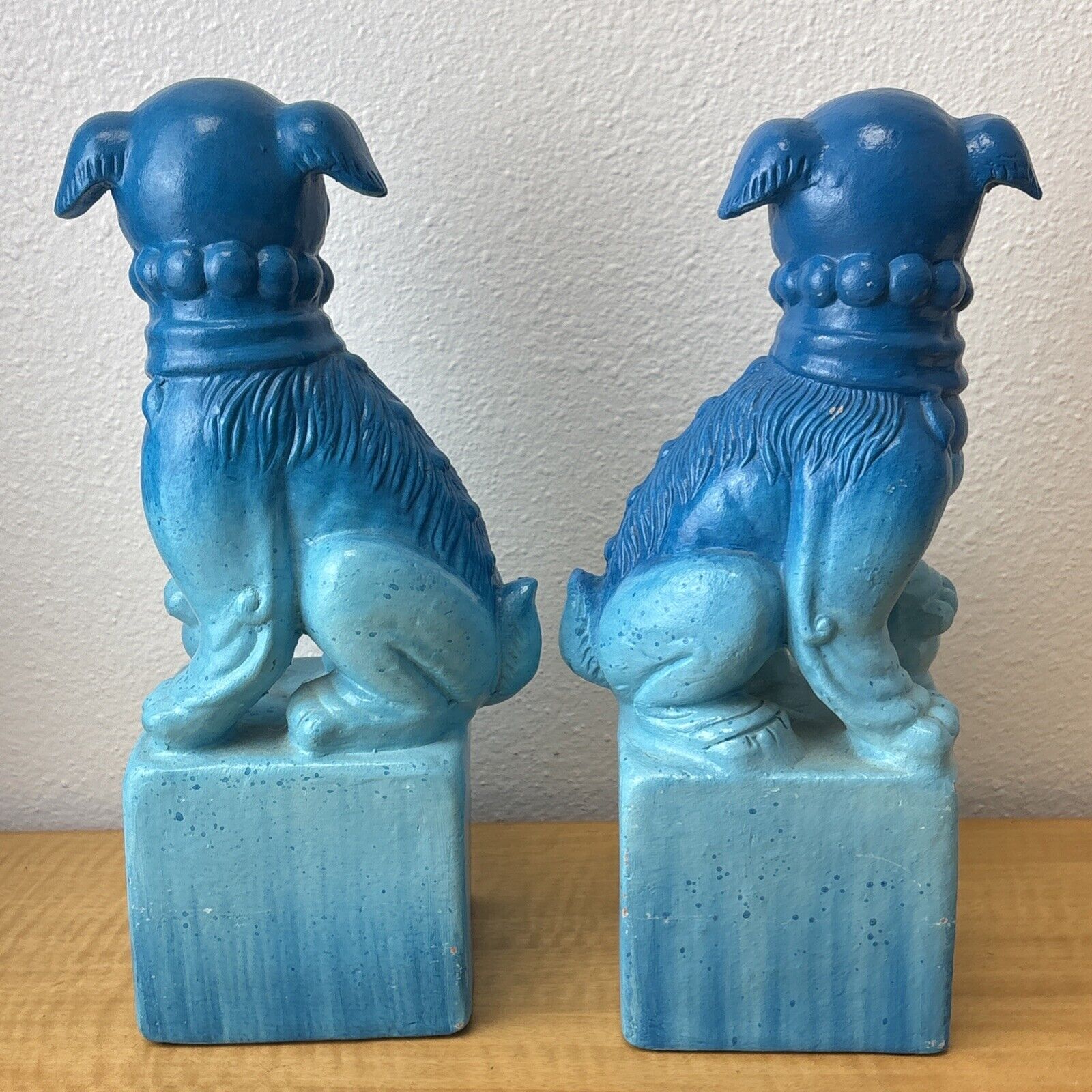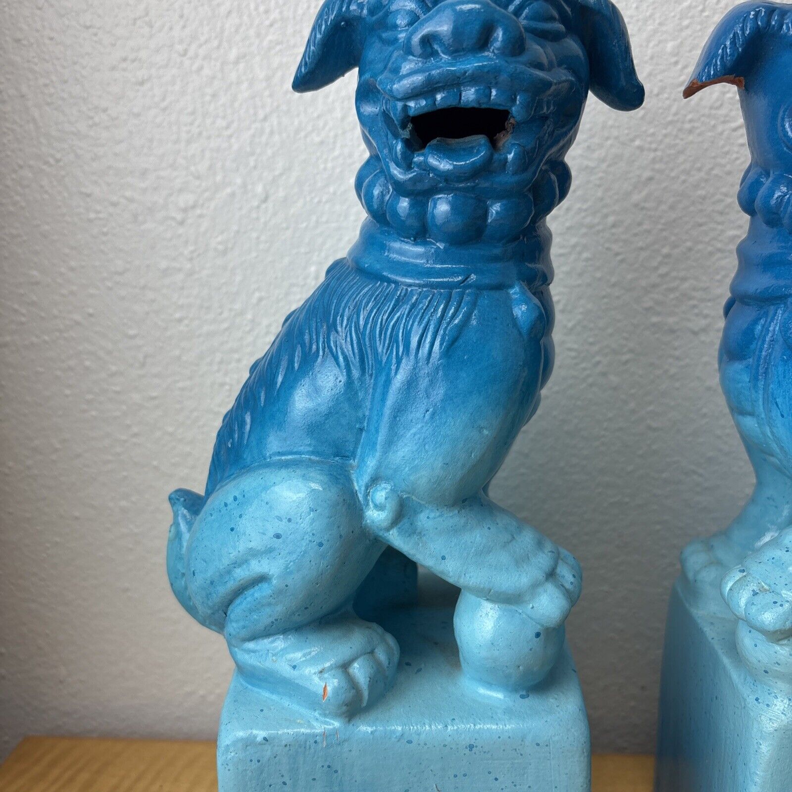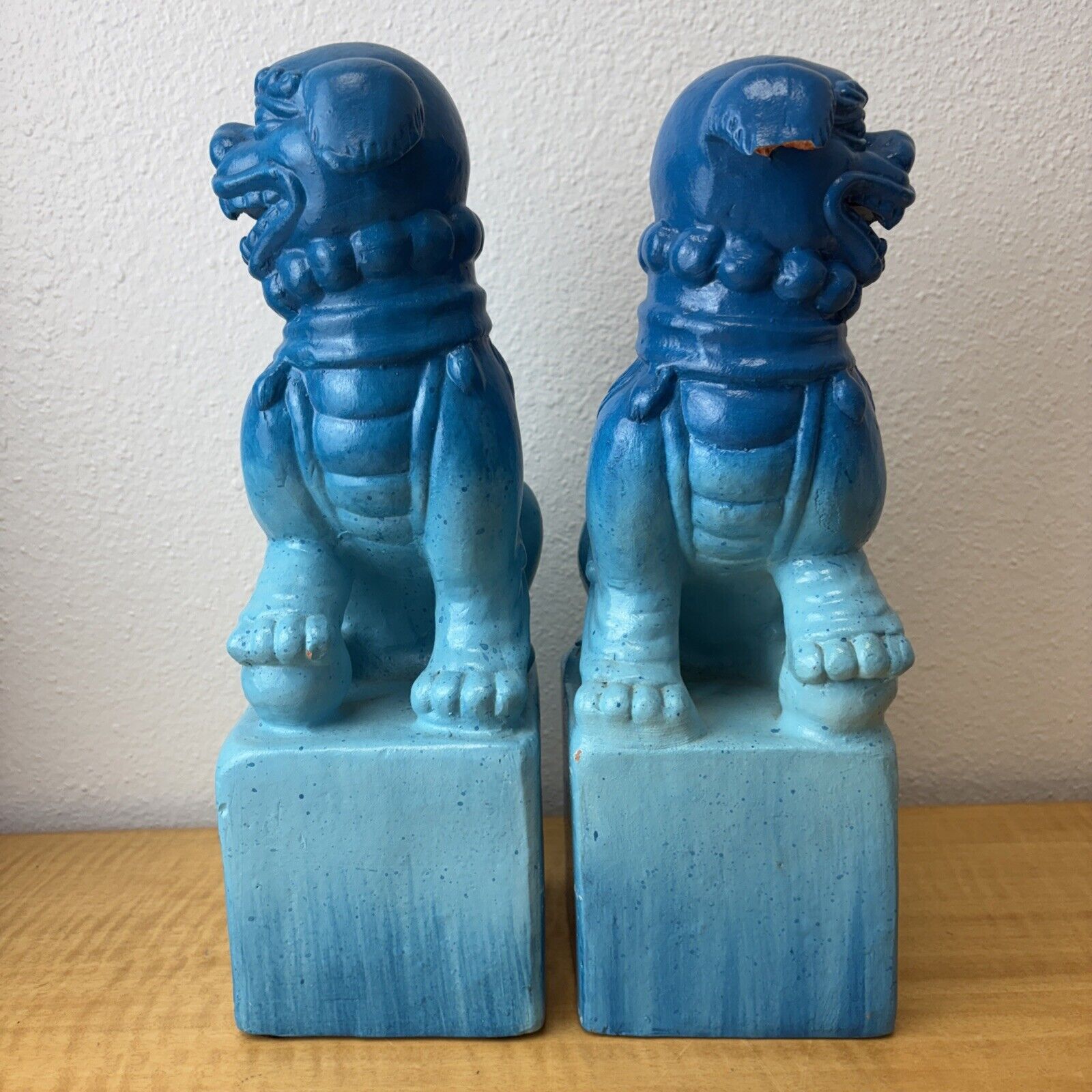 Vintage Blue Foo Dog Statues / Bookend Chinoiserie