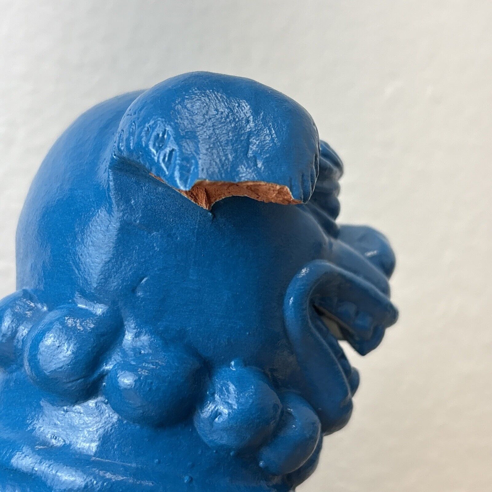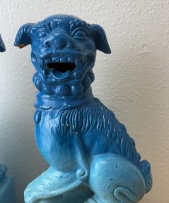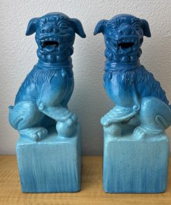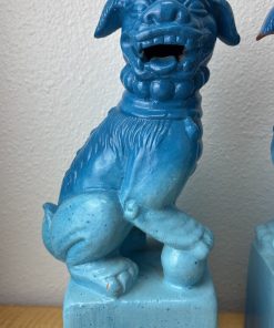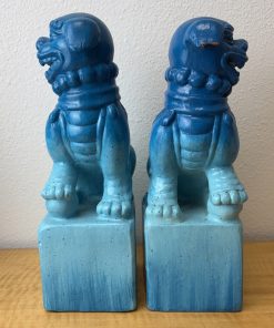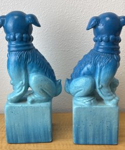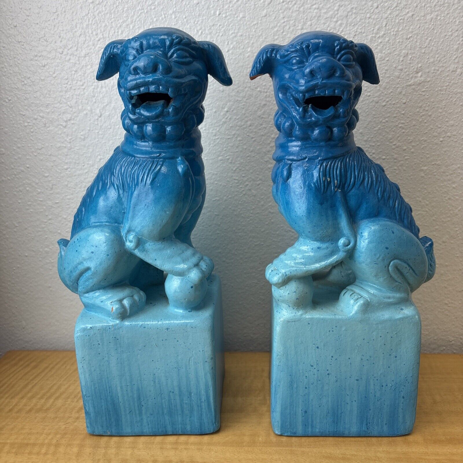 Vintage Blue Foo Dog Statues / Bookend Chinoiserie