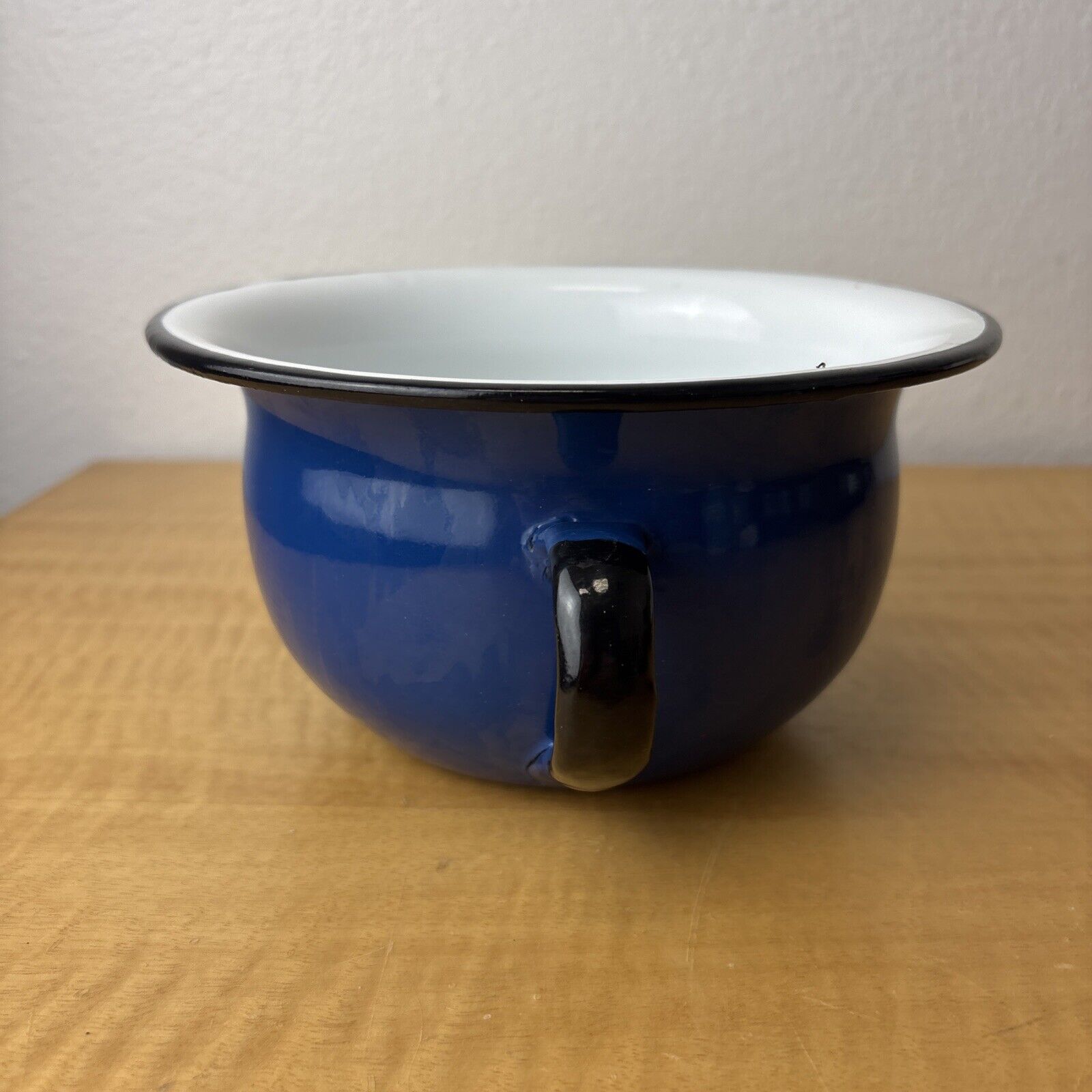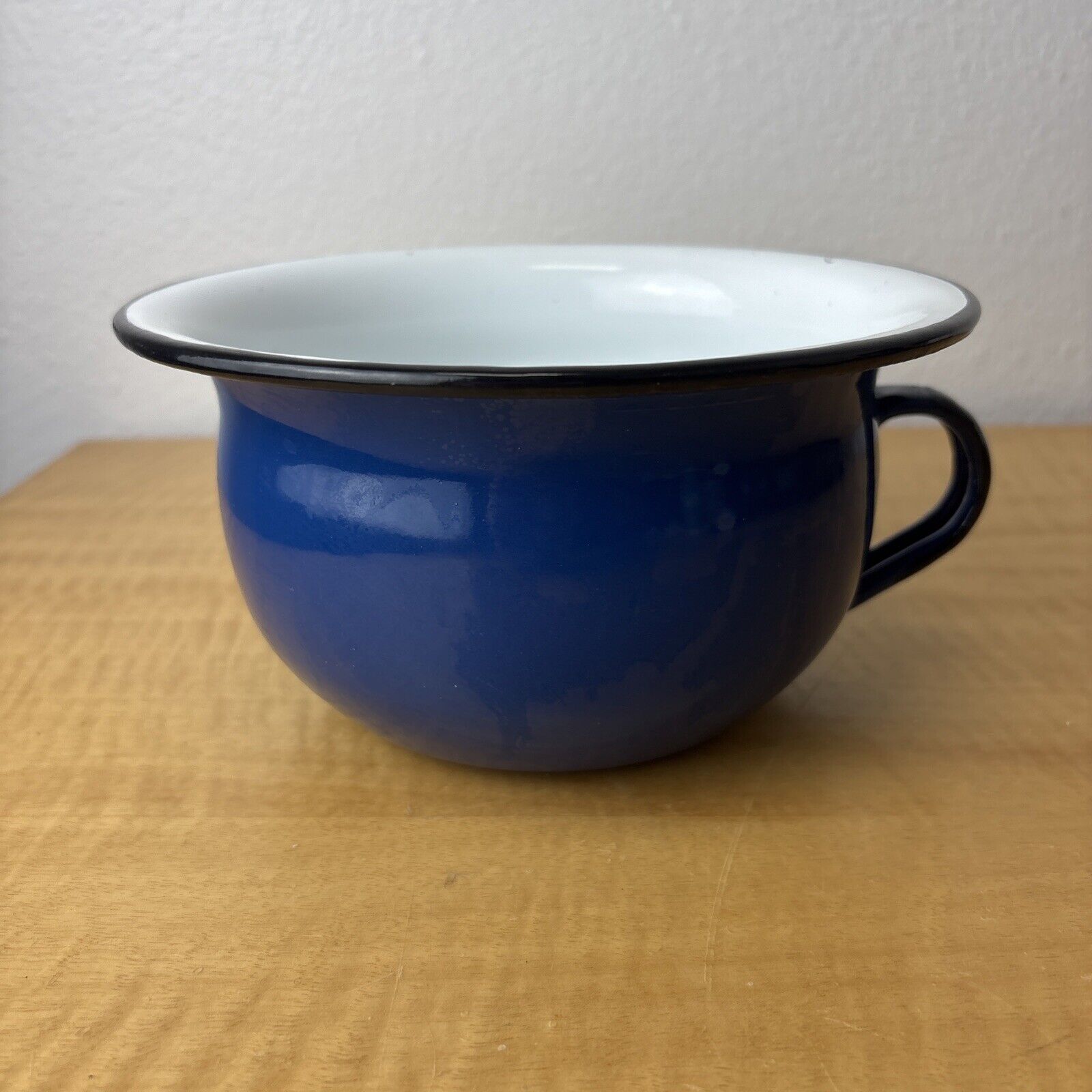 Vintage Blue & White Enamel Ware Chamber Pot Made in Poland