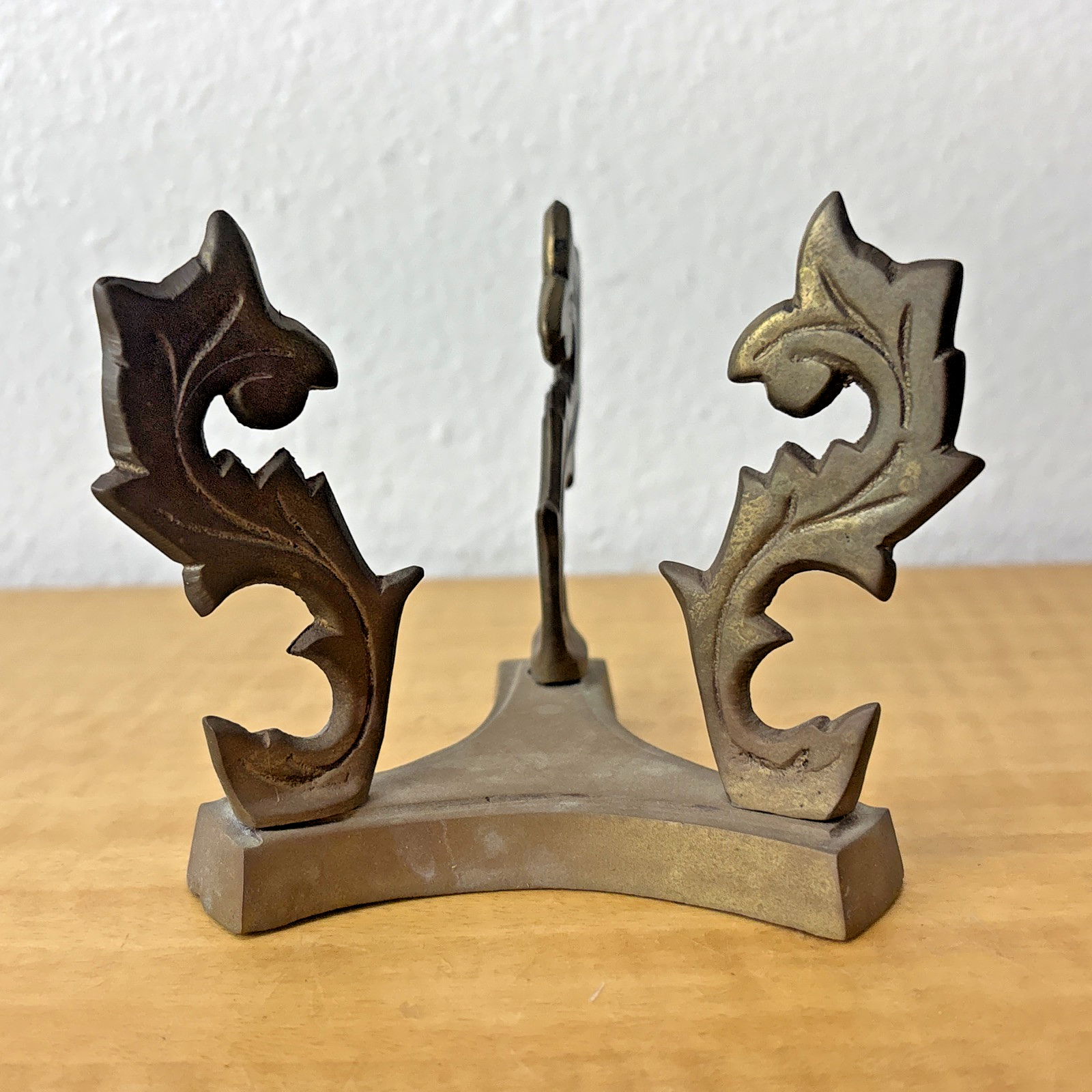 Vintage Brass Display Holder Swirl Leaf Dragon Hollywood Regency Made in India