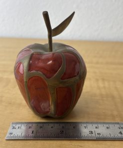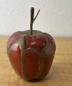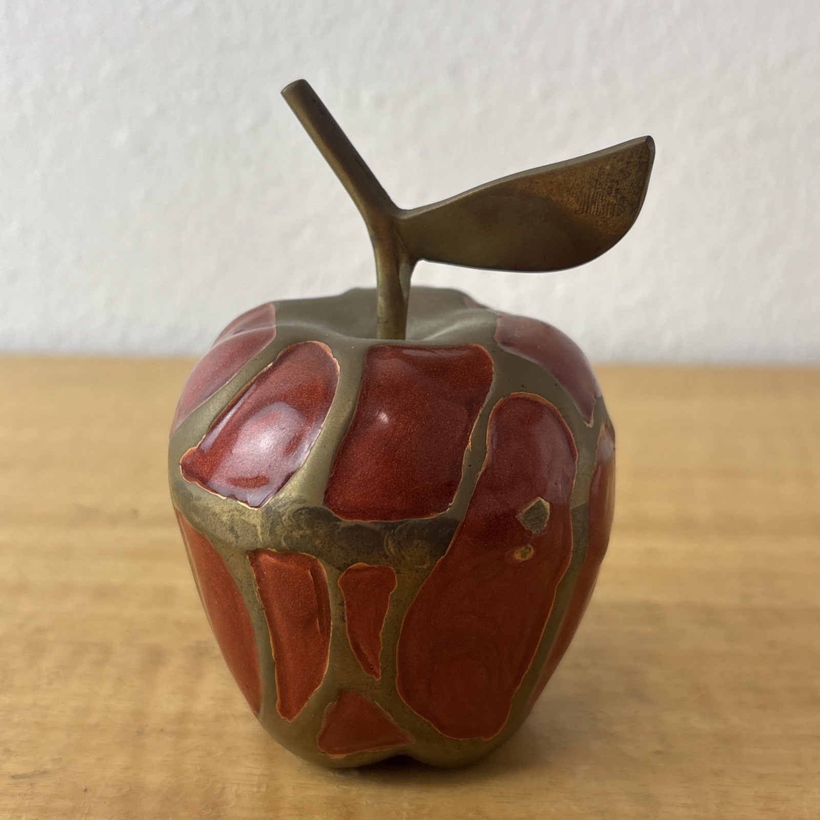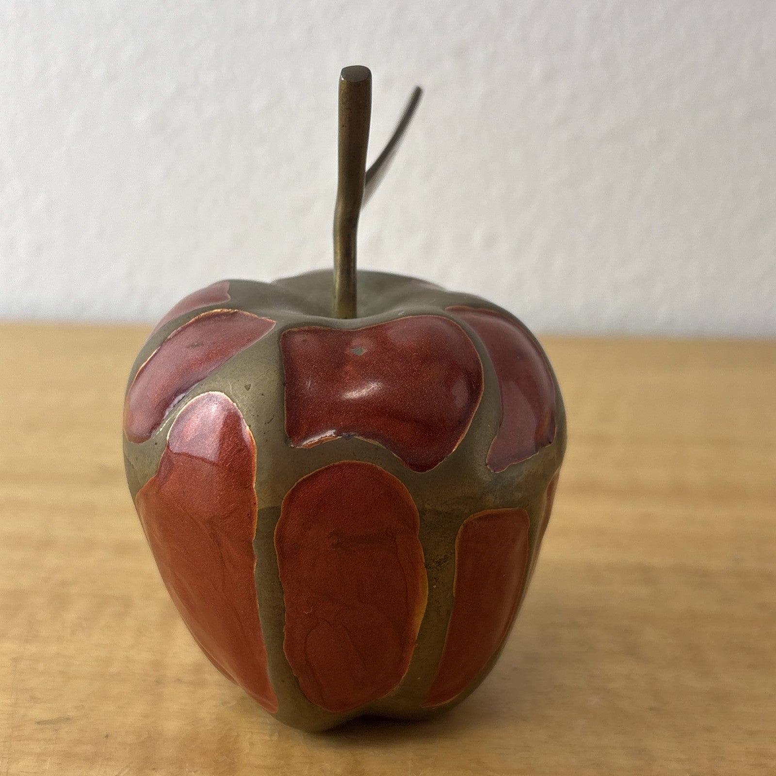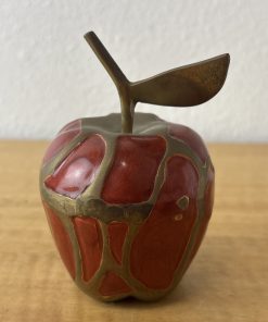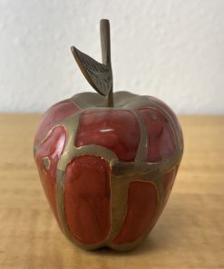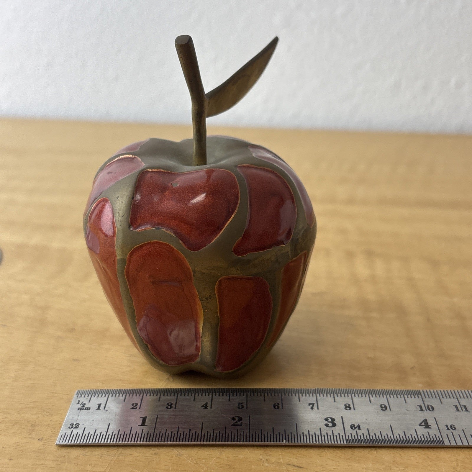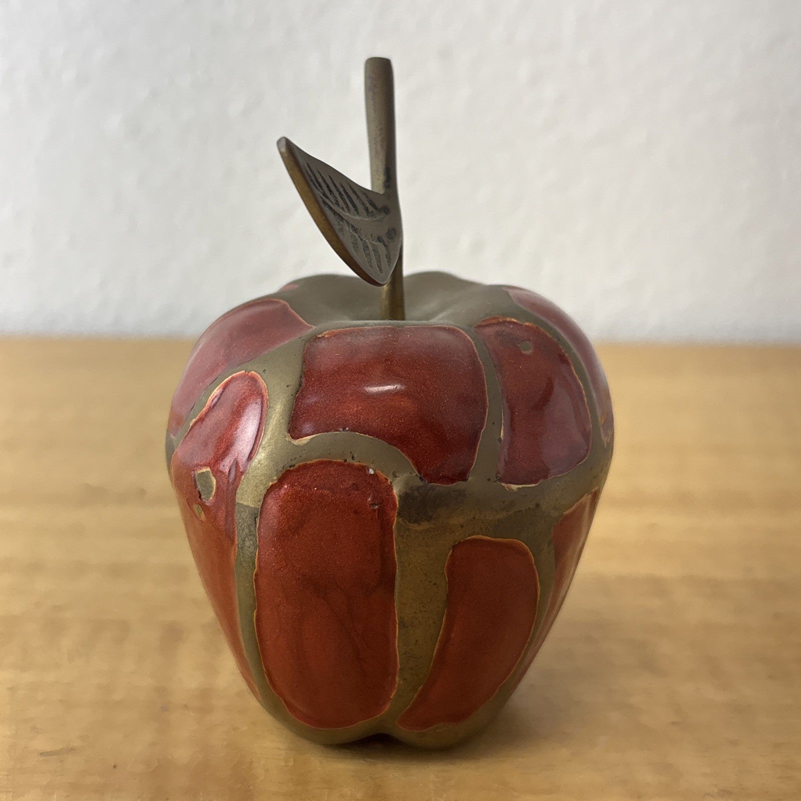 Vintage Brass & Enamel Tainted Apple Red & Gold Paperweight