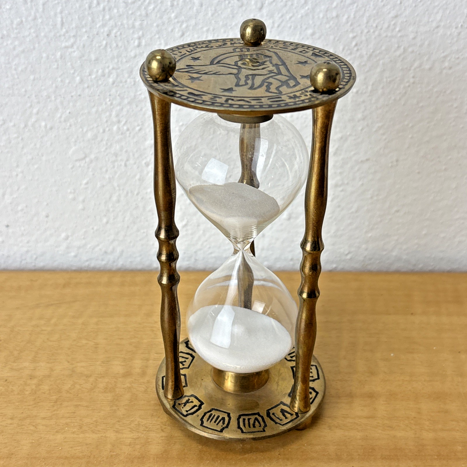 Vintage Brass Hourglass Roman Numerals Zodiac Clock Andrea by Sadek