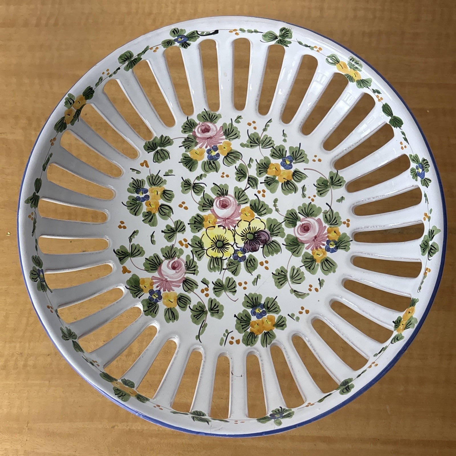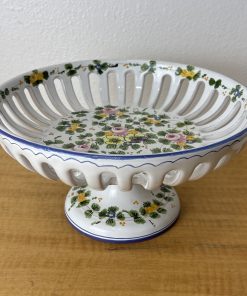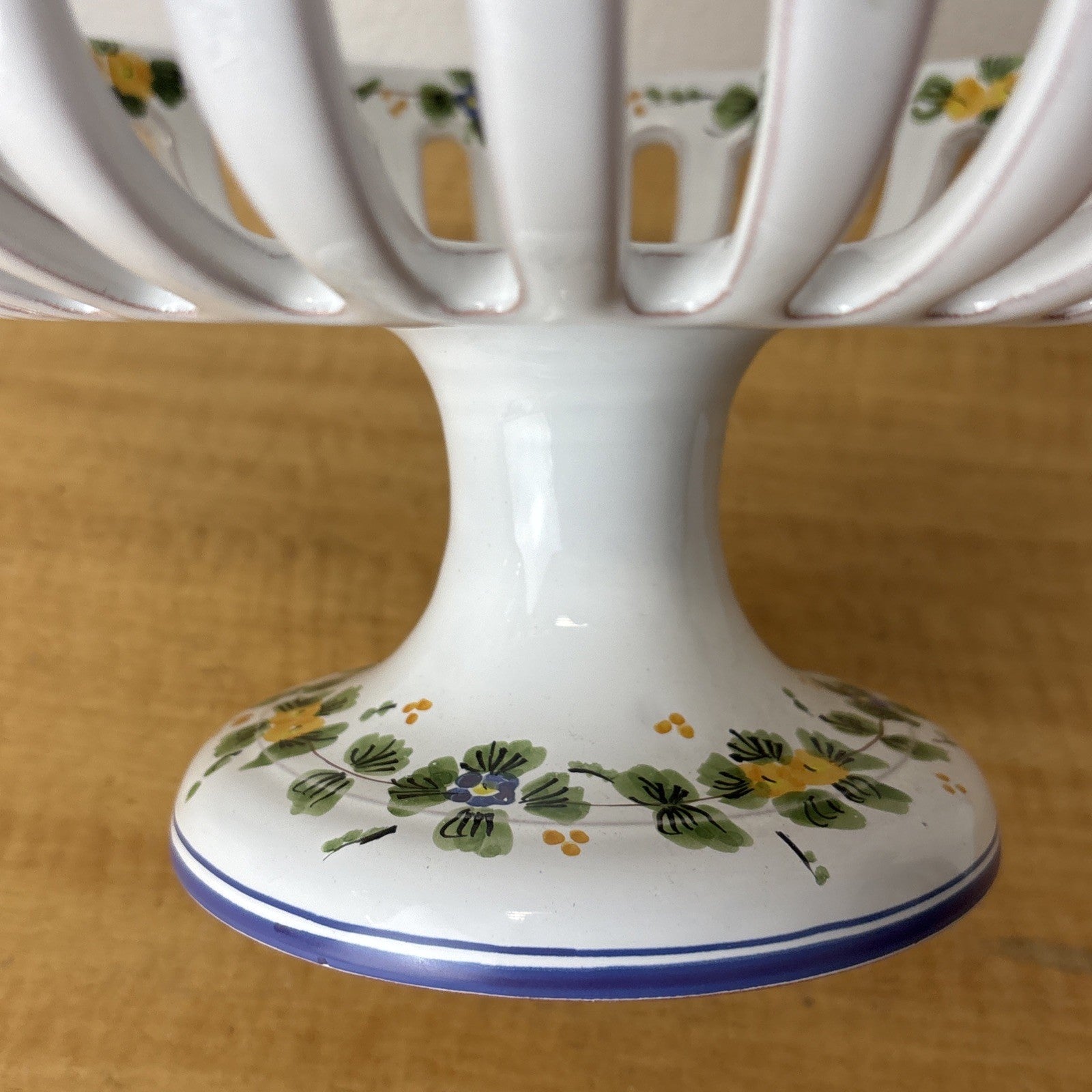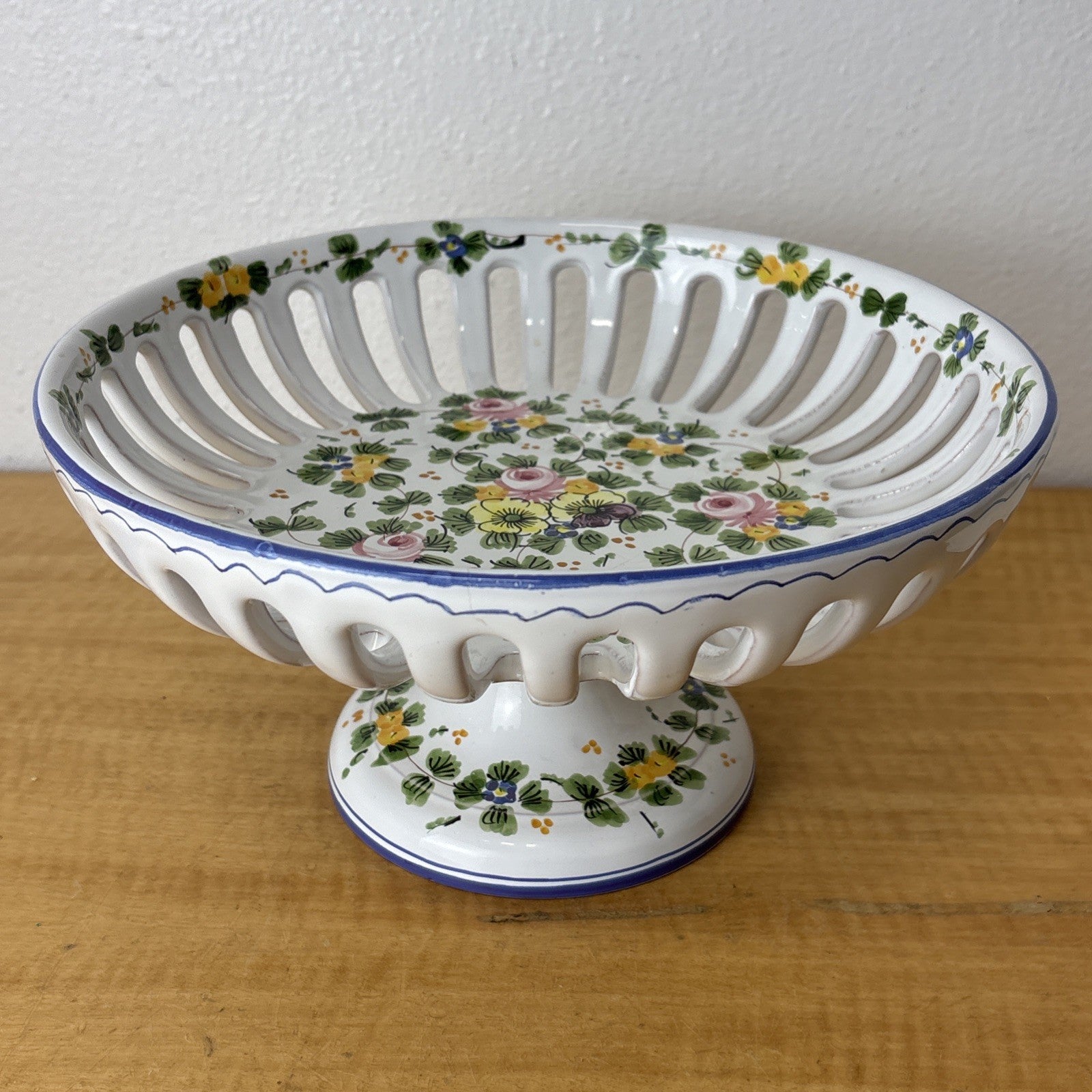 Vintage Castelli Italy Hand-Painted Ceramic Compote Bowl Pedestal Dish 11”
