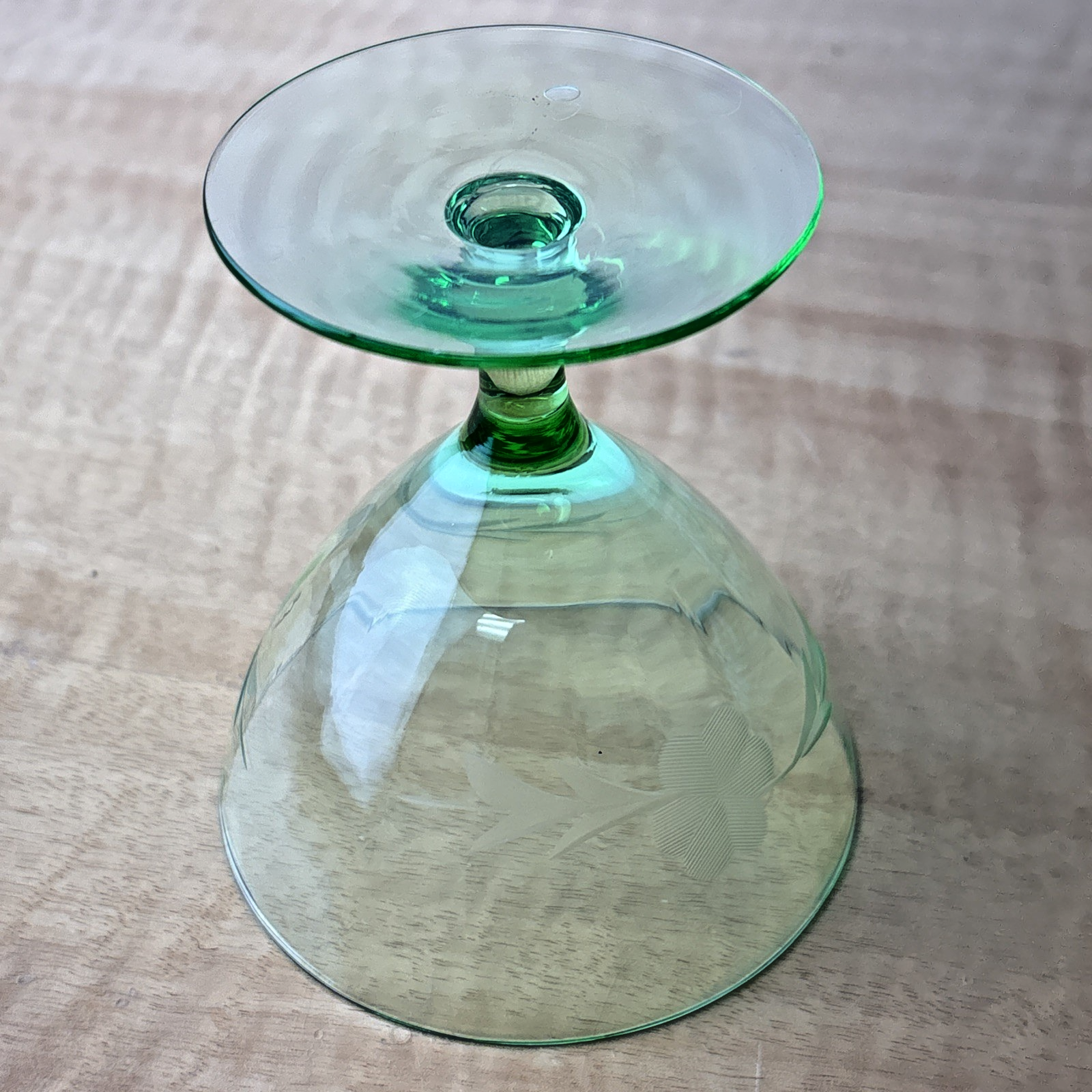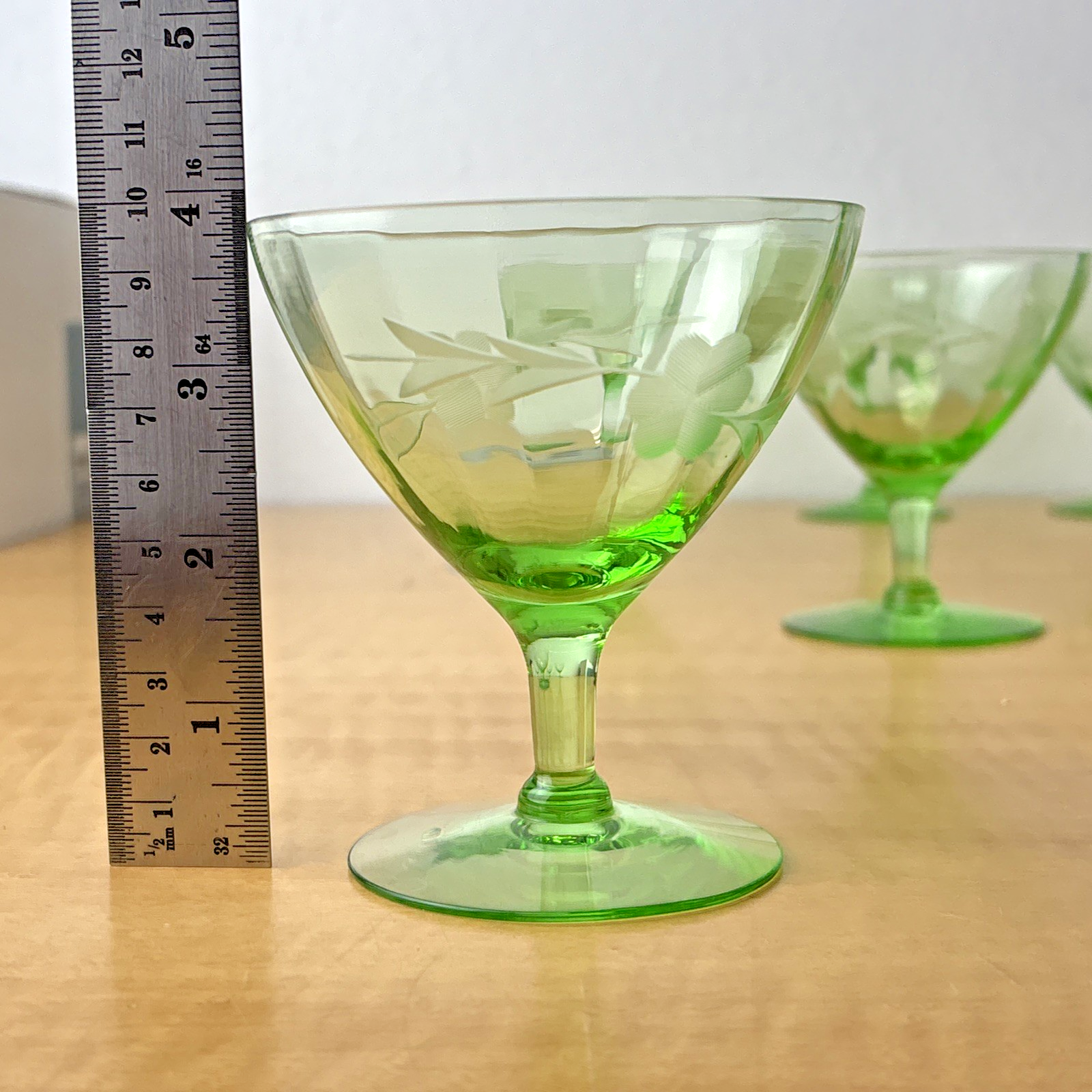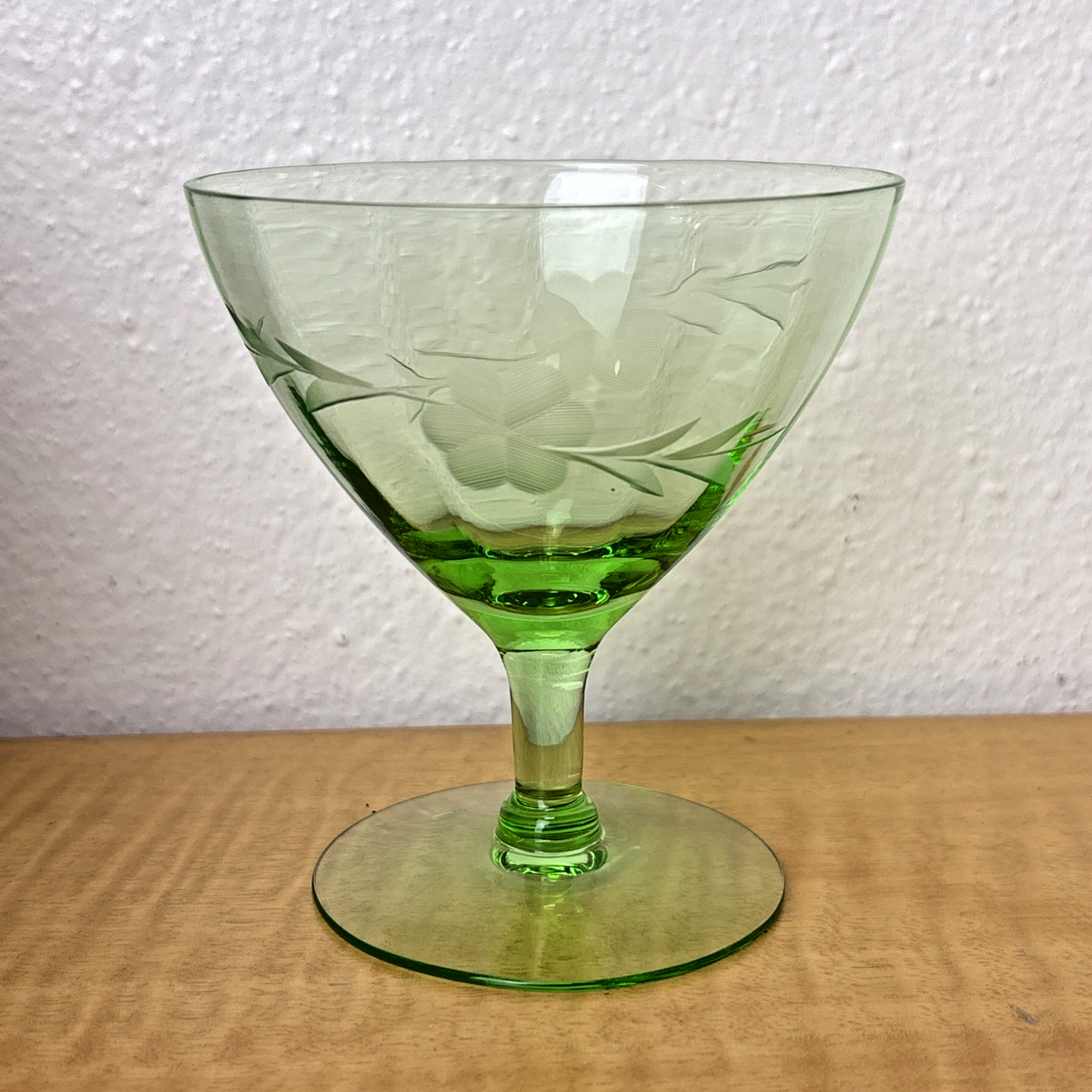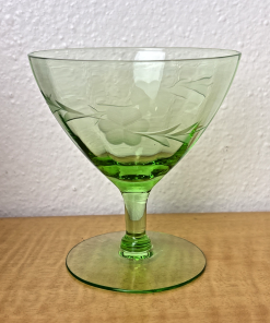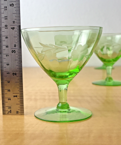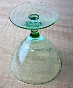 Vintage Champagne/Sherbet Clear Needle Etched Pattern Green Uranium Glass