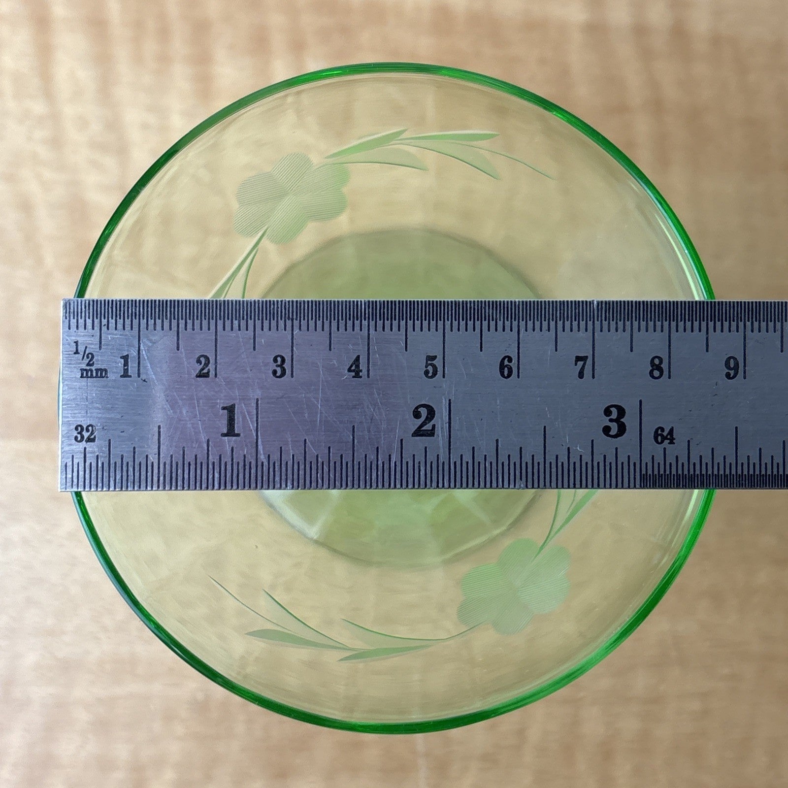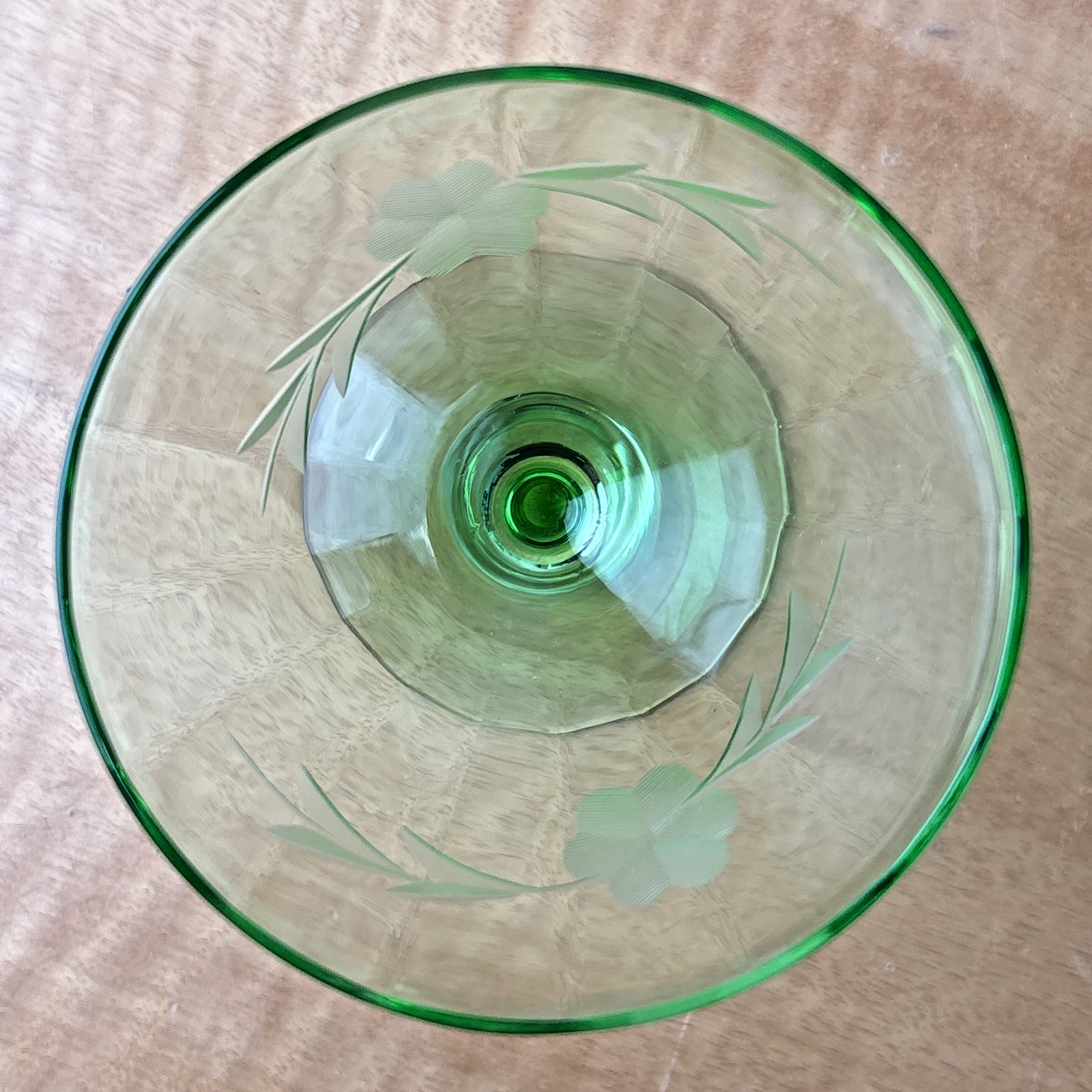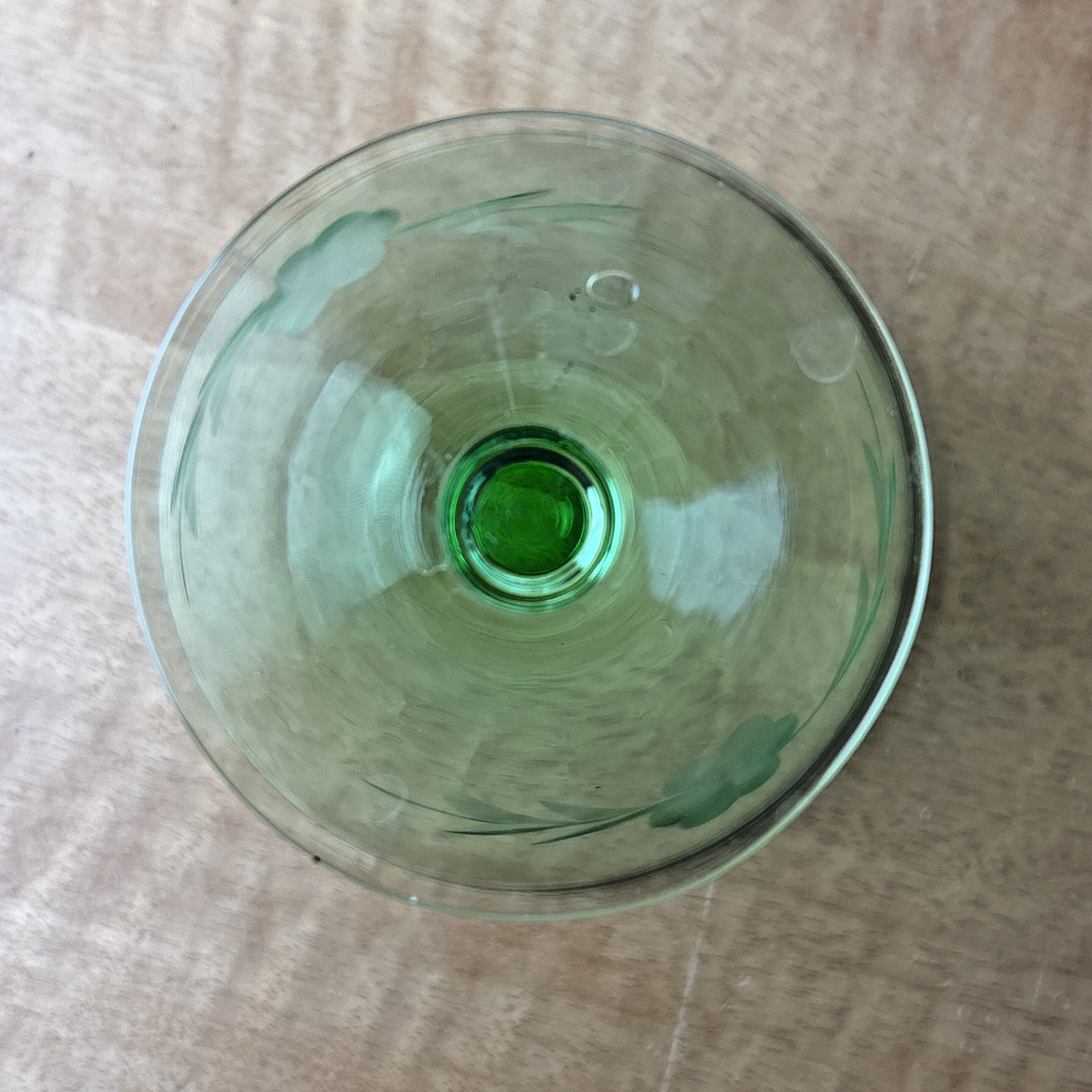 Vintage Champagne/Sherbet Clear Needle Etched Pattern Green Uranium Glass