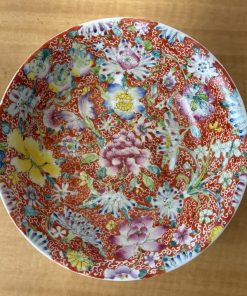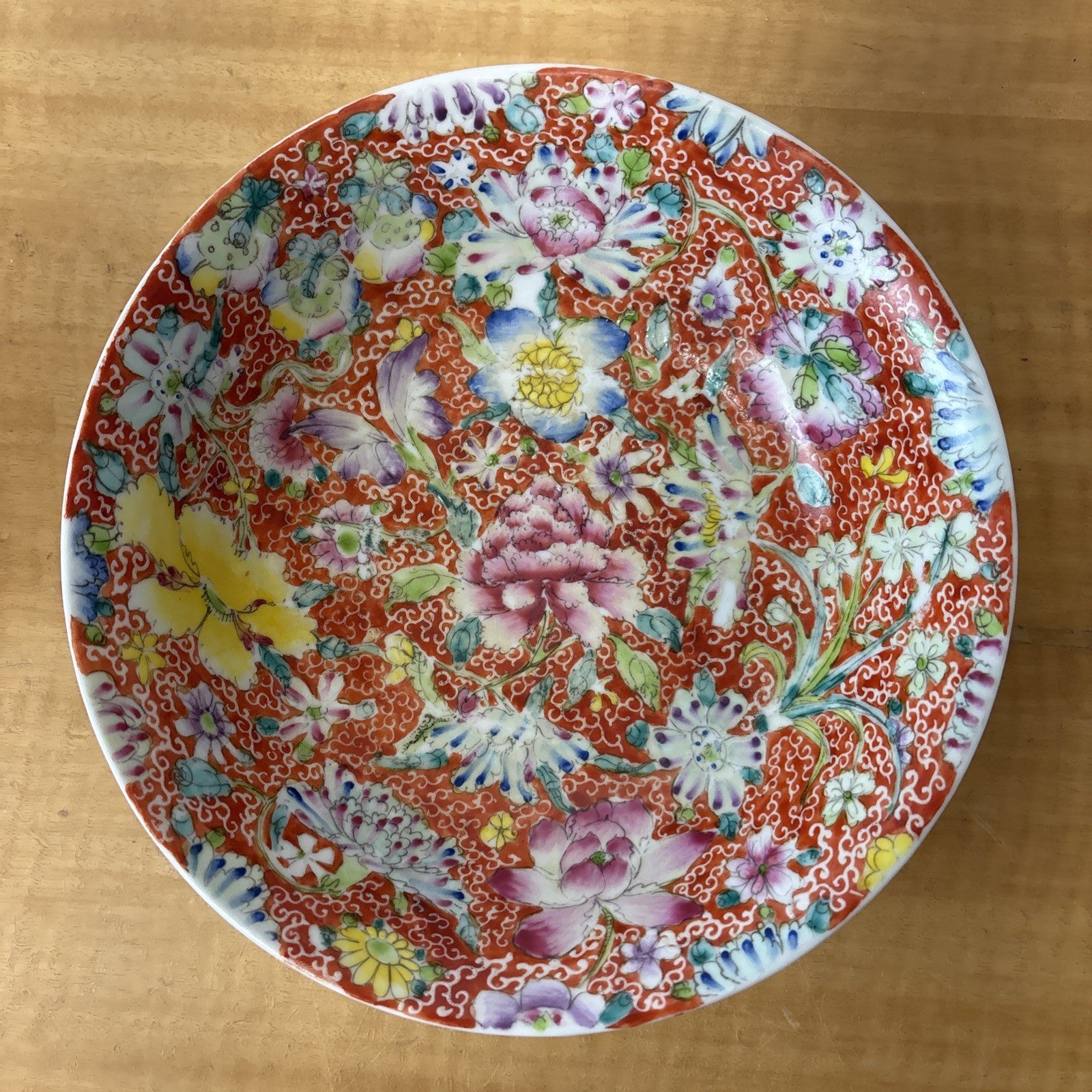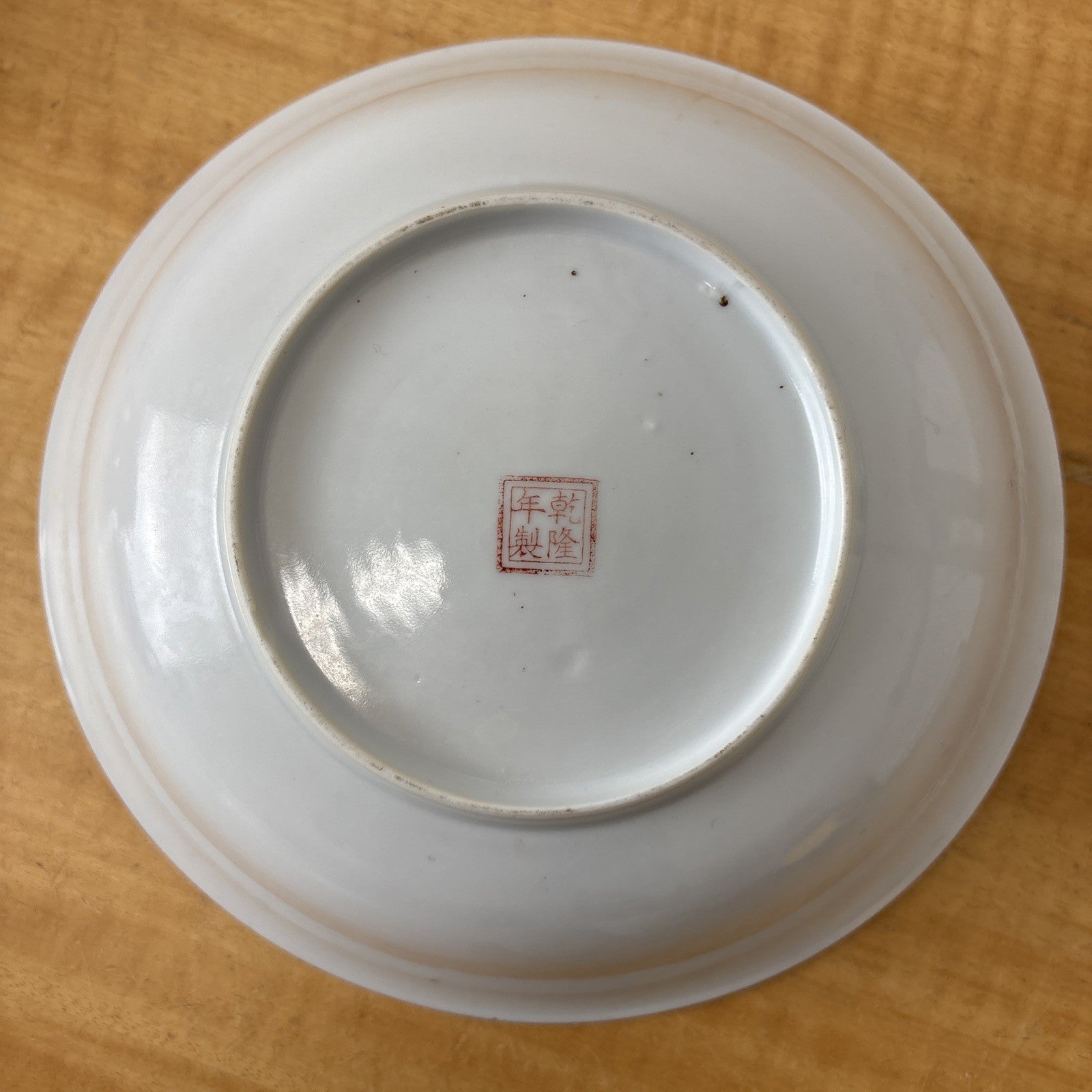 Vintage Chinese Hand Painted Porcelain Plate Qianlong Dynasty Red Mark 1950s