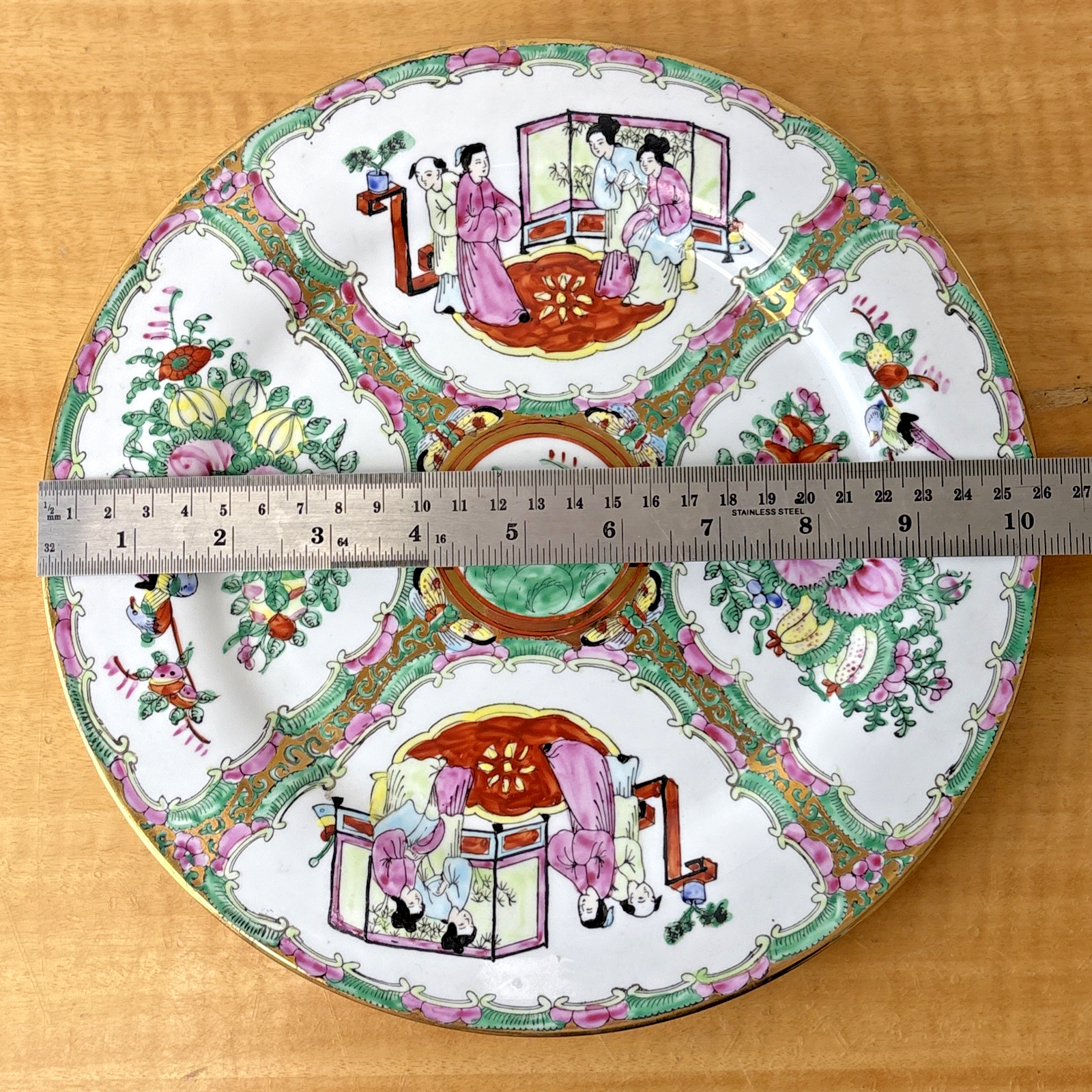 Vintage Chinese Porcelain Medallion Rose Hand Painted Plate – 10.25″