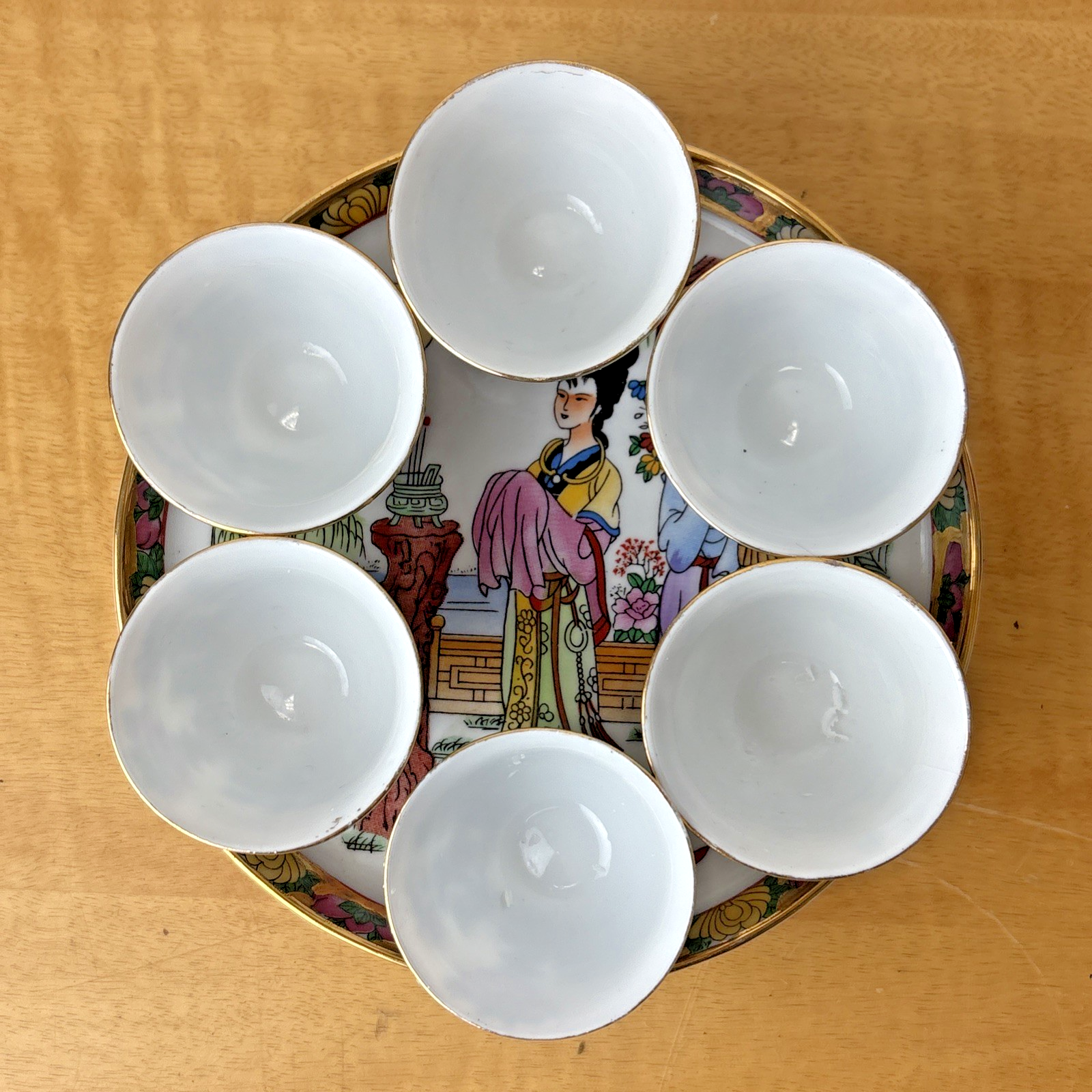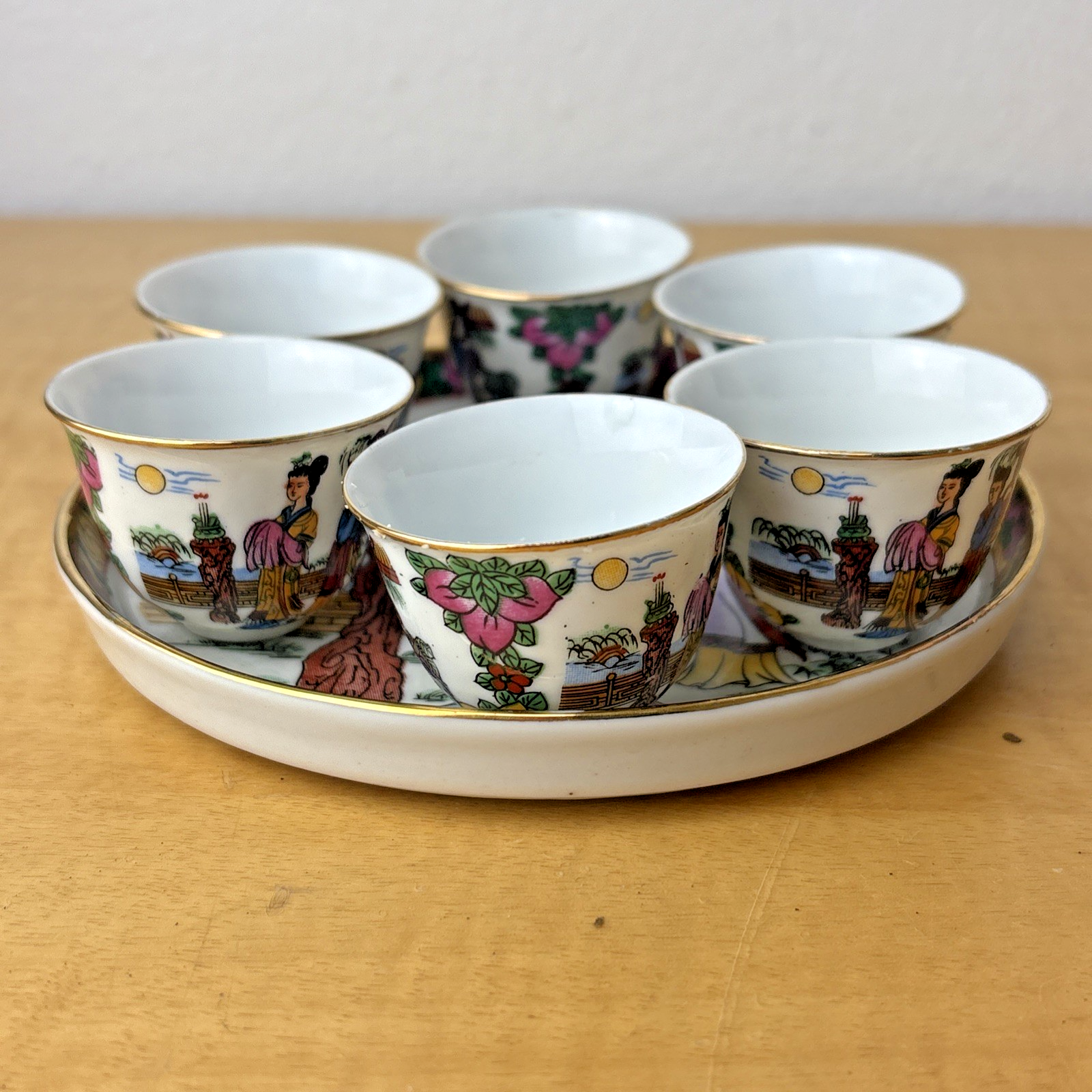 Vintage Chinese Tea / Sake Glass Set WY China Hand Painted