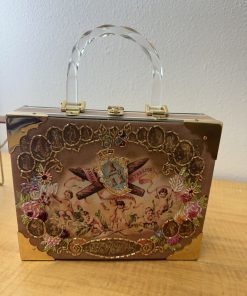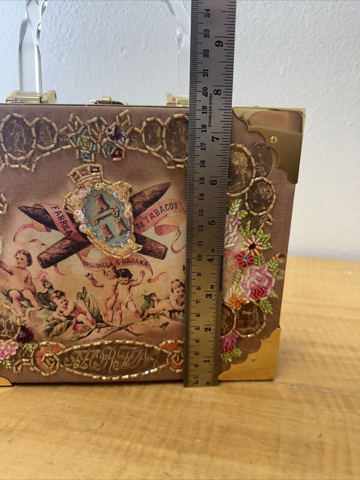 Vintage Cigar Box Ashley M Angel Cherub Beaded Jewelry Treasure Box Purse