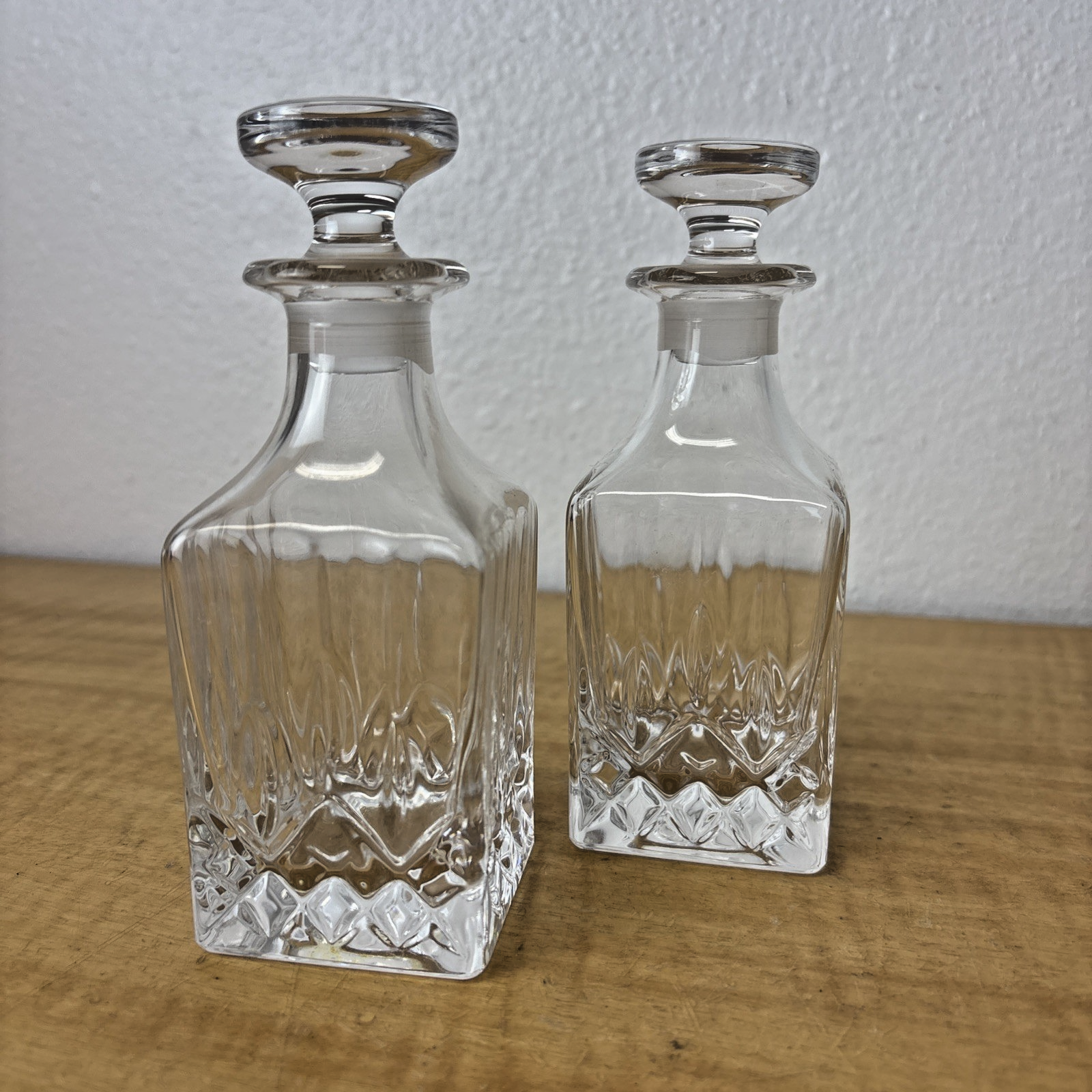 Vintage Clear Glass Travel Liquor Bottle / Decanter with Stopper Set of 2