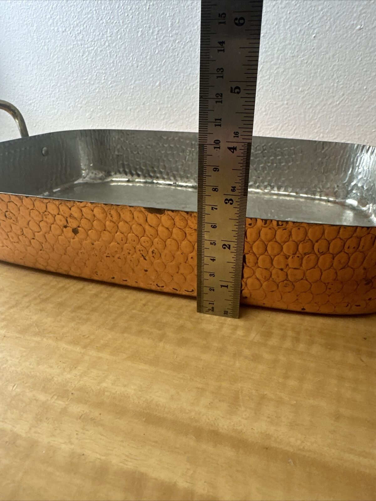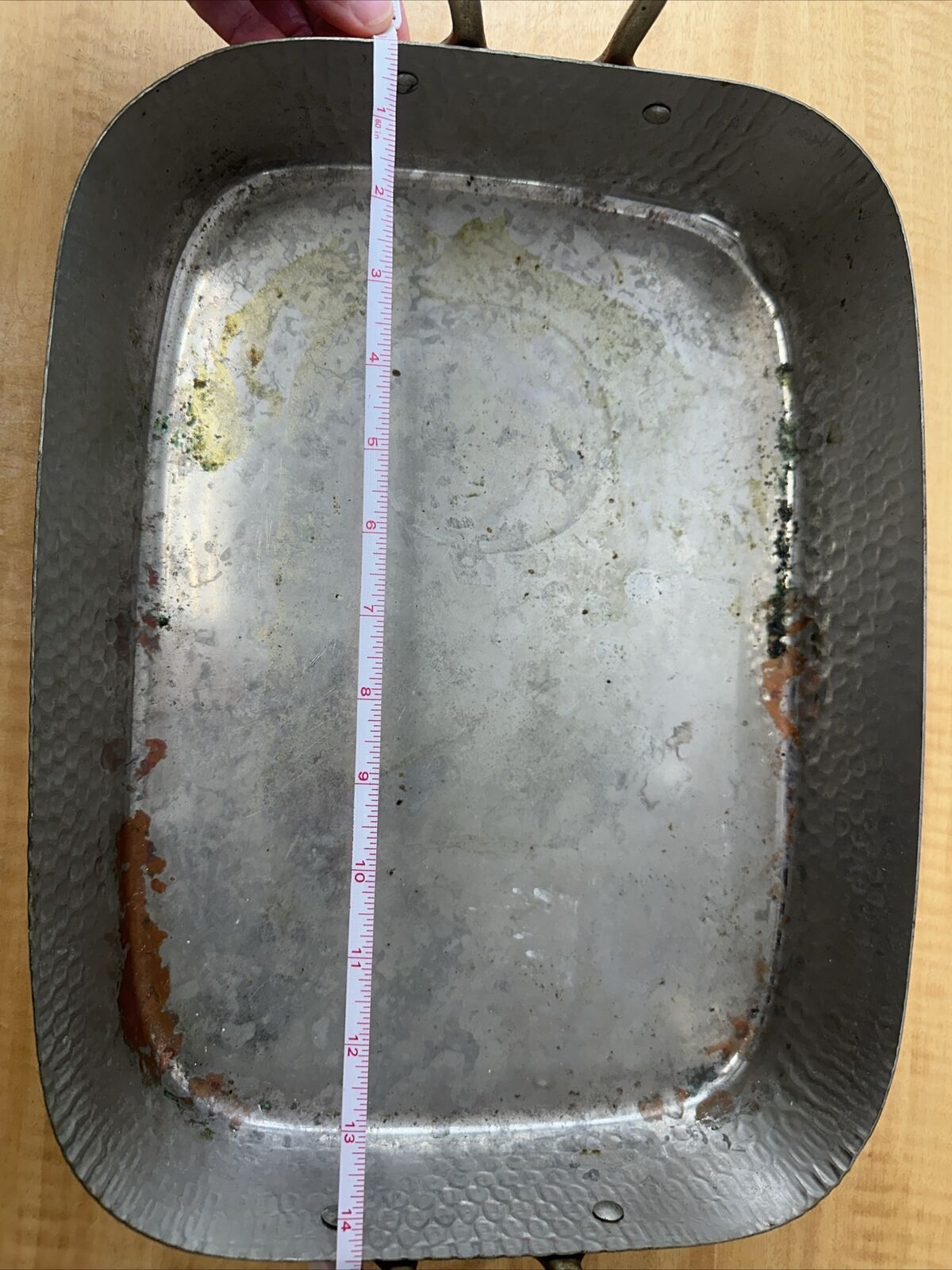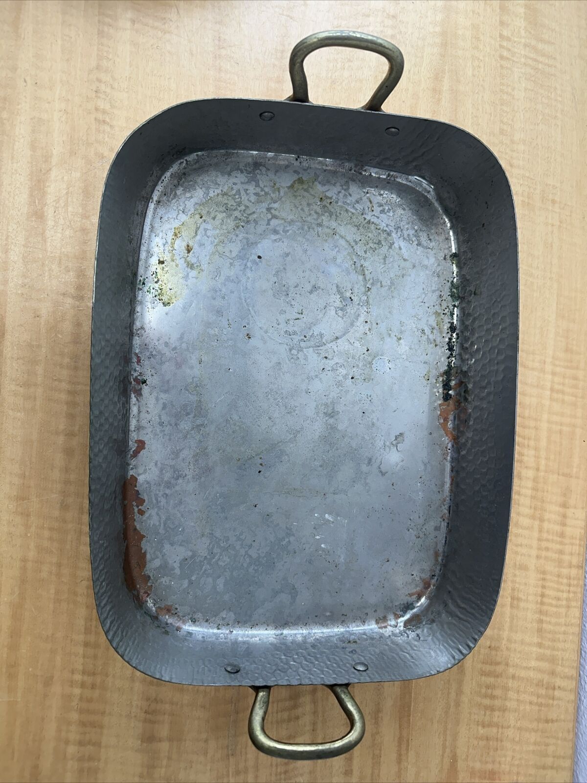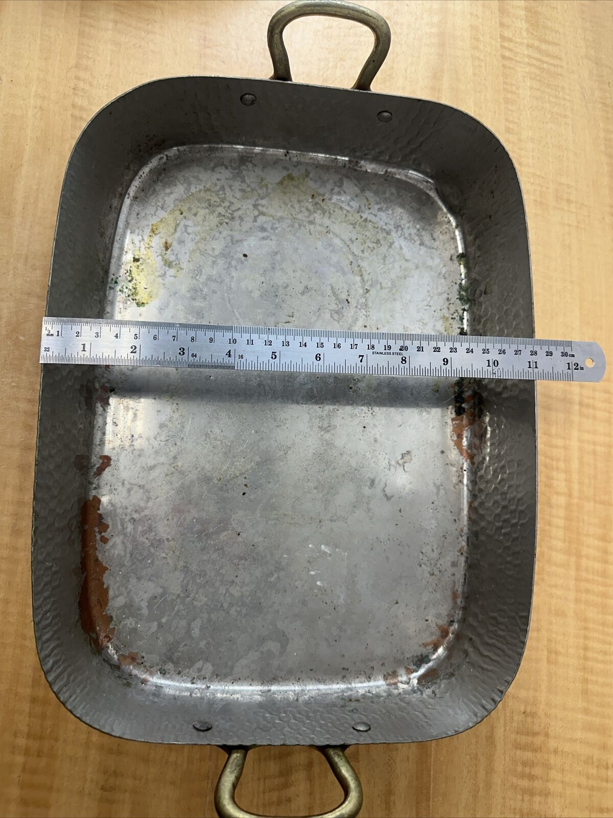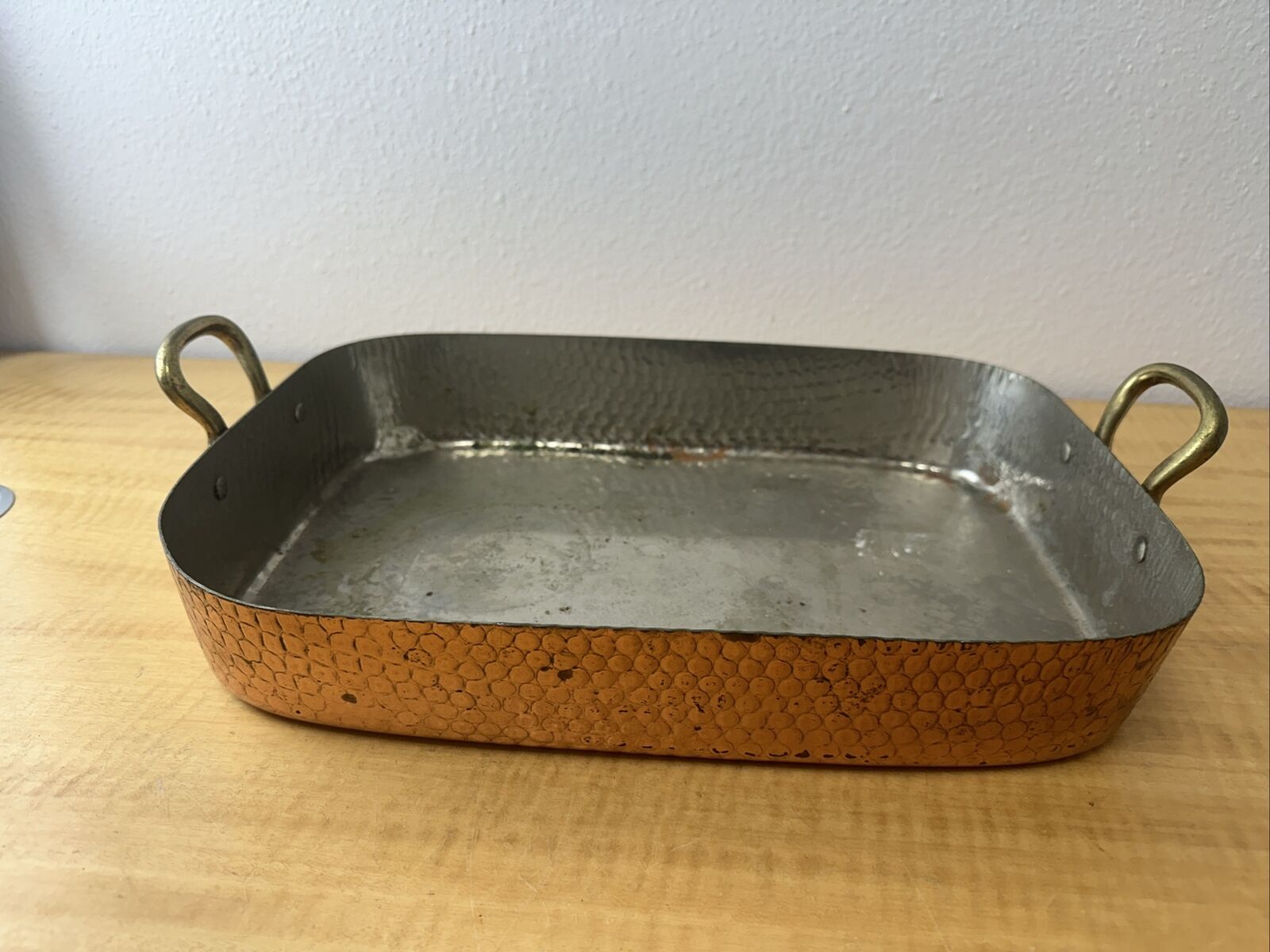 Vintage Copper Roasting Pan with Brass Handles – 14″ x 11″x 2.75″