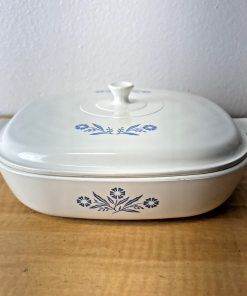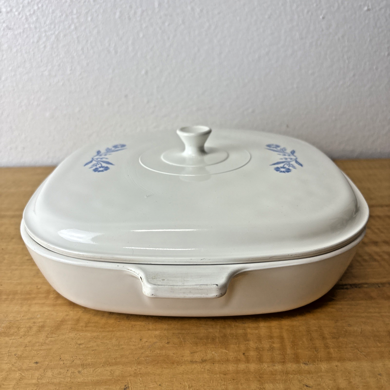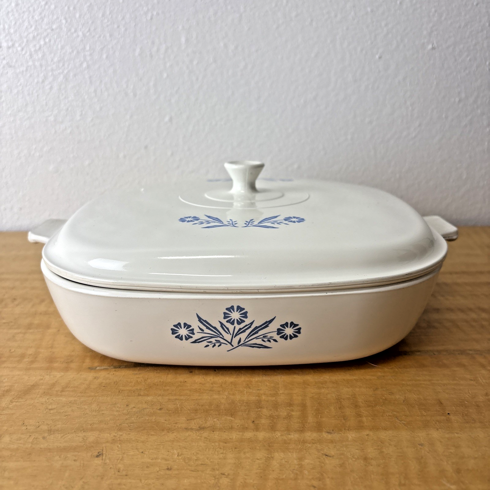 Vintage Corning Ware BLUE CORNFLOWER CASSEROLE Skillet w Pyroceram Lid USA
