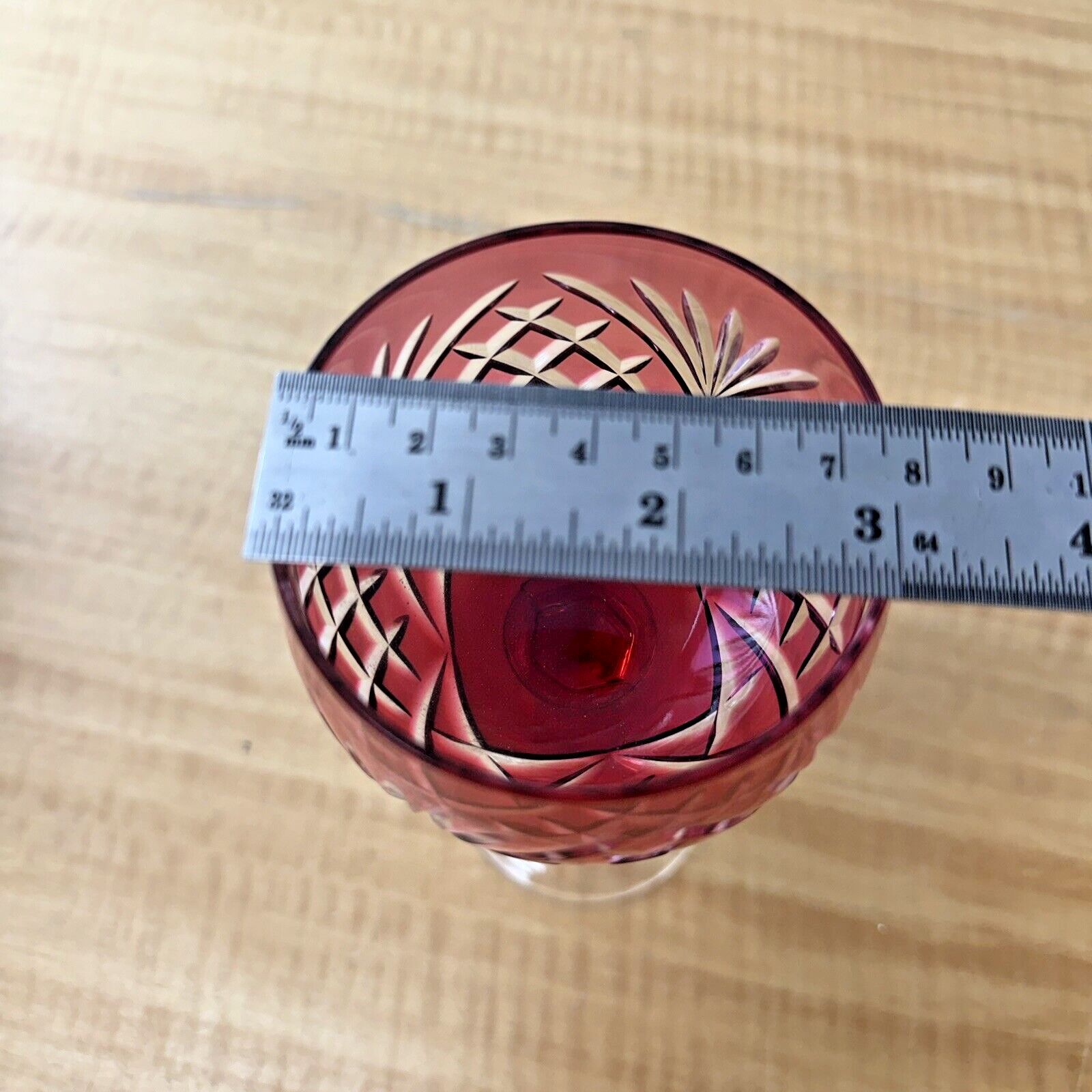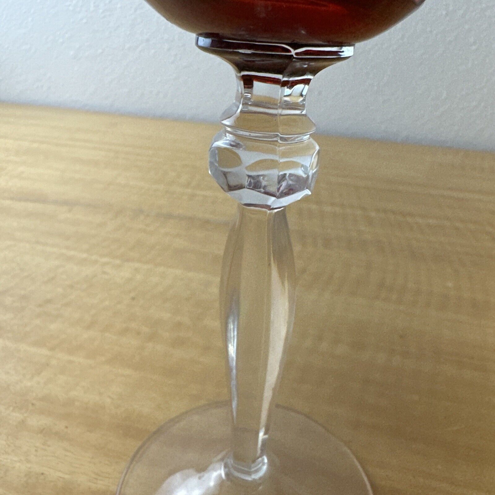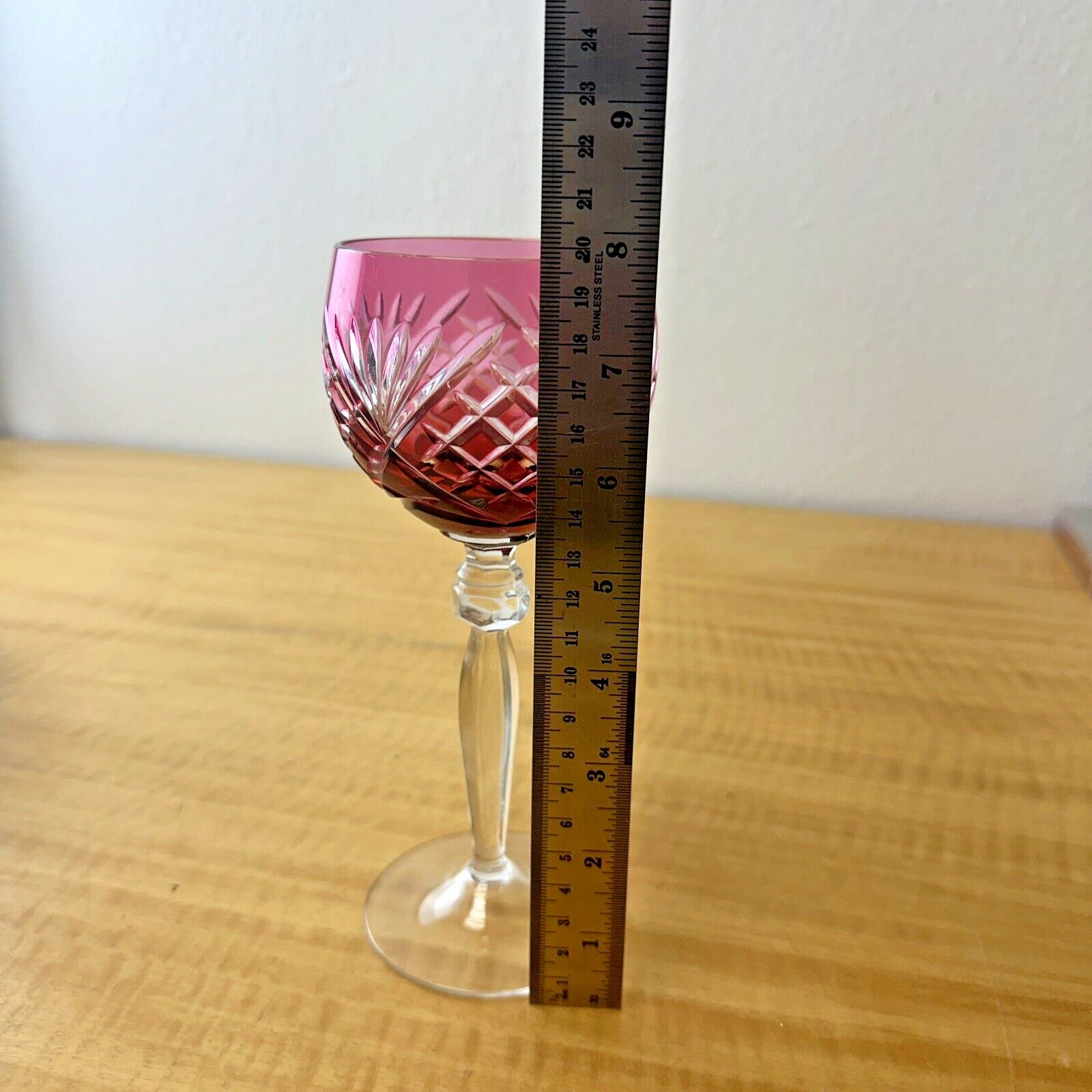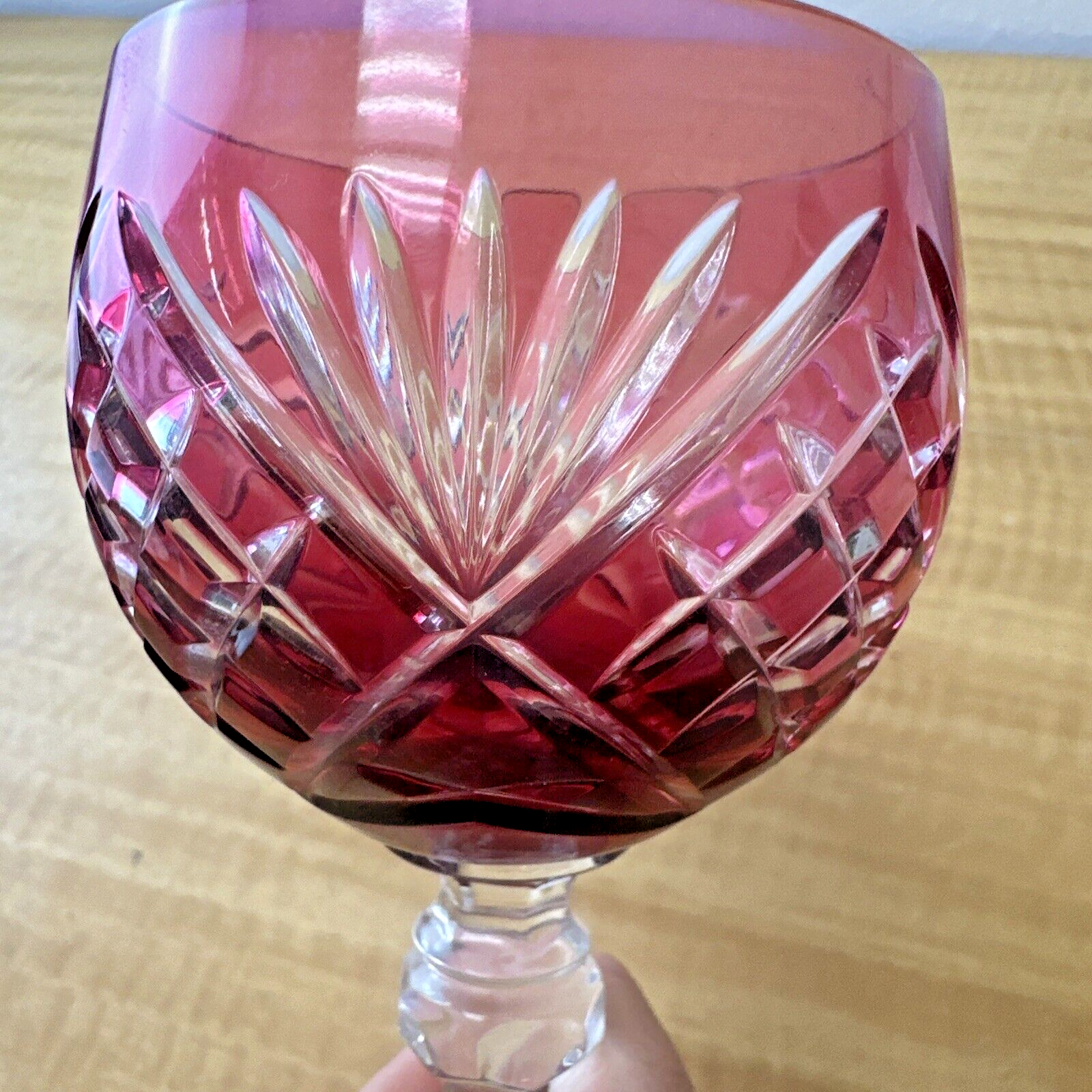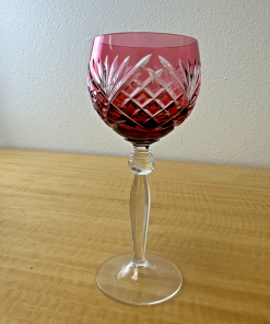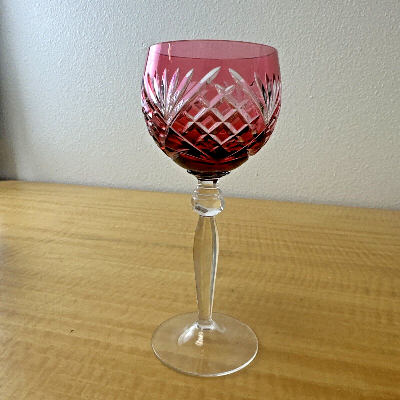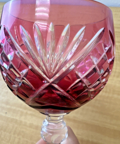 Vintage CRANBERRY RED PINK Wine Glass Goblet Hock Cut-To-Clear