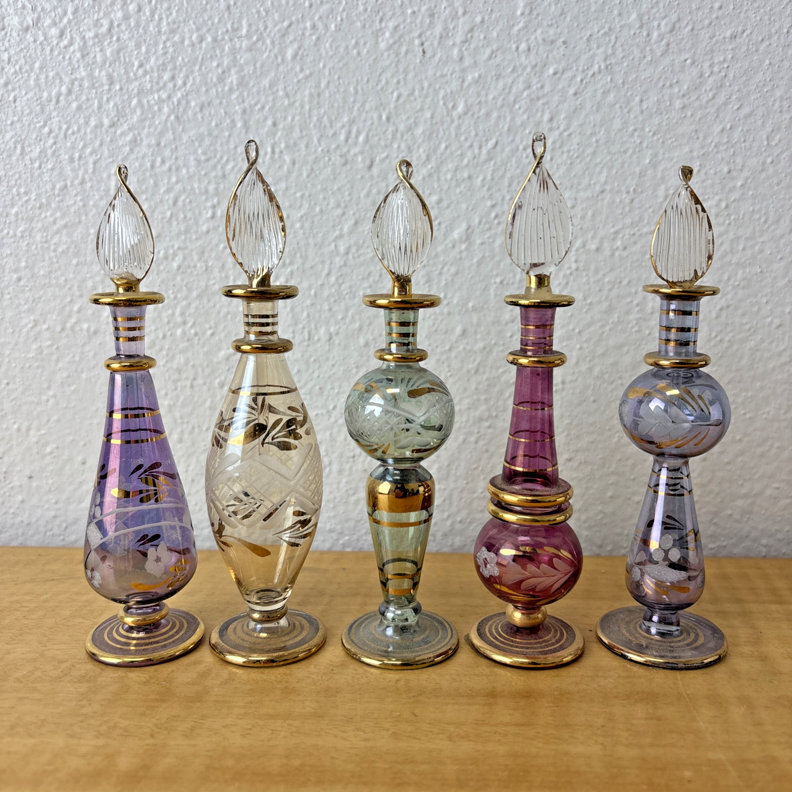 VINTAGE CRYSTAL PERFUME BOTTLES SET OF 5