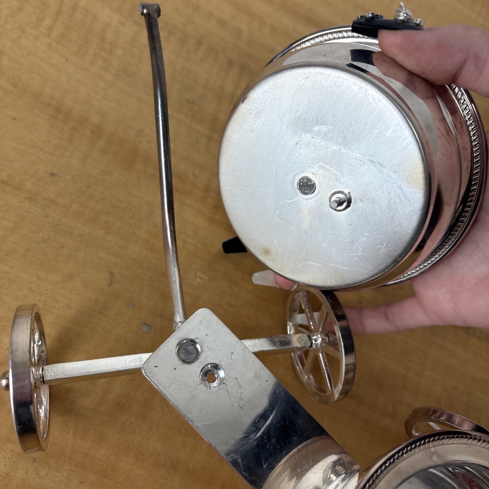 Condition Description: See images, ask questions. One of the bowls is missing a screw and the handle is broken and seems to be repaired and glued back on.
