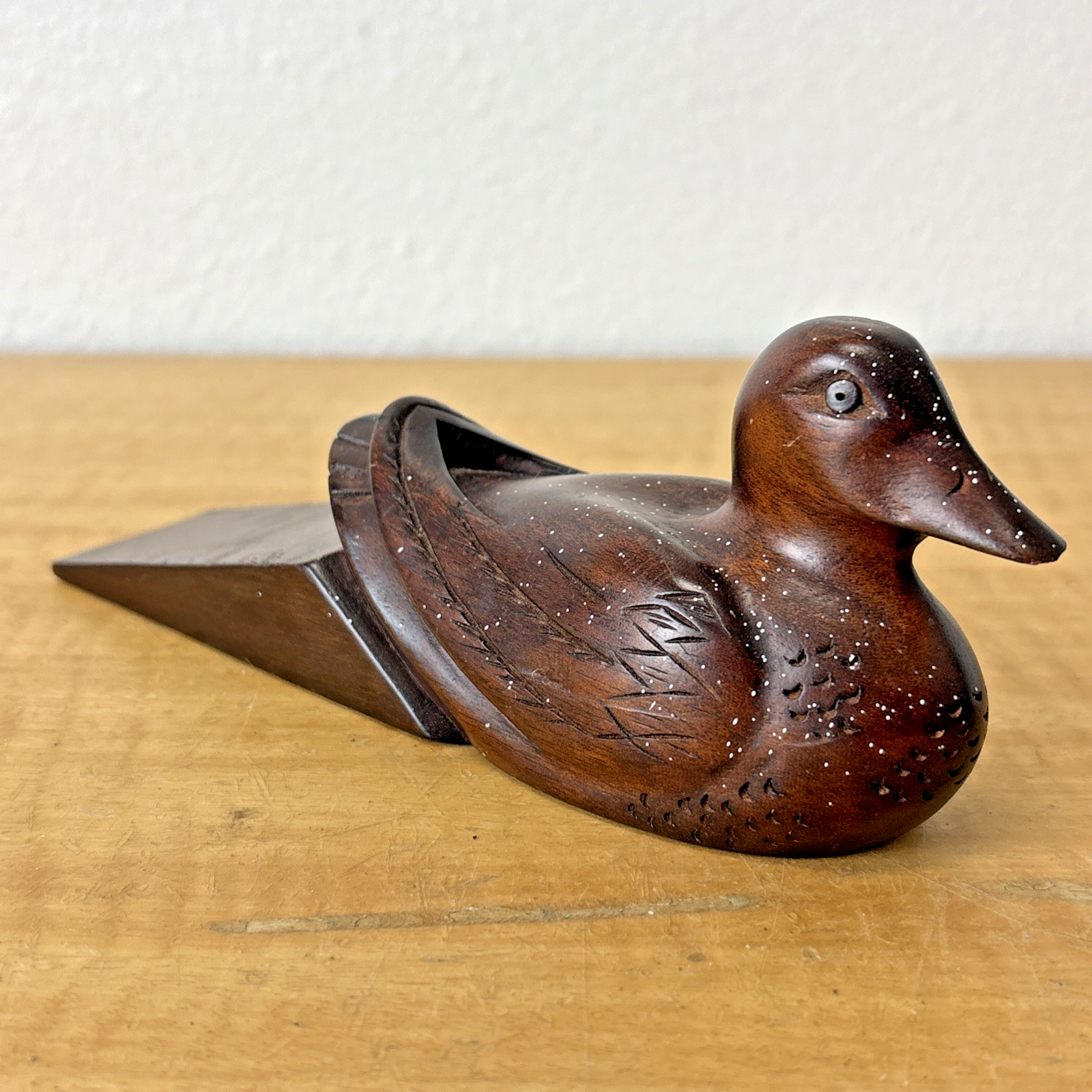 Vintage Froelich Wooden Duck Door Stop Hand Crafted Mahogany Wood