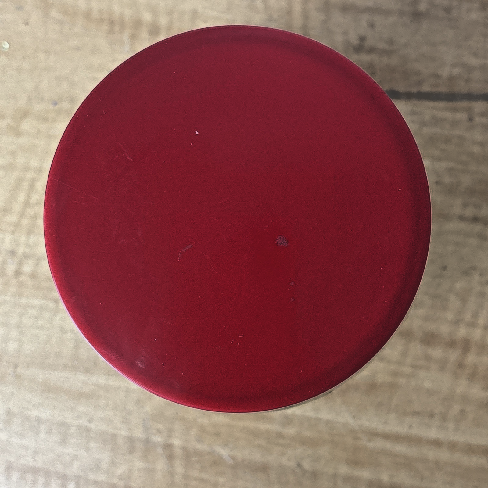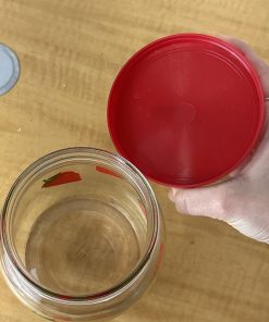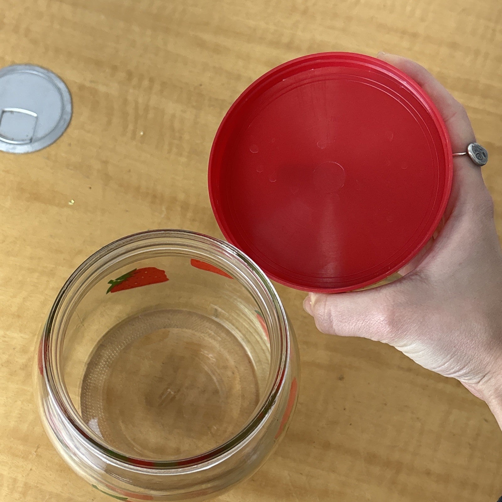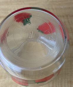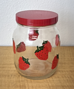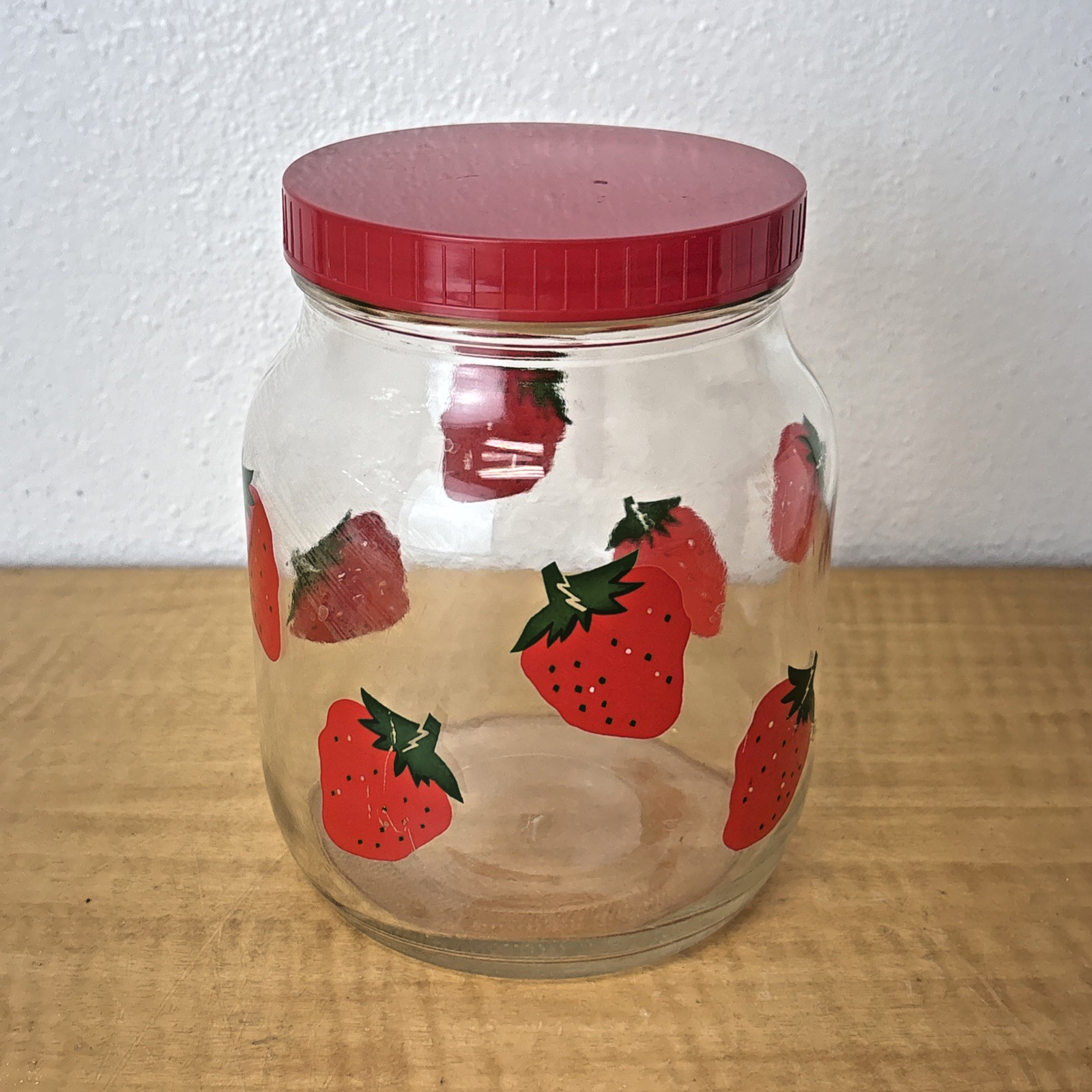 Vintage Glass Jar Container Canister w/ Strawberries Red Lid