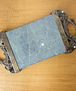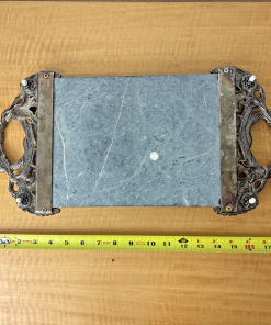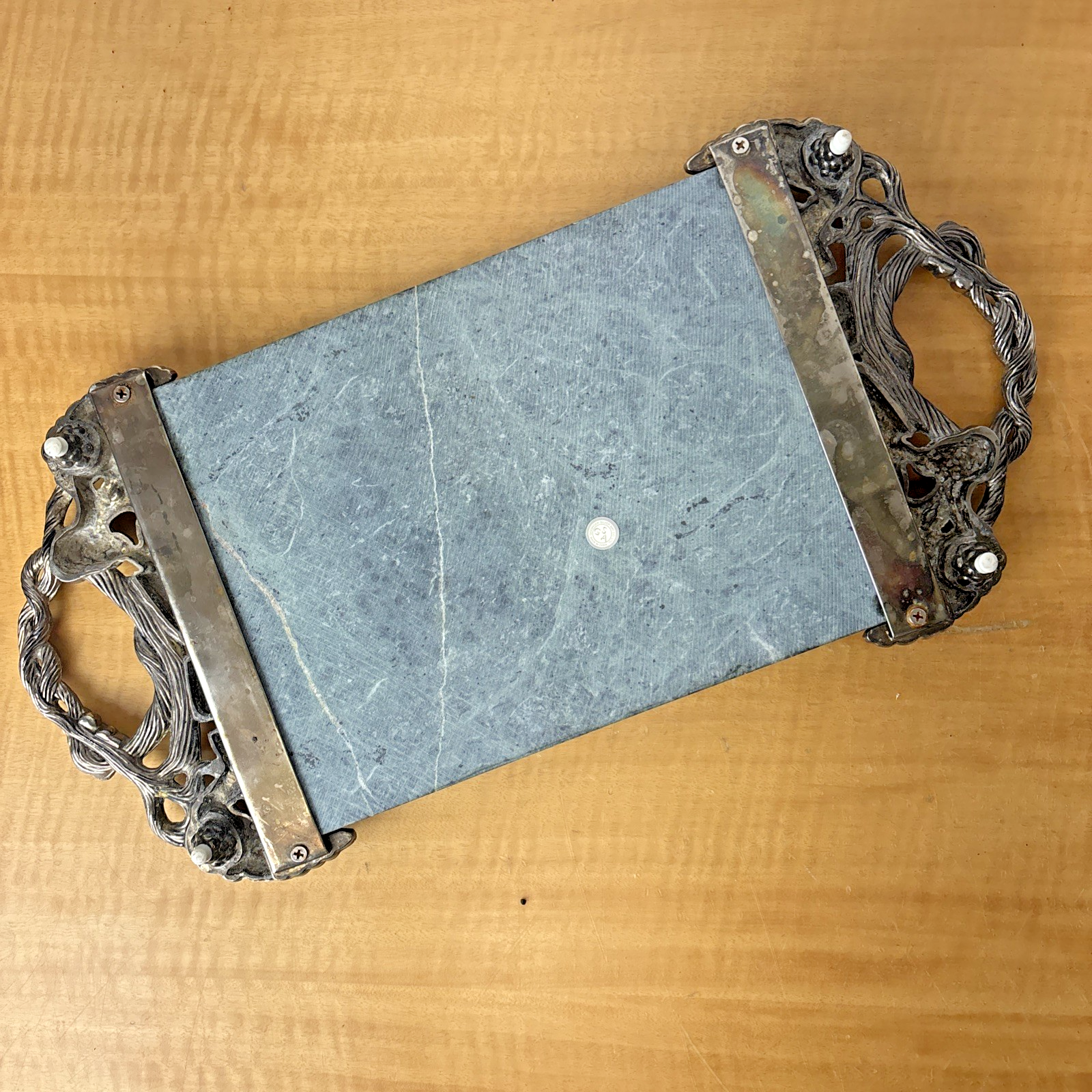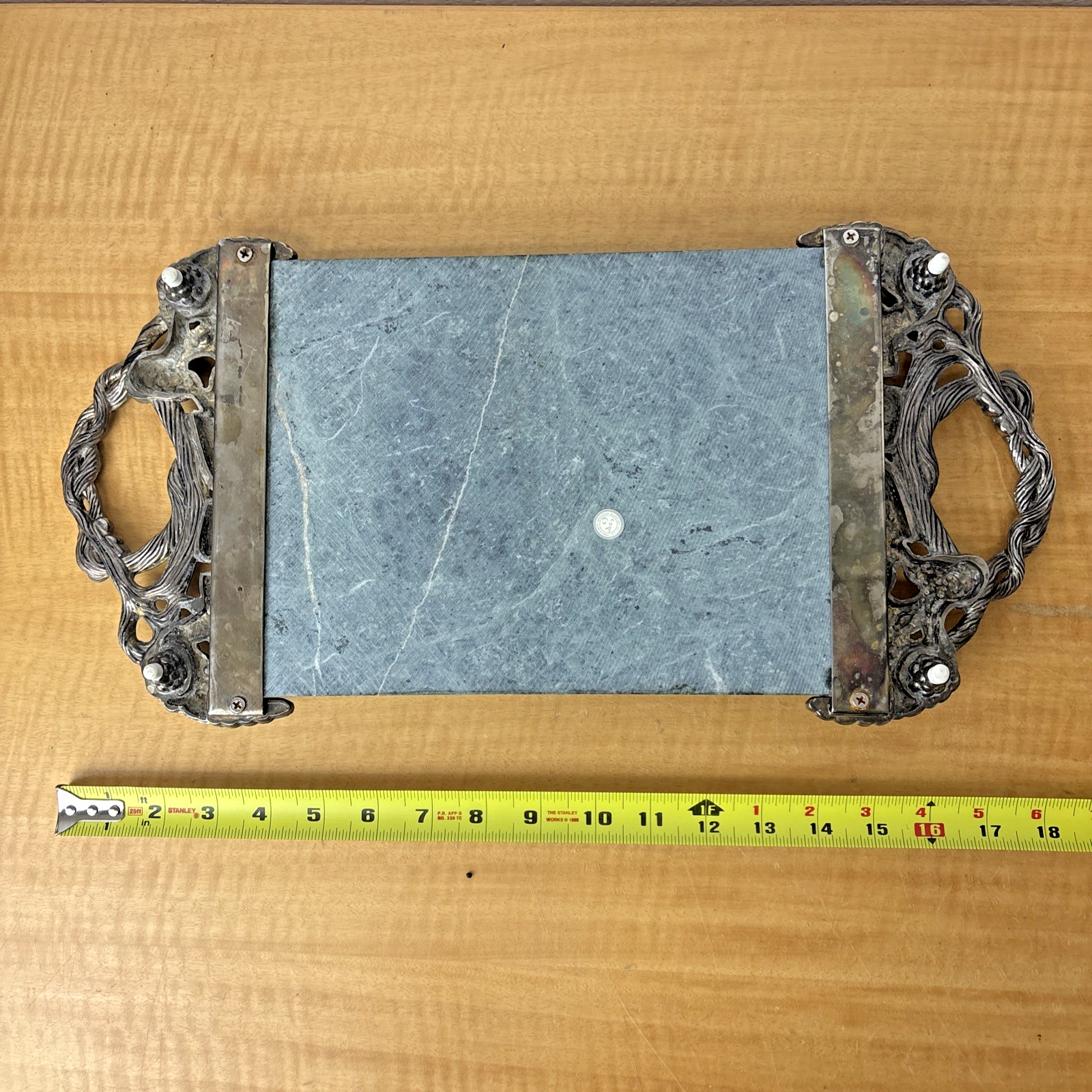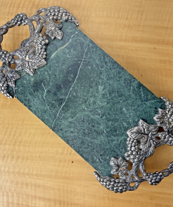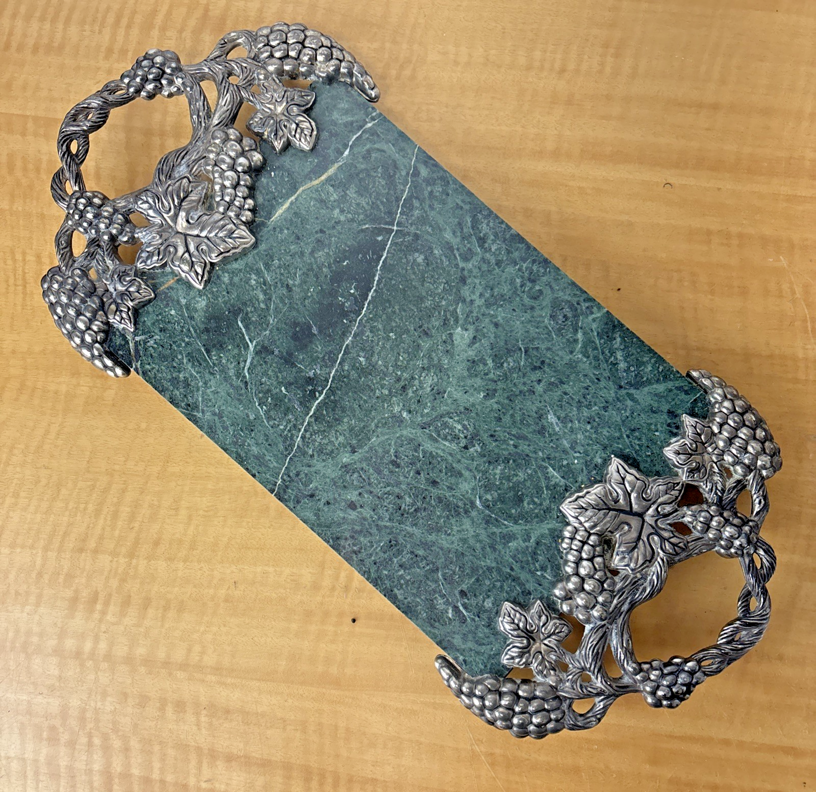 Vintage Godinger Silver Plated Grape & Vine Green marble Serving Tray