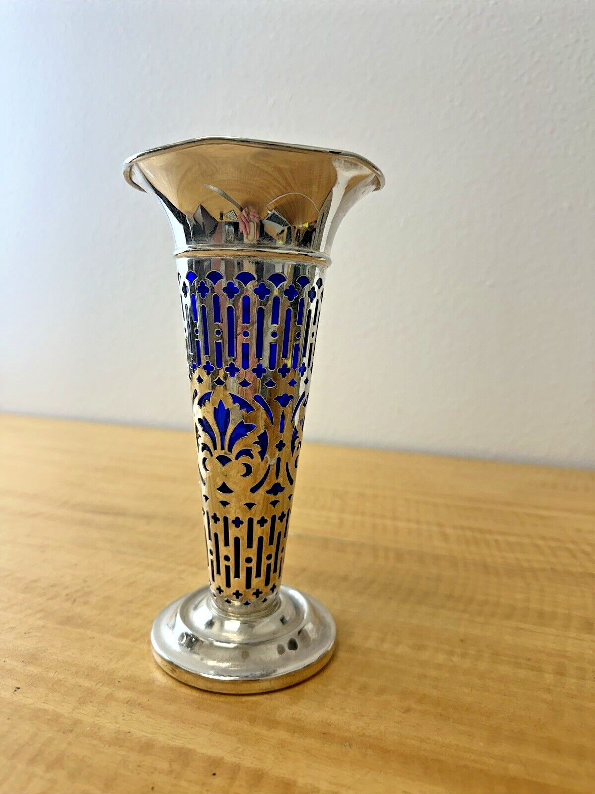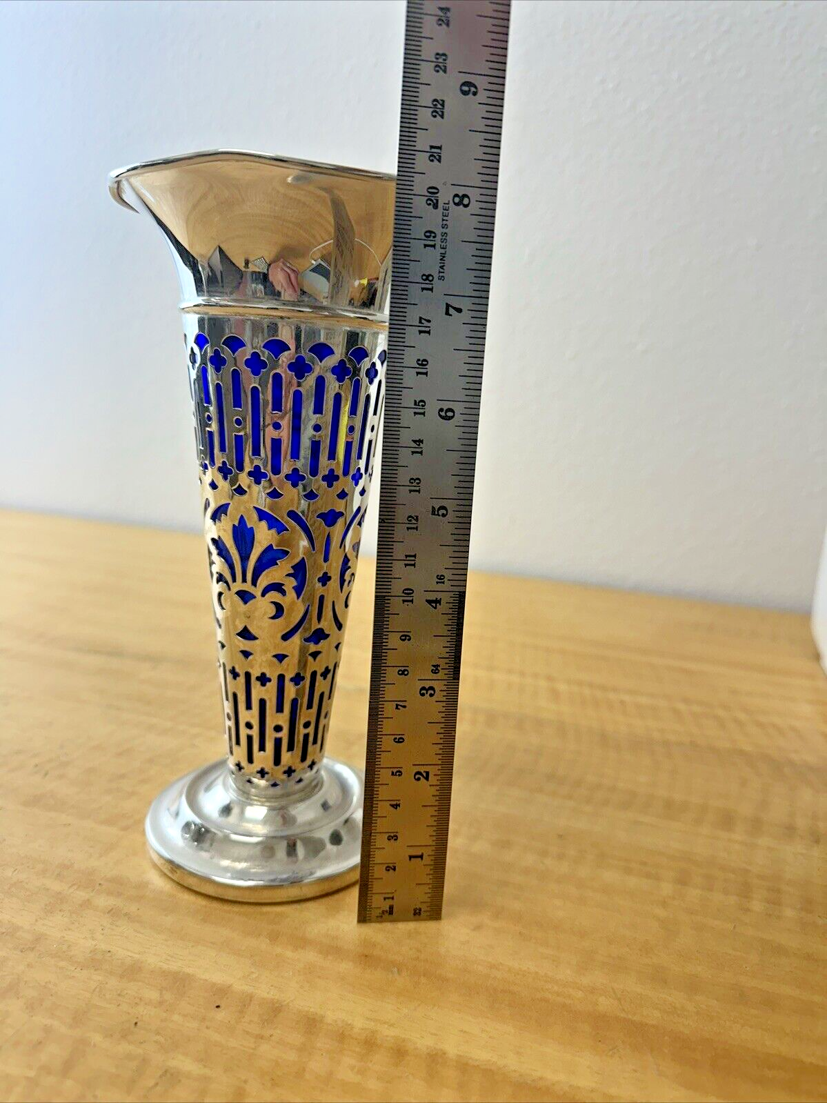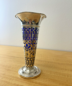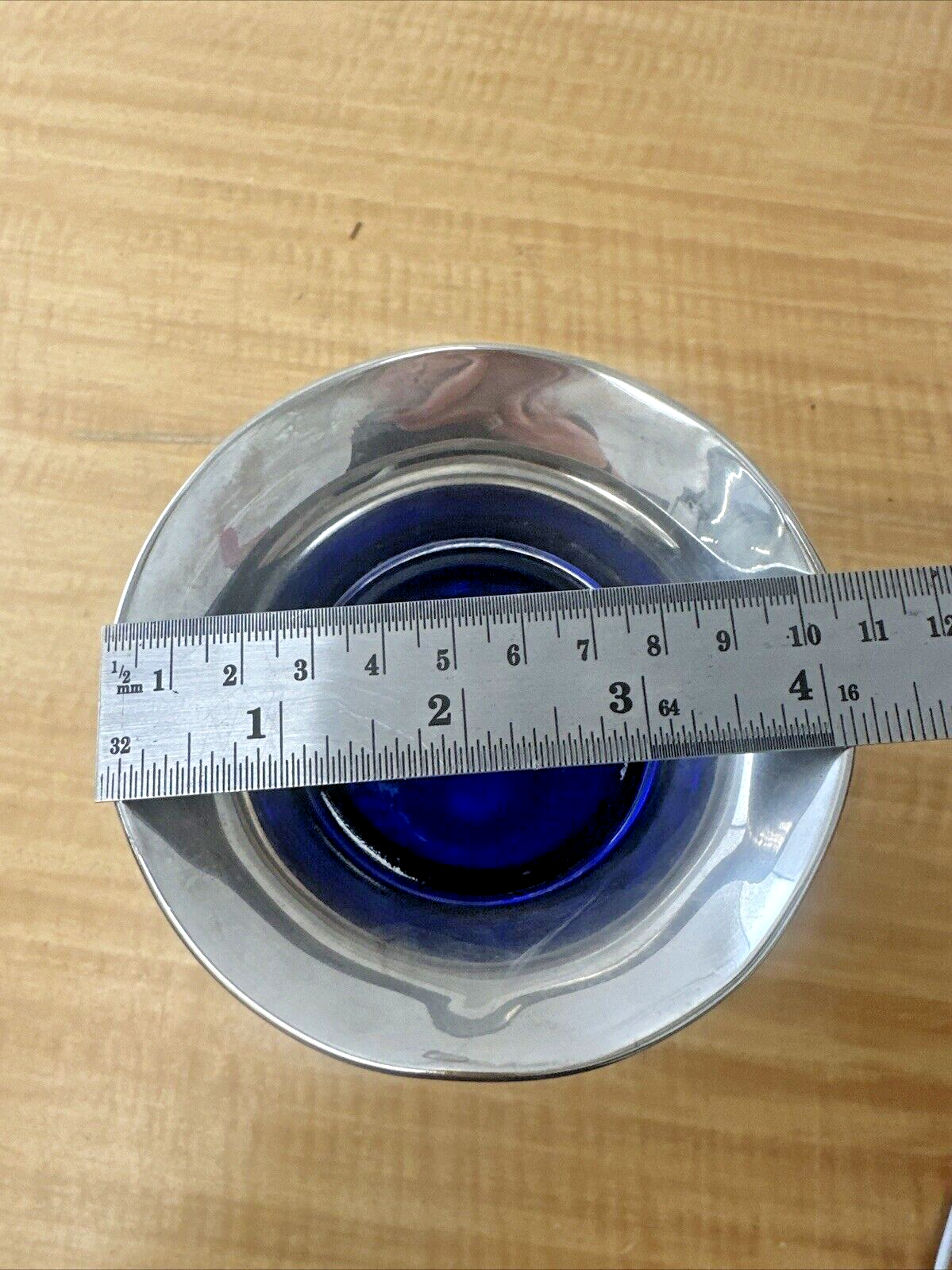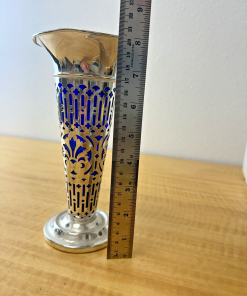 Vintage Godinger Silverplate Vase with Cobalt Blue Glass Insert-8″