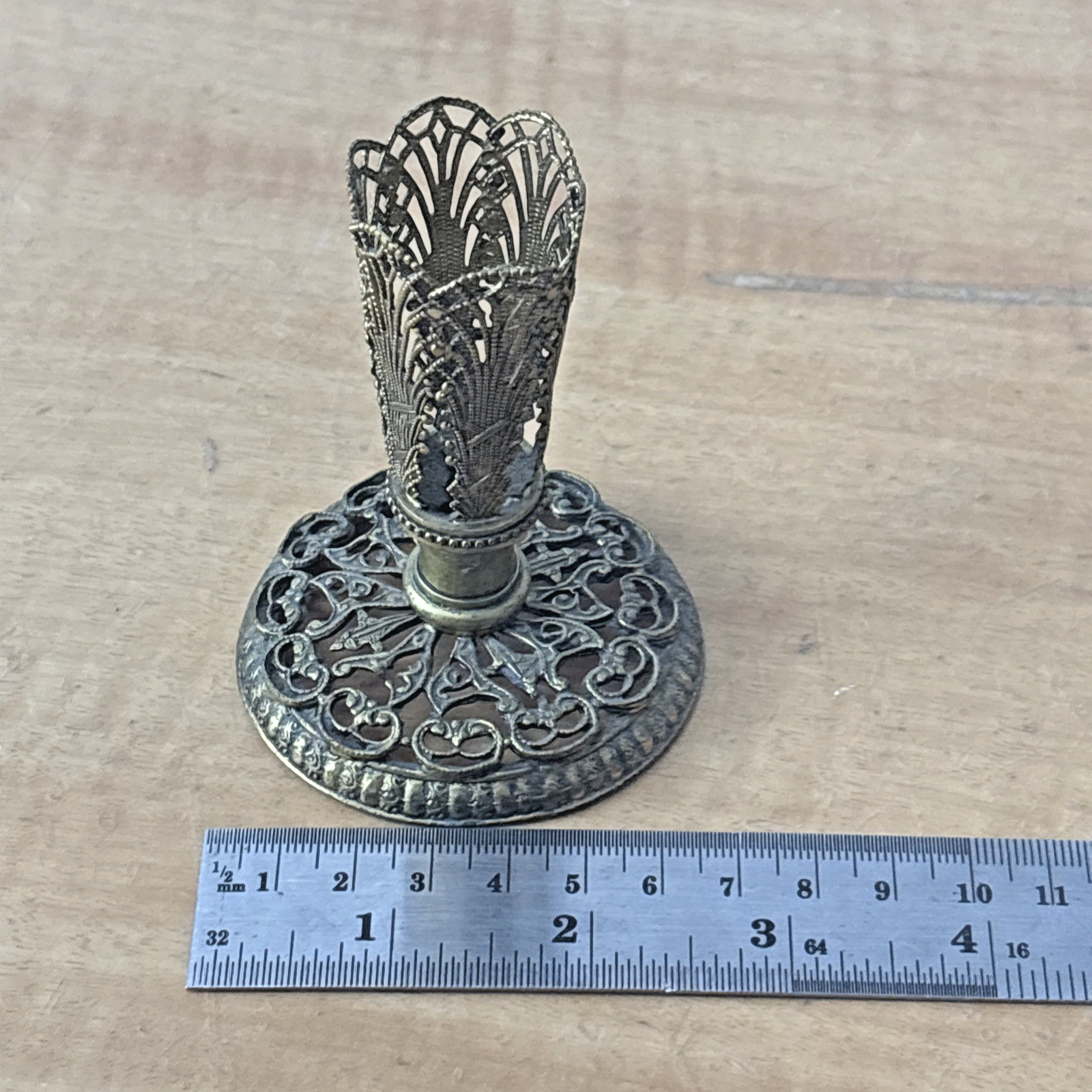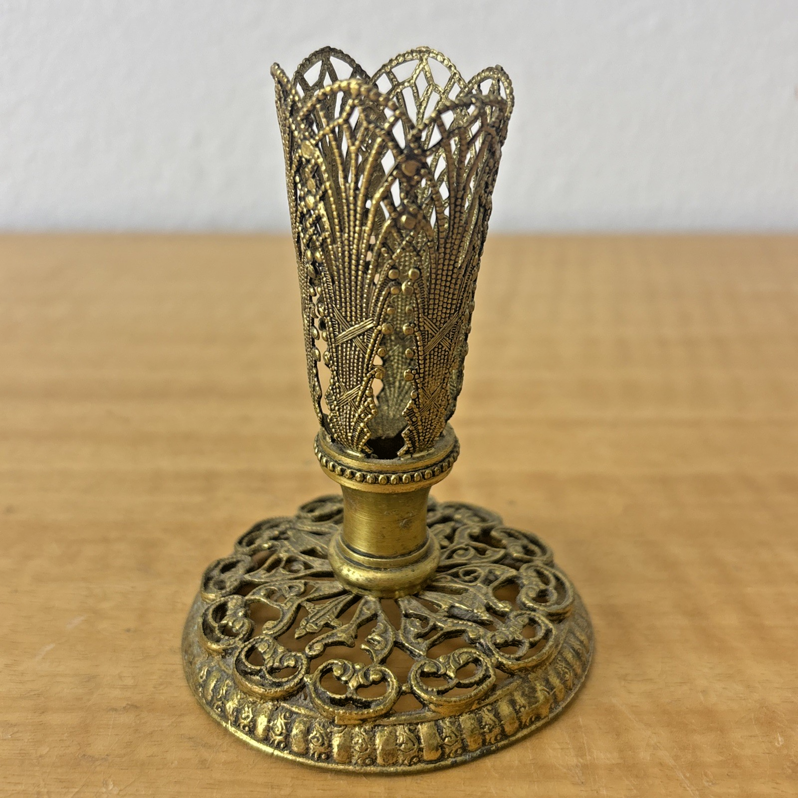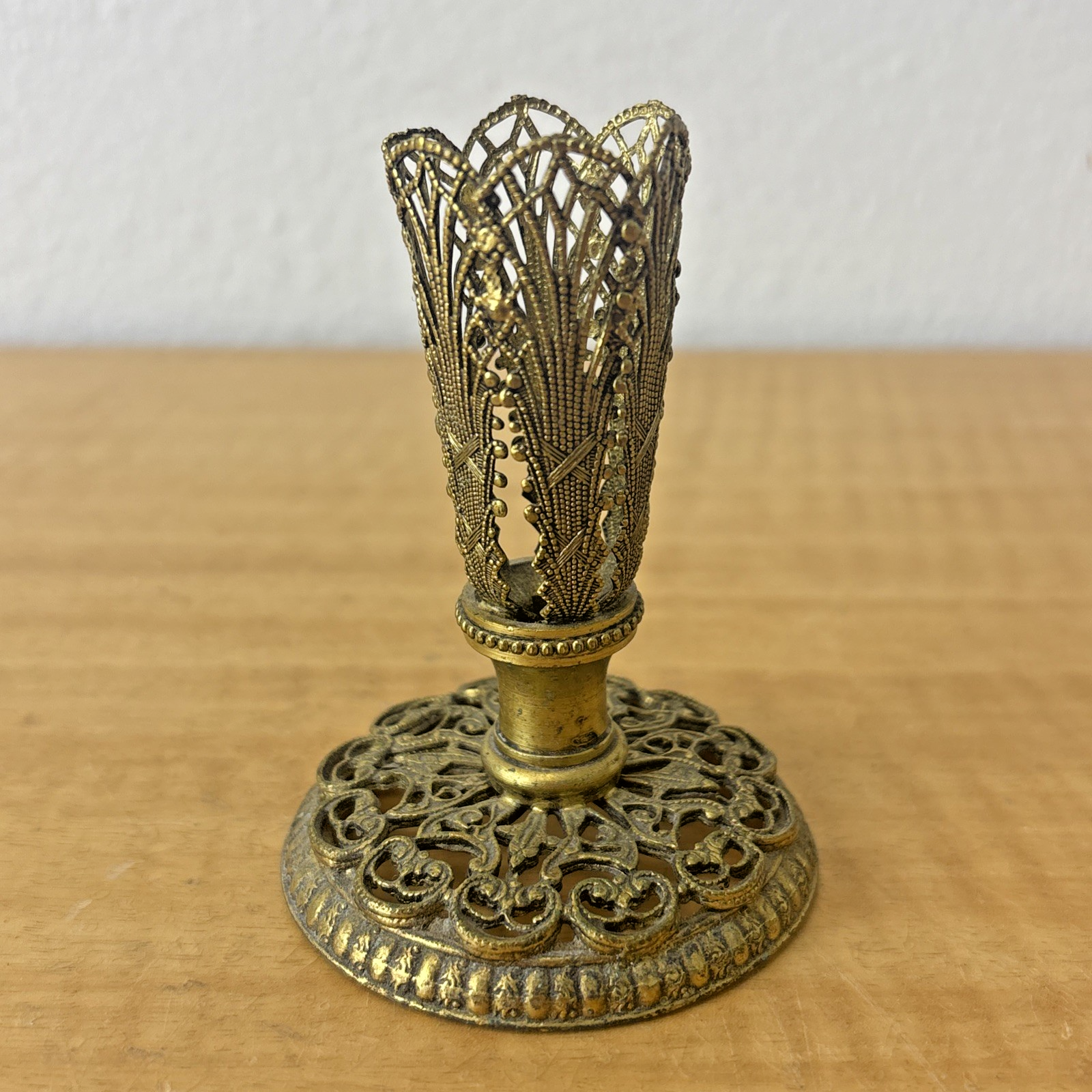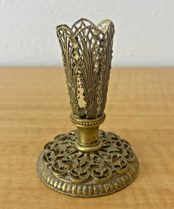 Vintage Gold Filigree Lace Metalwork Candle Holder / Bud Vase