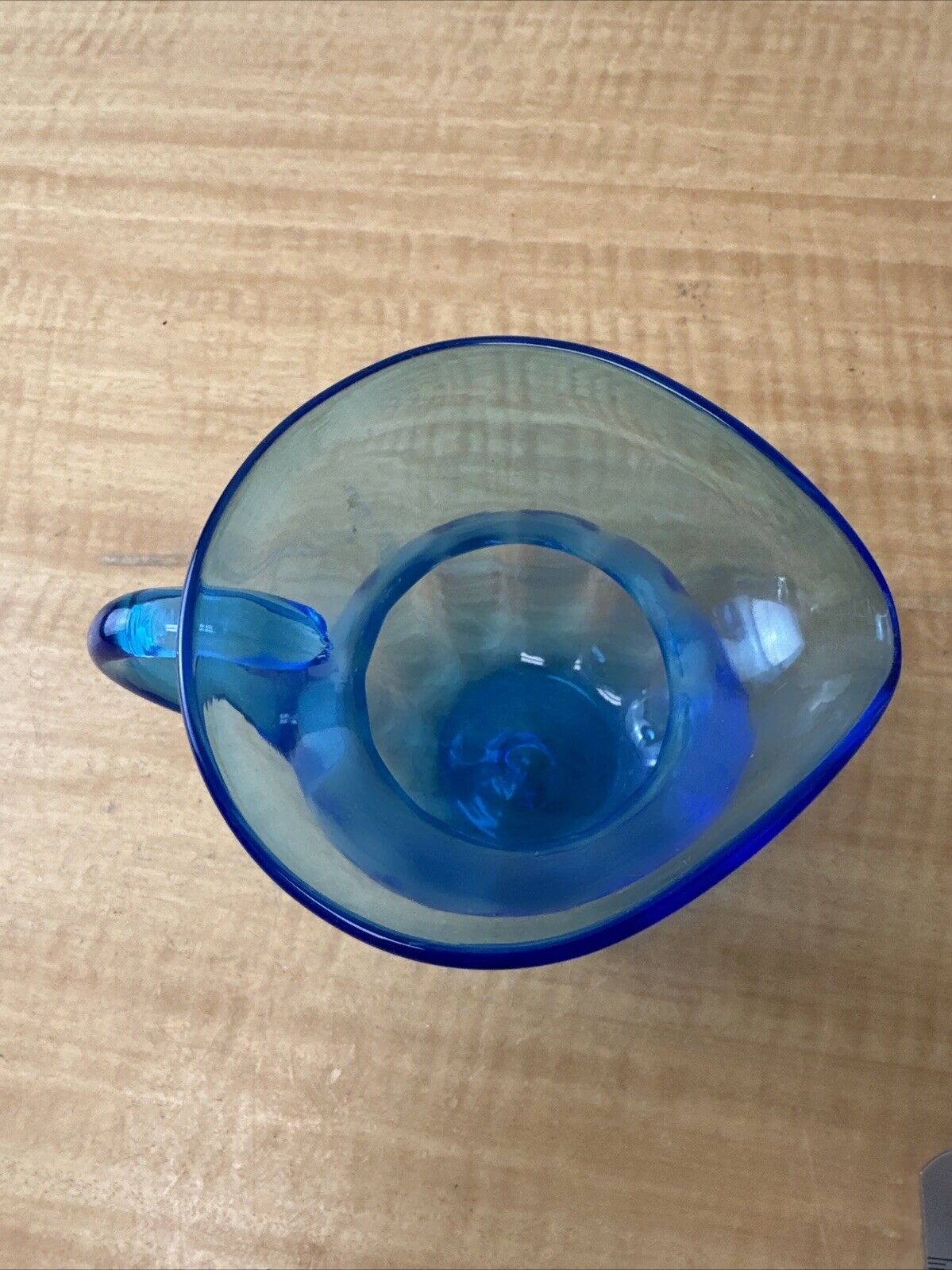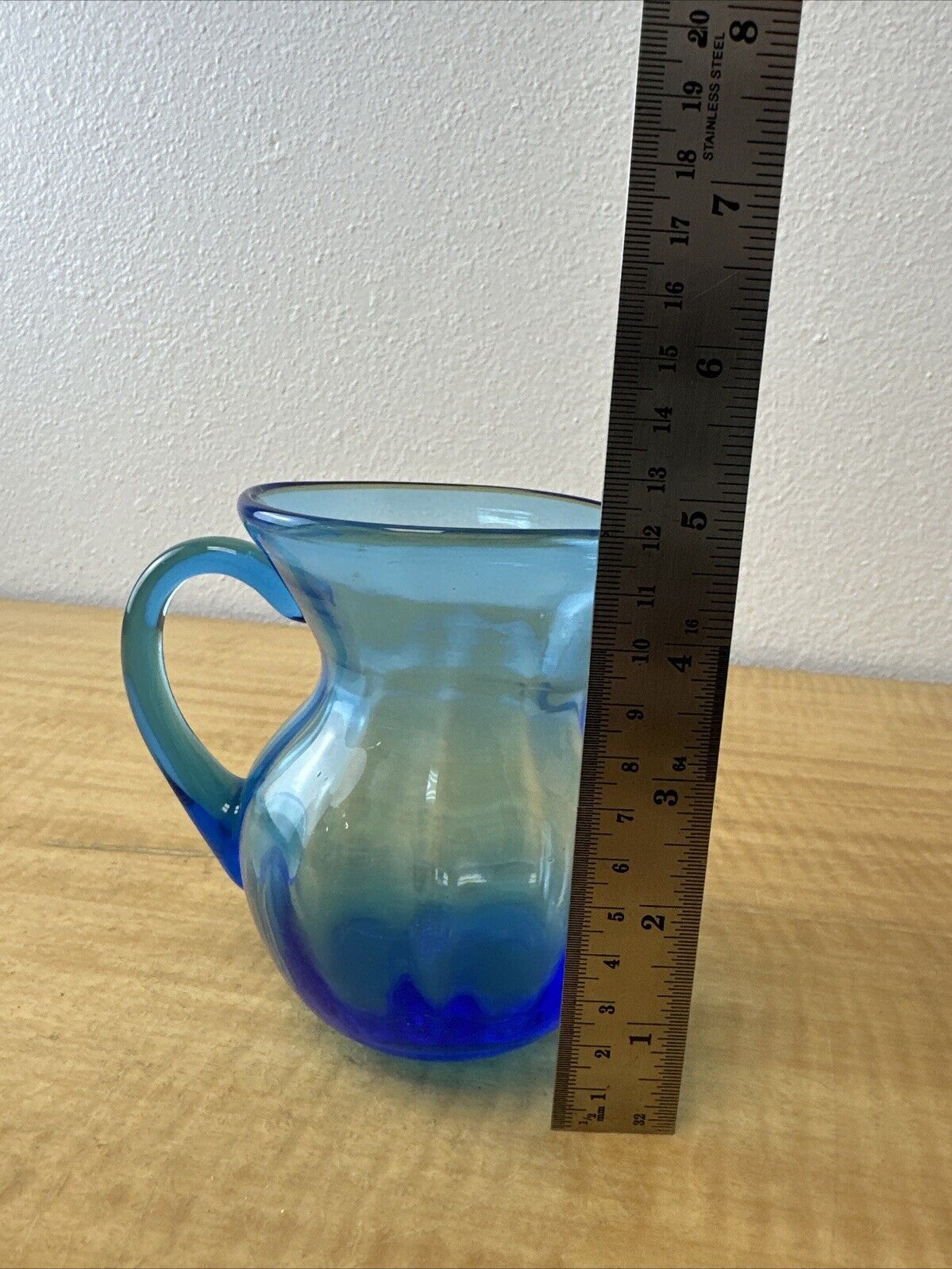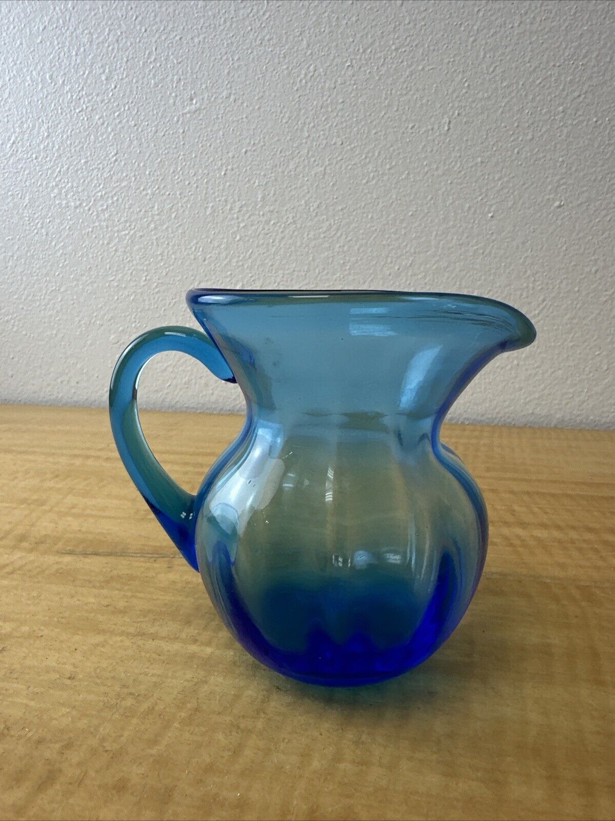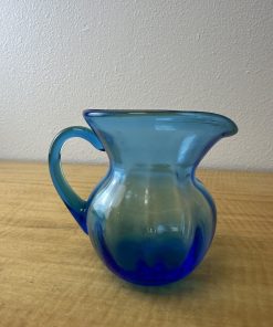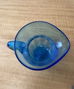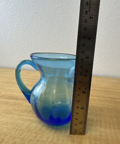 Vintage Hand Blown Blue Glass Pitcher Jug – Art Glass – Applied Handle