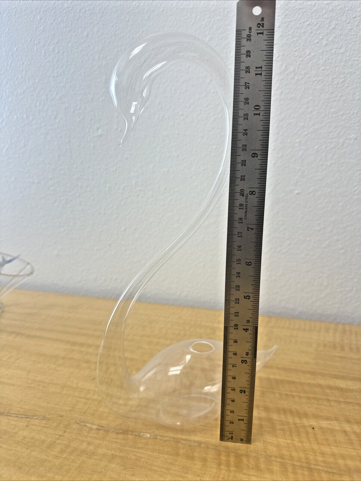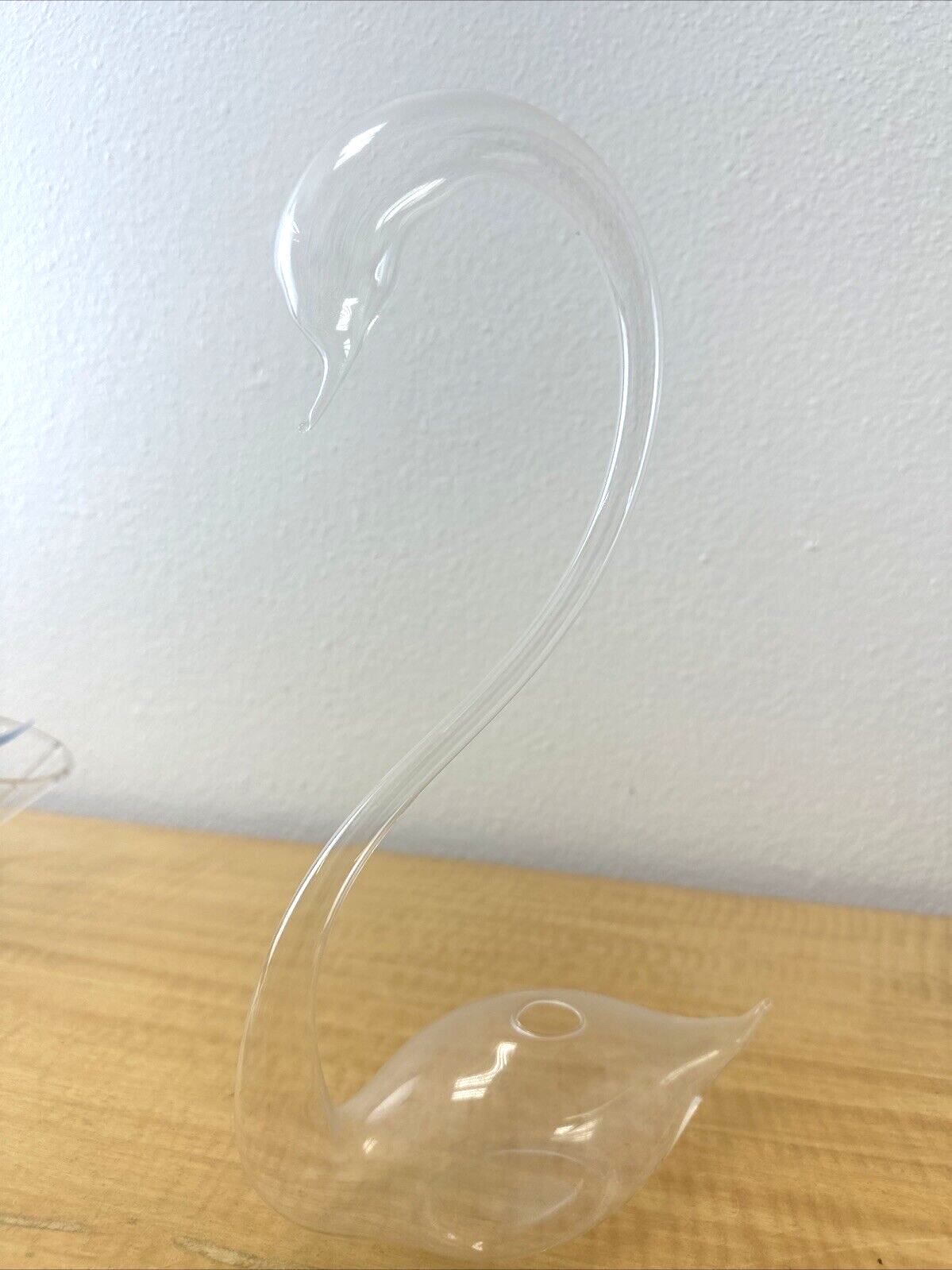 Vintage Hand Blown Clear Glass Swan Bud Vase Hollow Thin Delicate