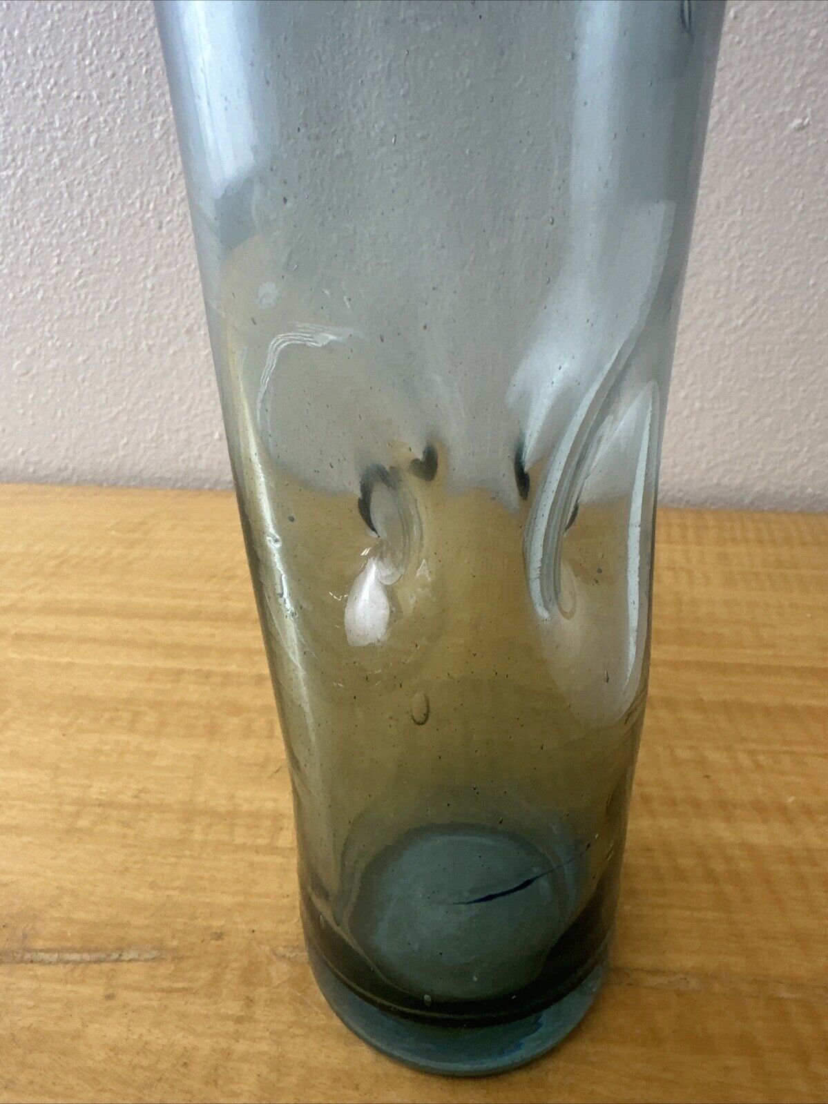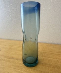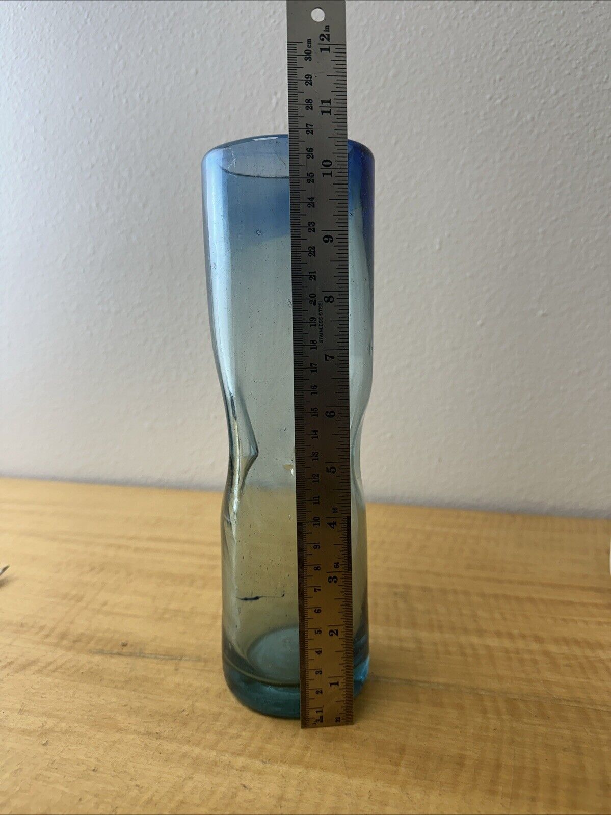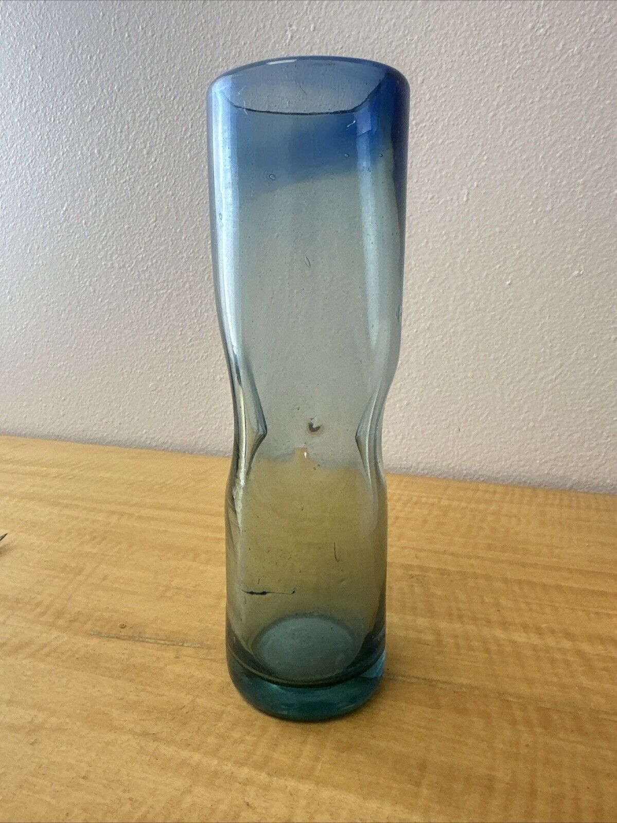 Vintage Hand Blown Gradient Blue Art Glass Vase 10.5×3″