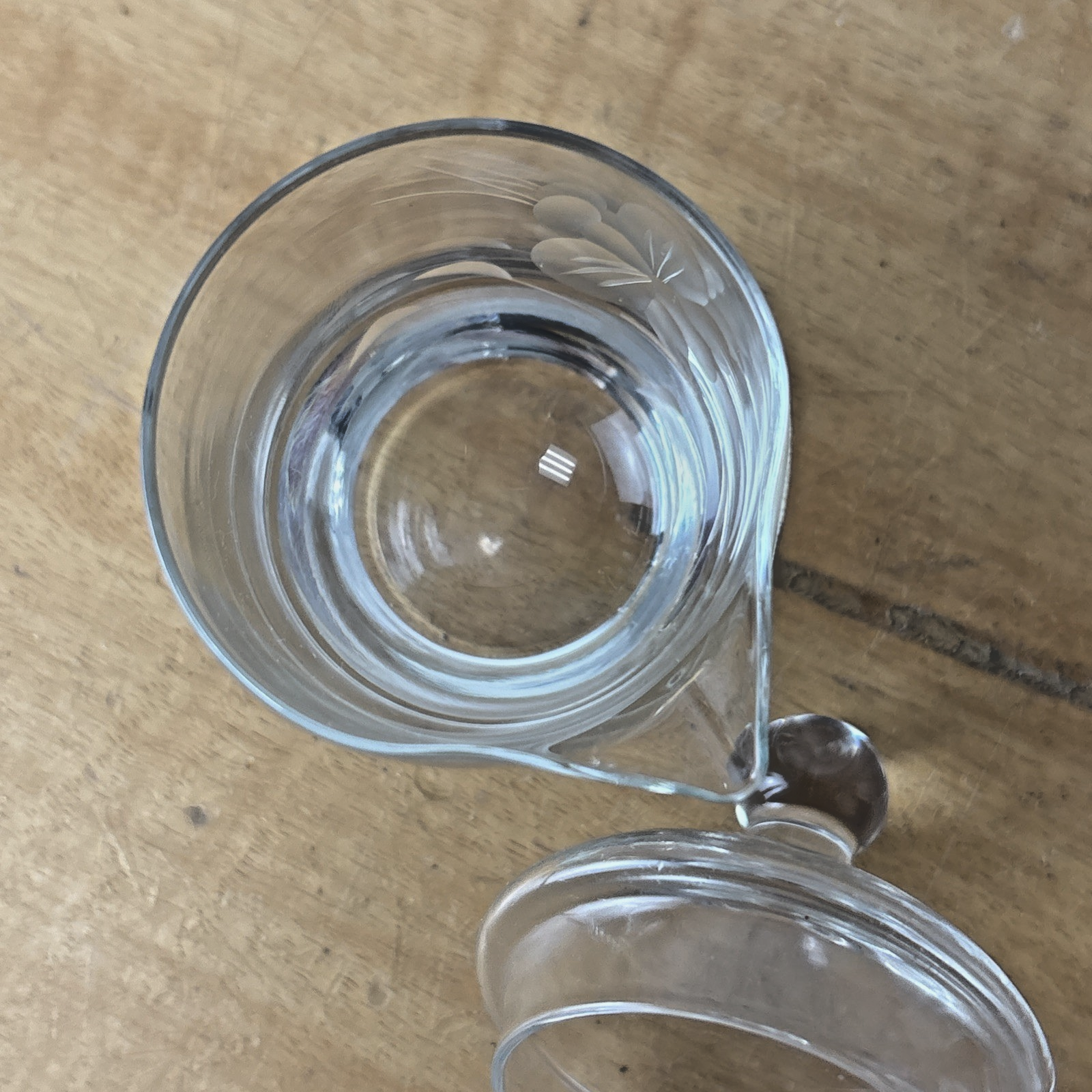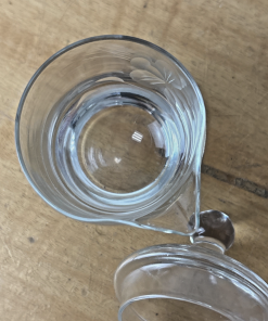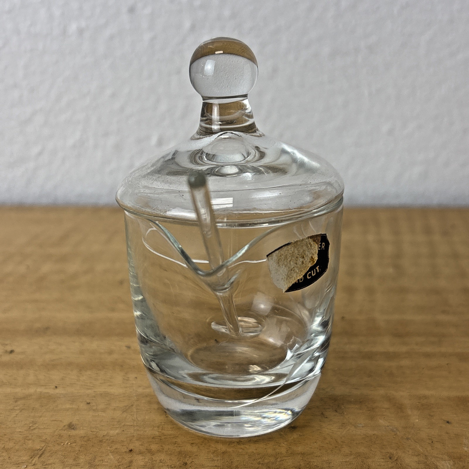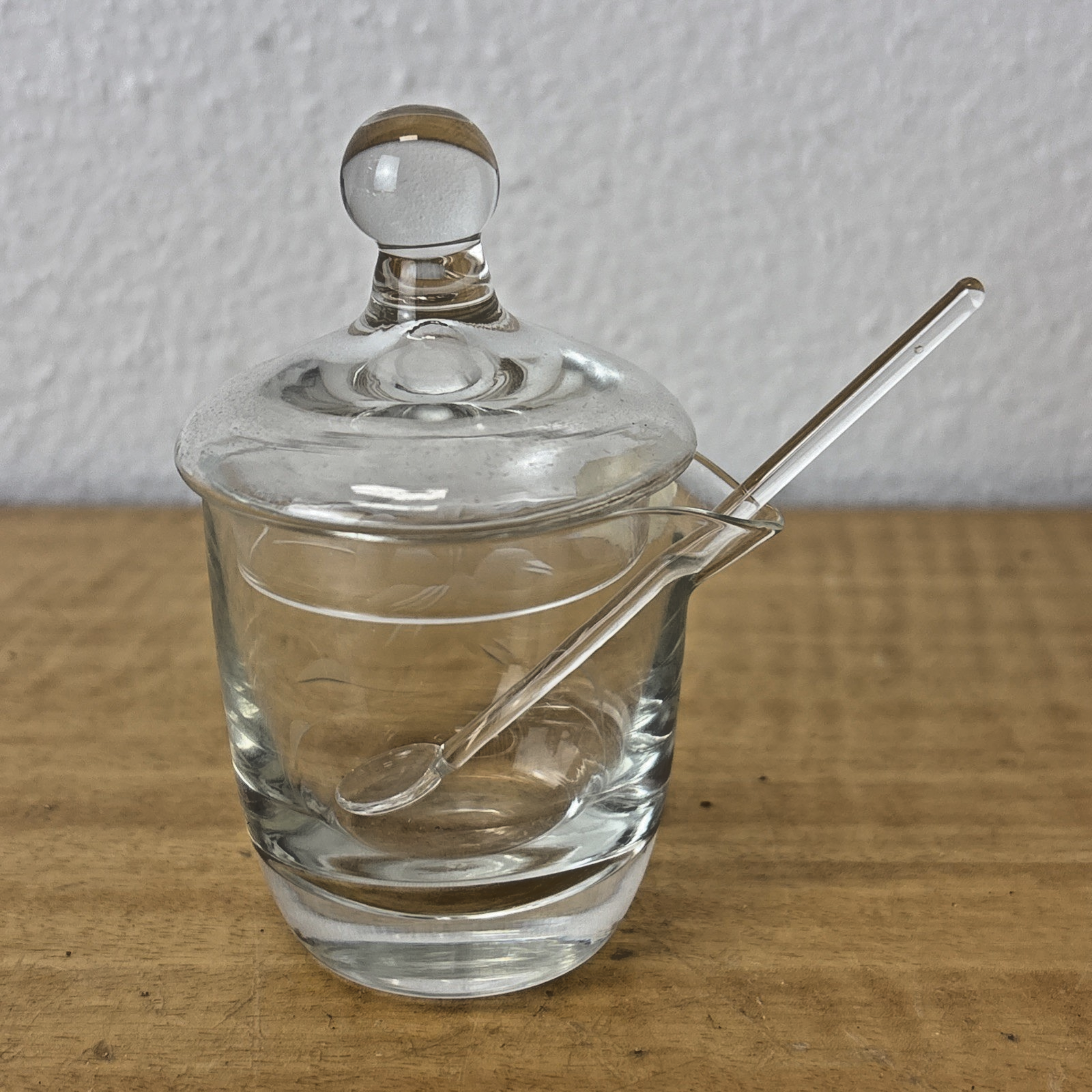 Vintage Hand Cut Glass Jam Jelly Condiment Jar w Spoon Etched Dragonfly