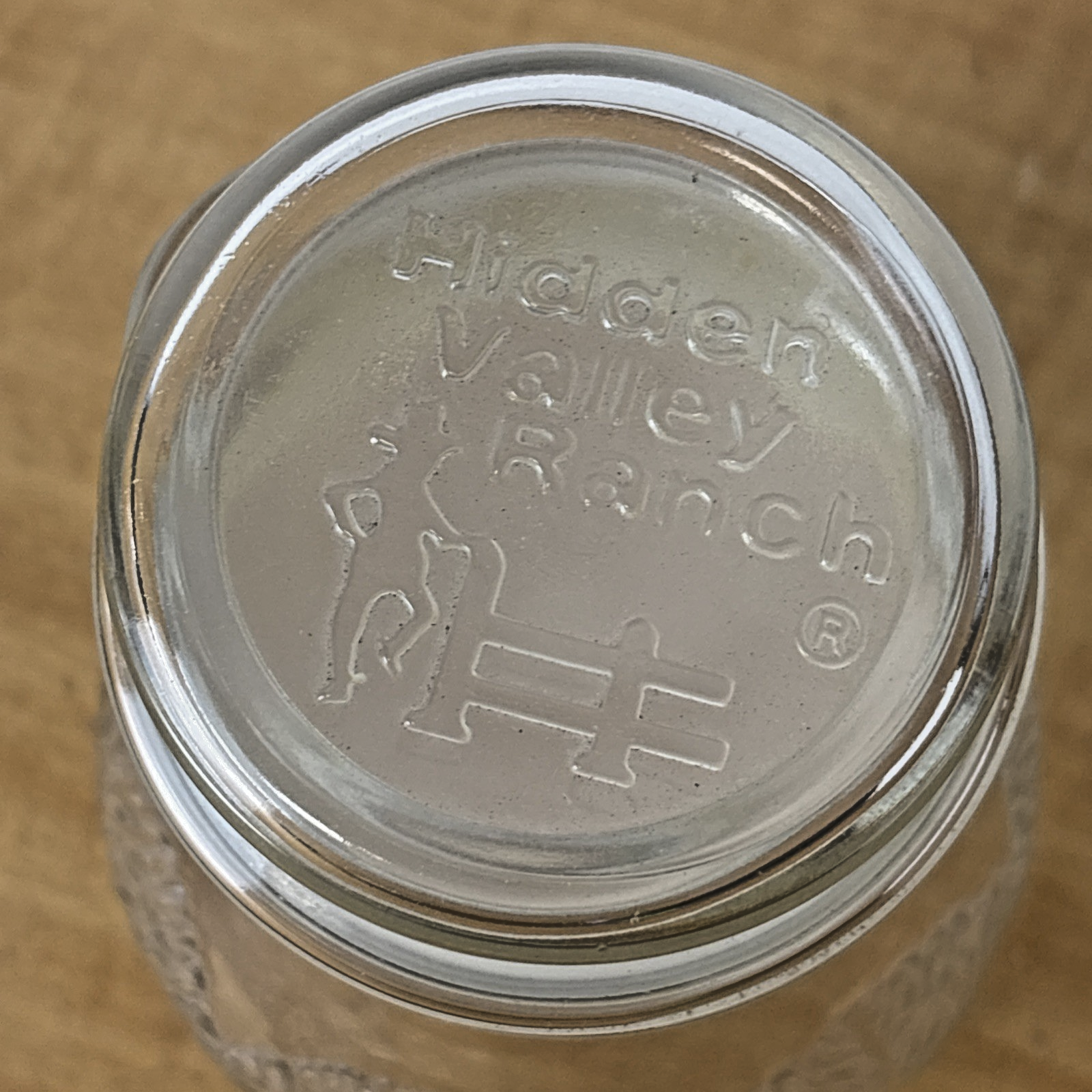 Vintage Hidden Valley Ranch Salad Dressing Glass Shaker w Lid Jar Carafe Bottle