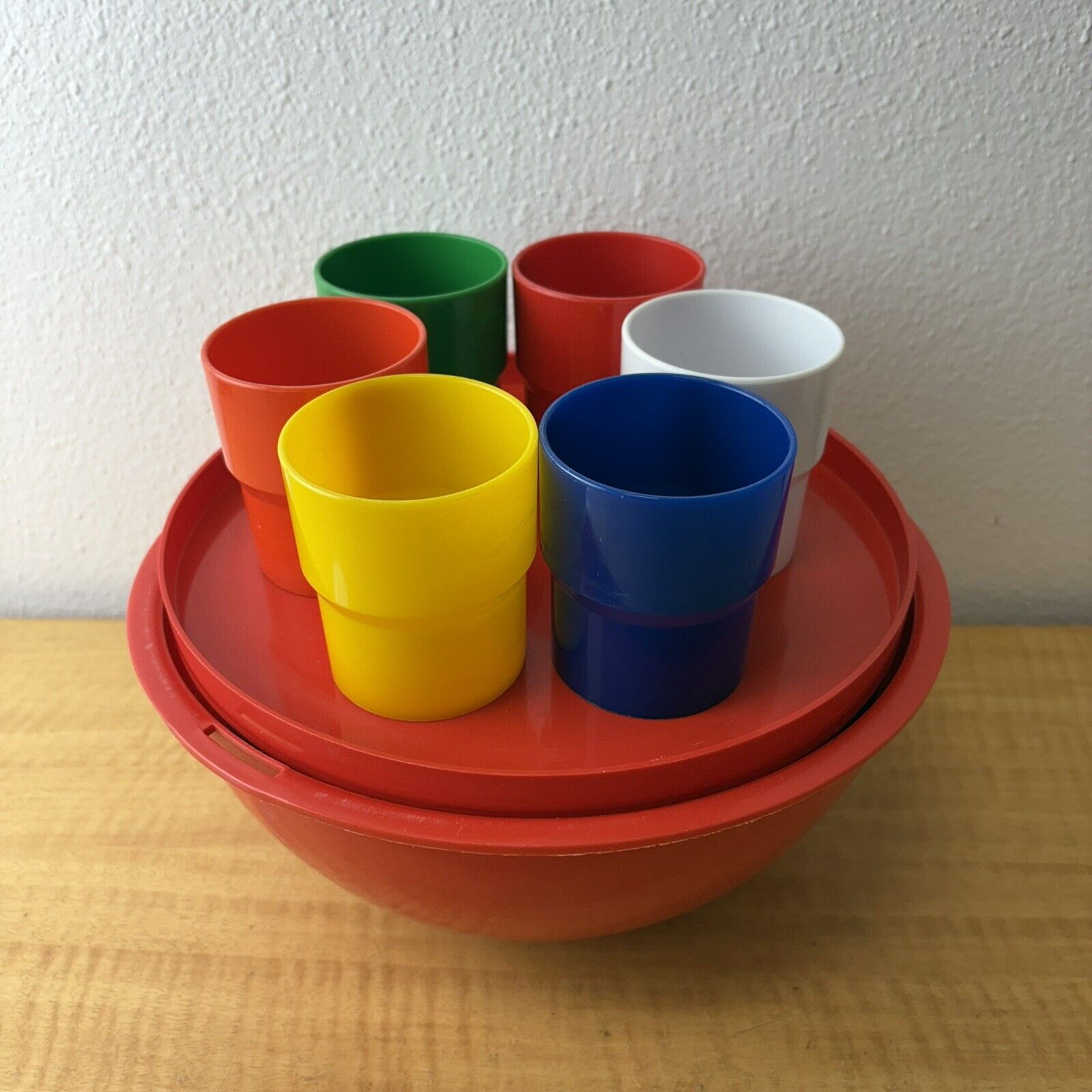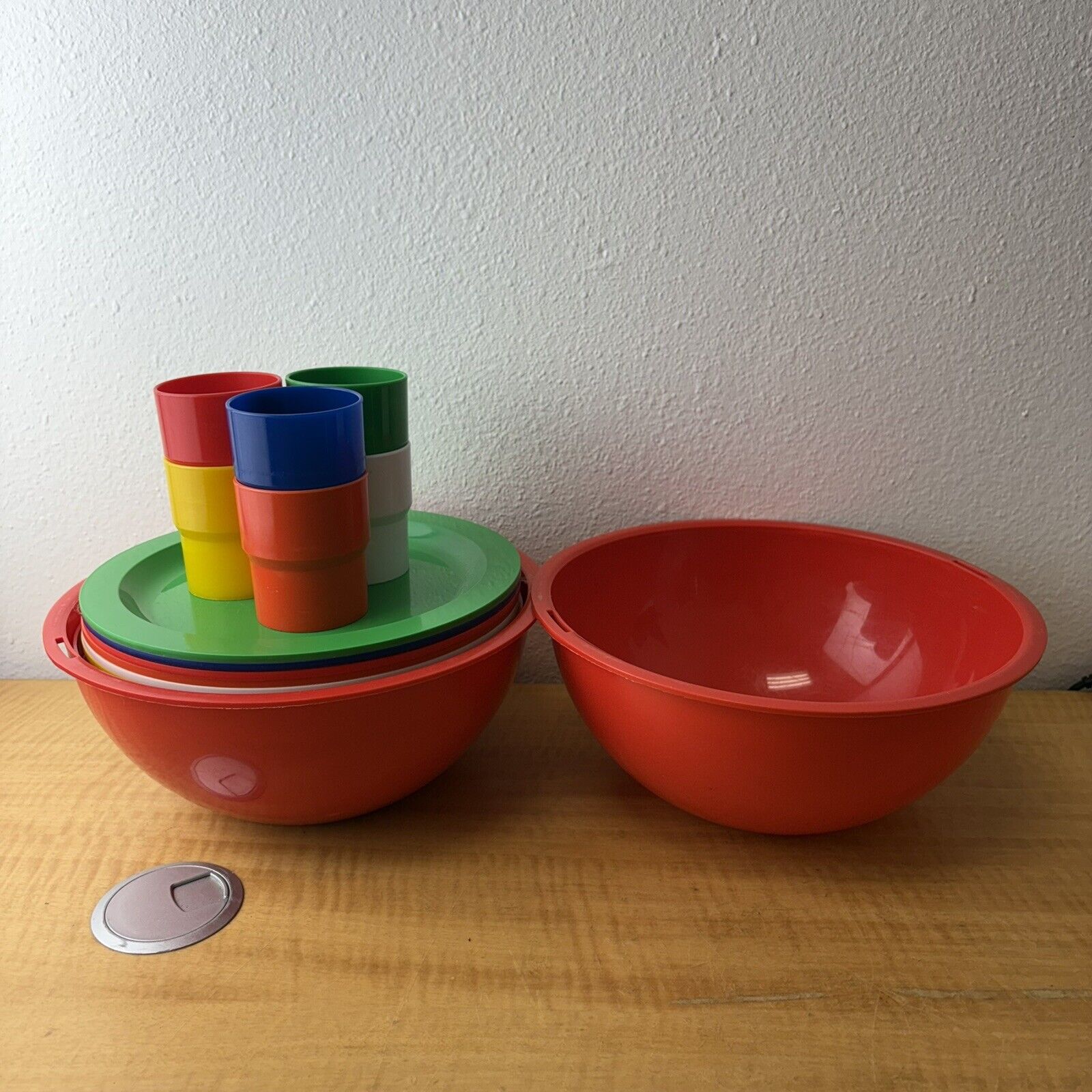 Vintage Ingrid Red Party Ball Plastic Picnic Chicago USA Complete 6 Serving Set