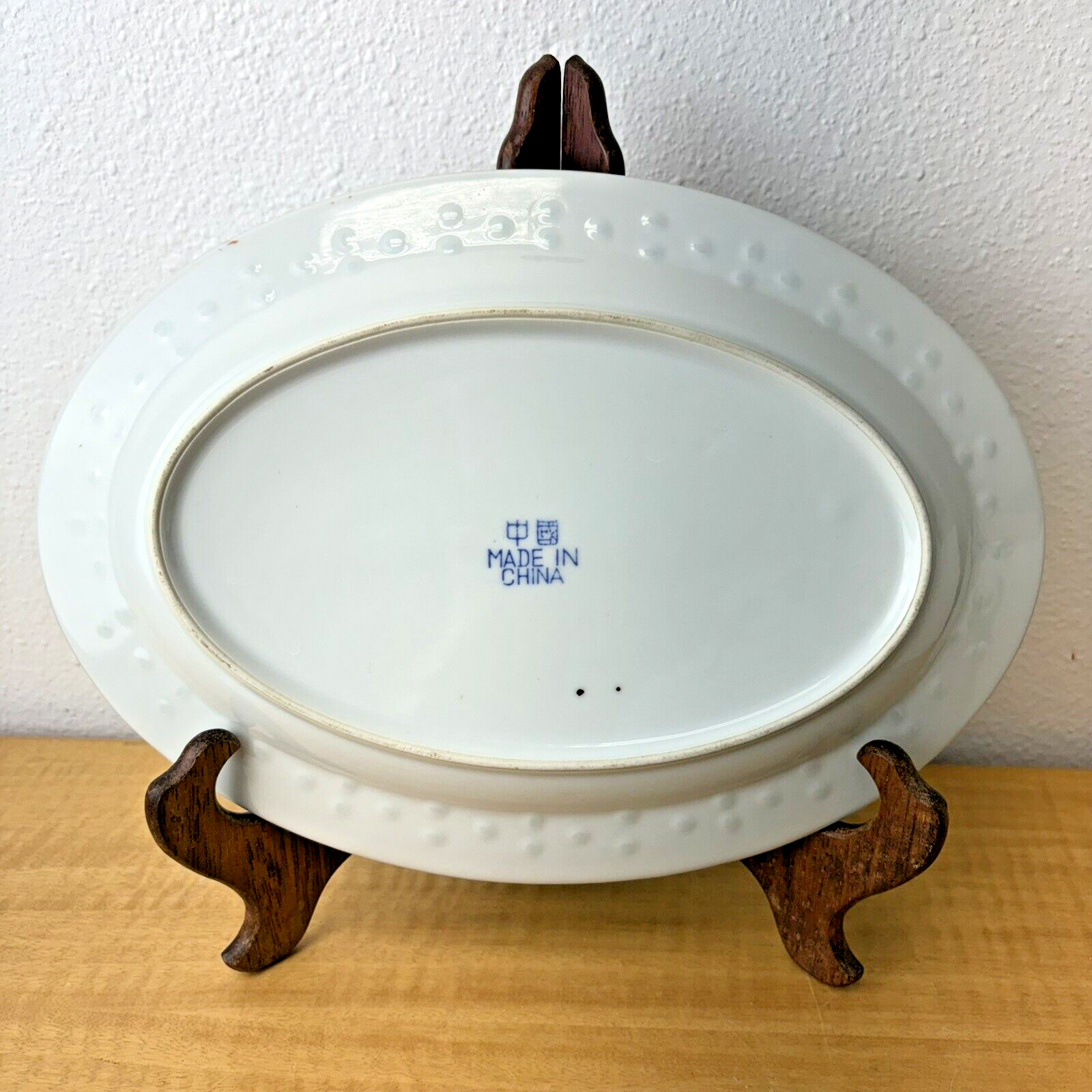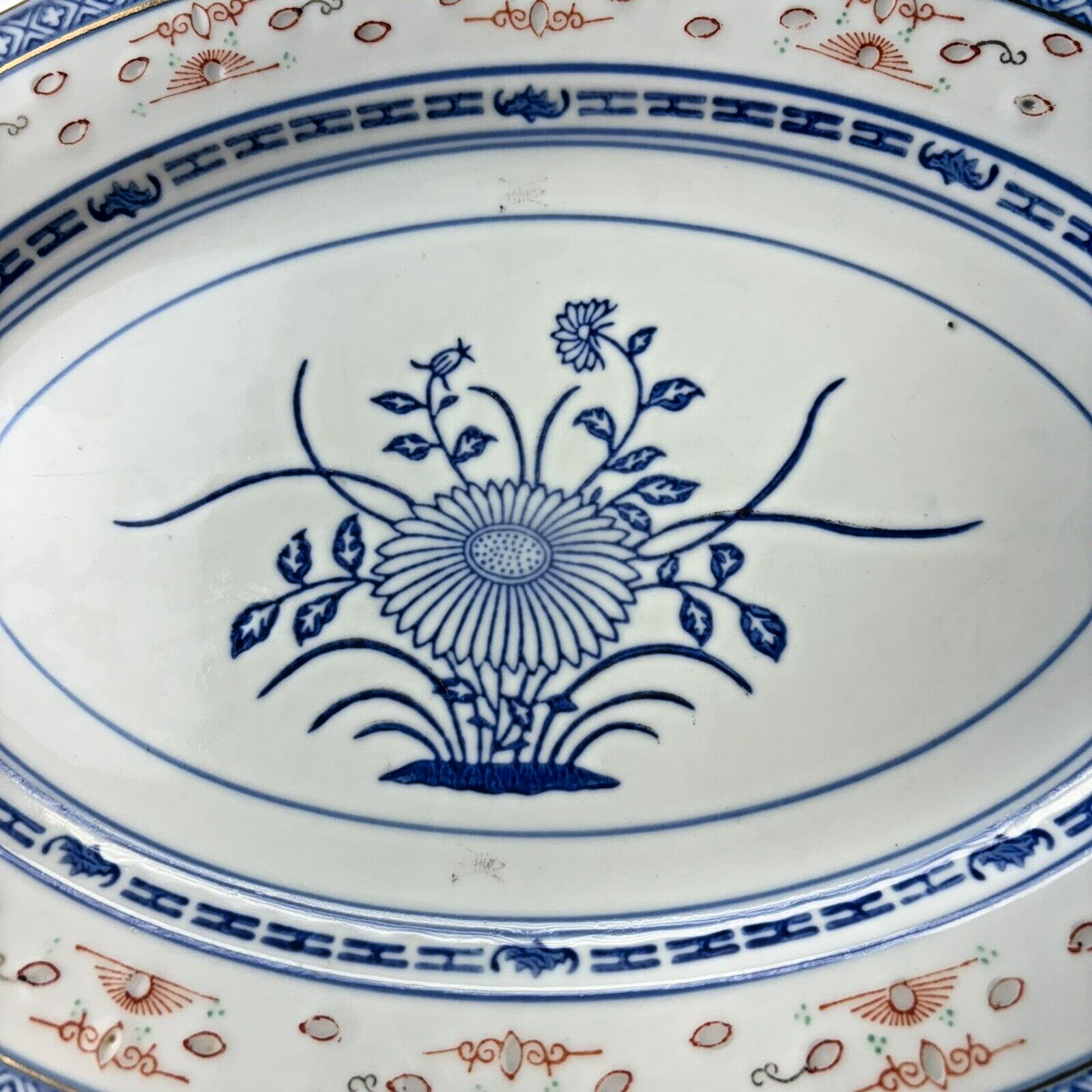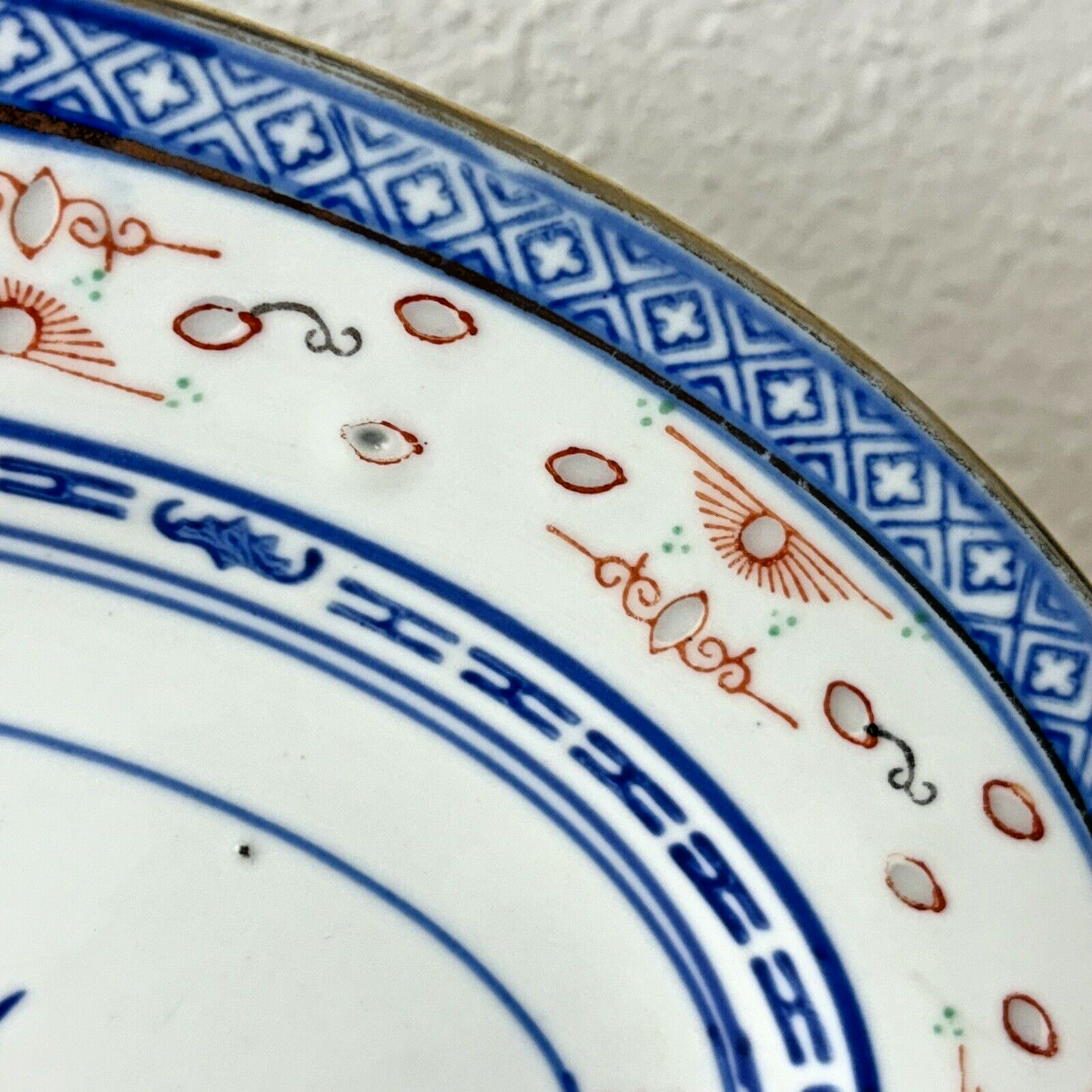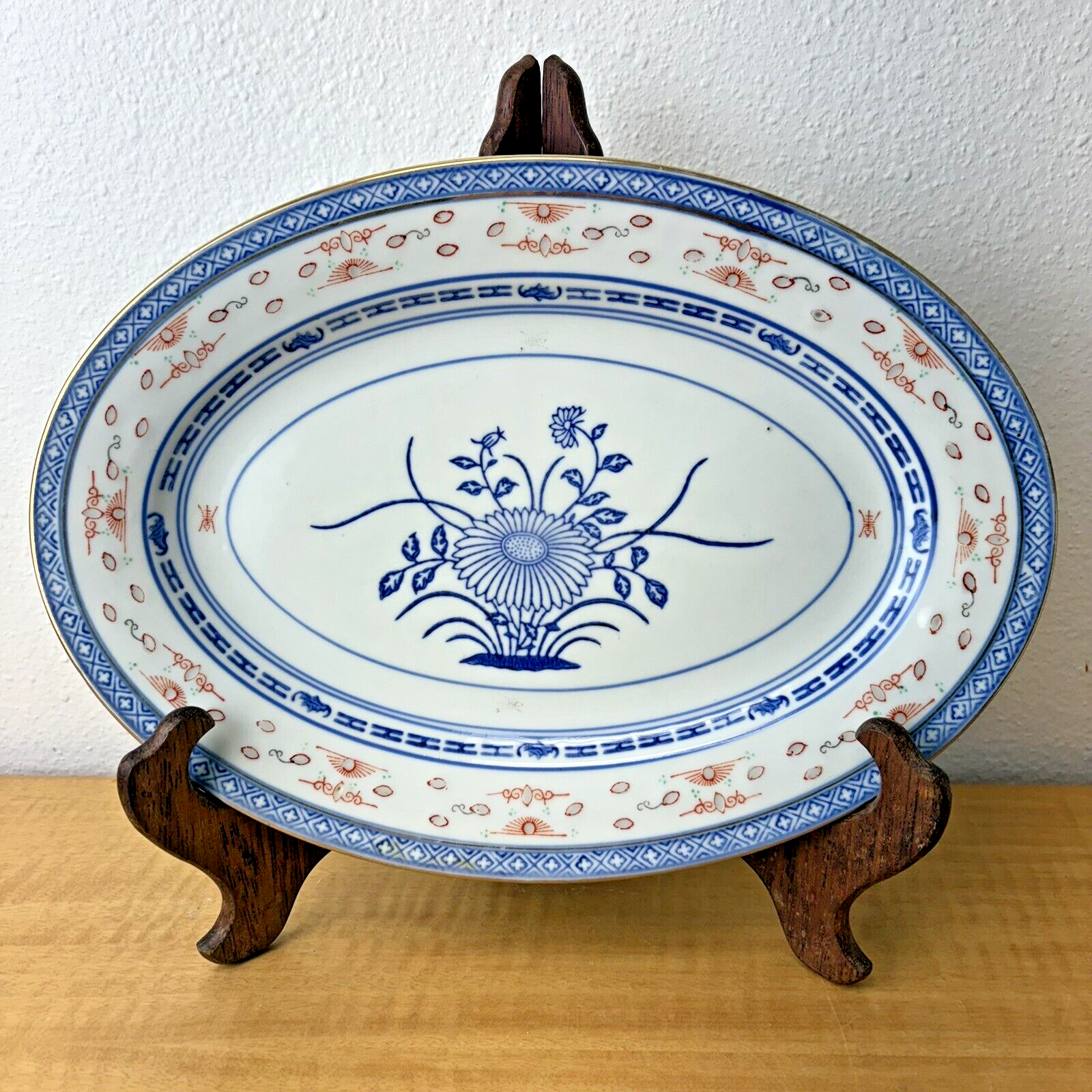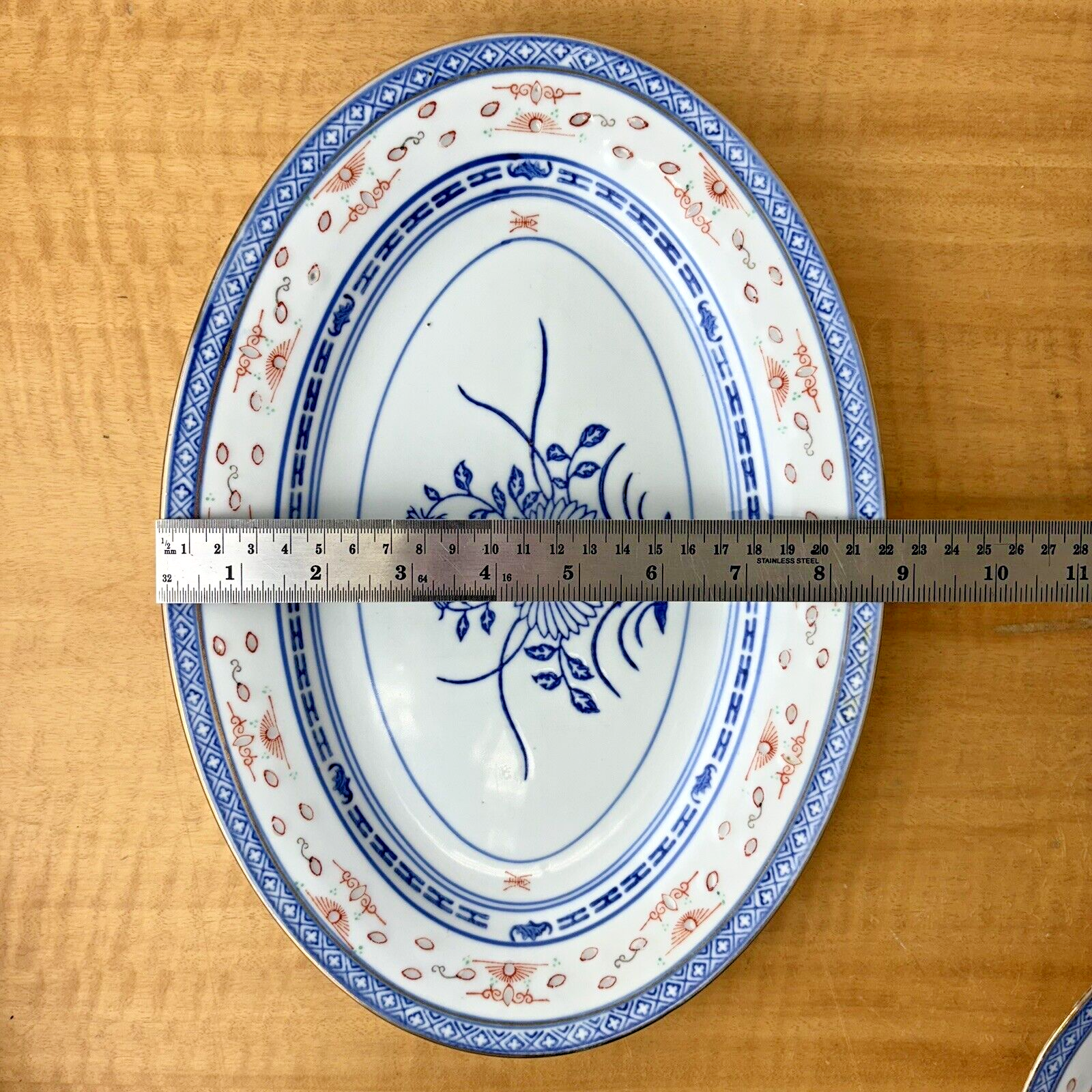 Vintage Jingdezhen Chinese Porcelain Oriental Blue Rice Grain Pattern Platter