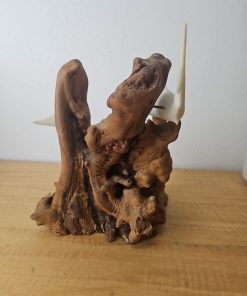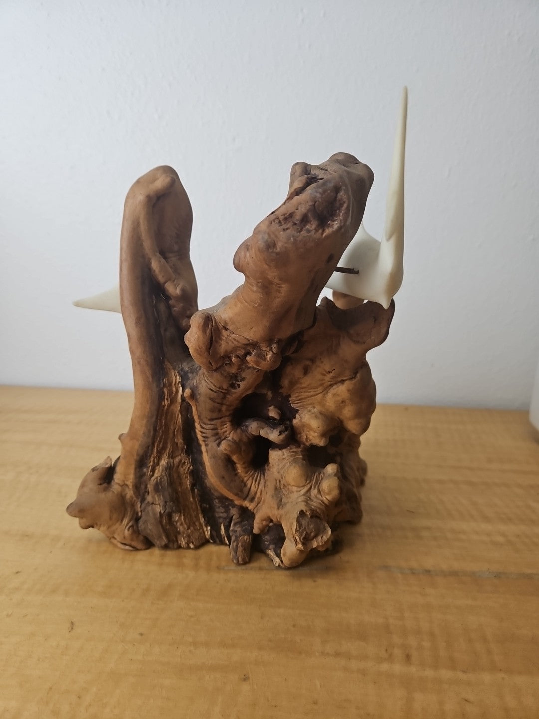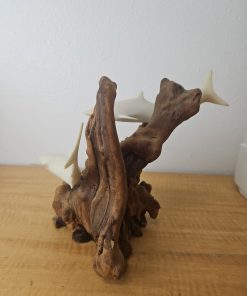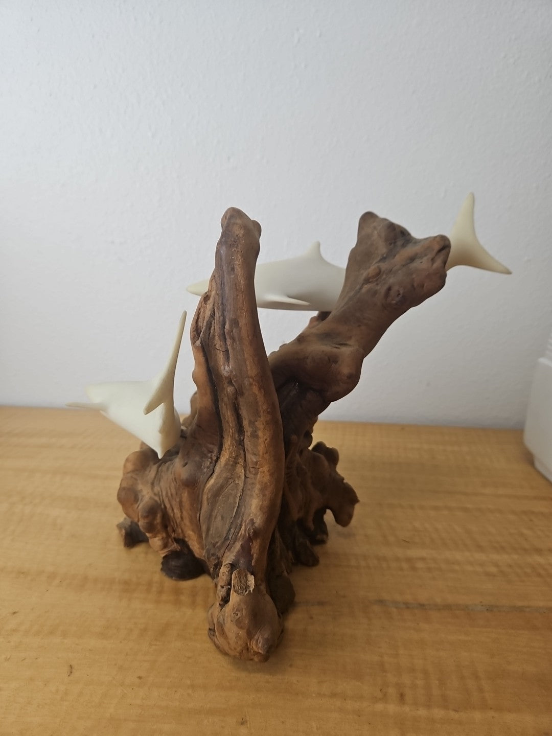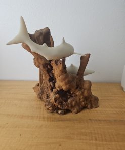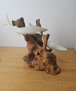 Vintage John Perry Two Shark Sculpture on Burled Wood Base 10x10x10 ’78